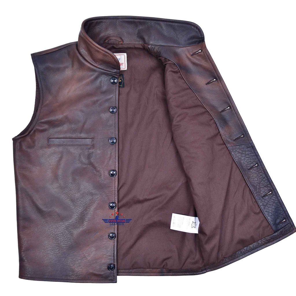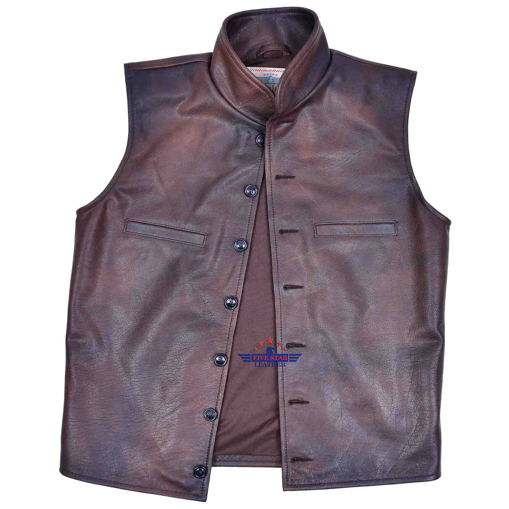FiveStar Leather Vintage Cossack Style Vest Buffalo Distressed Leather