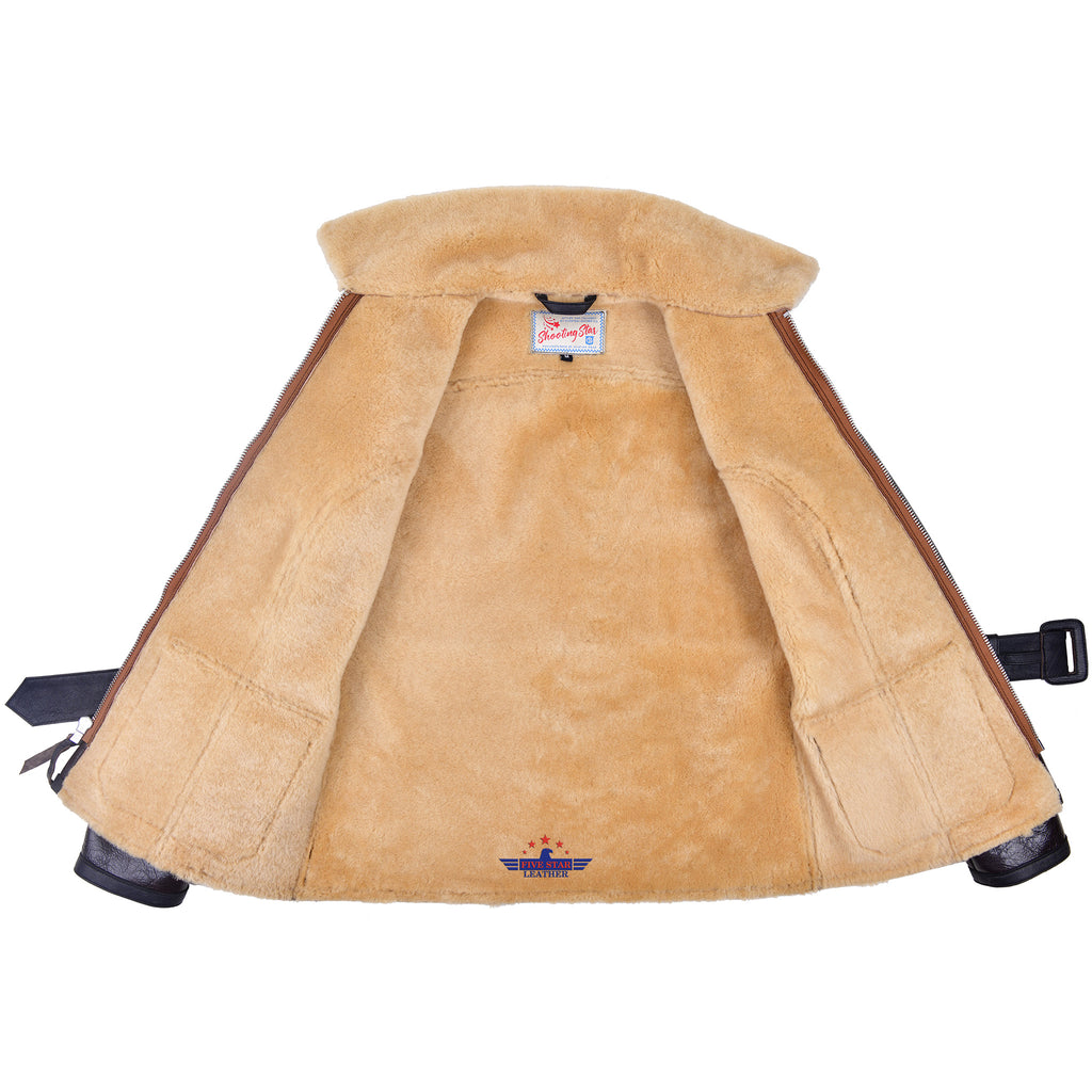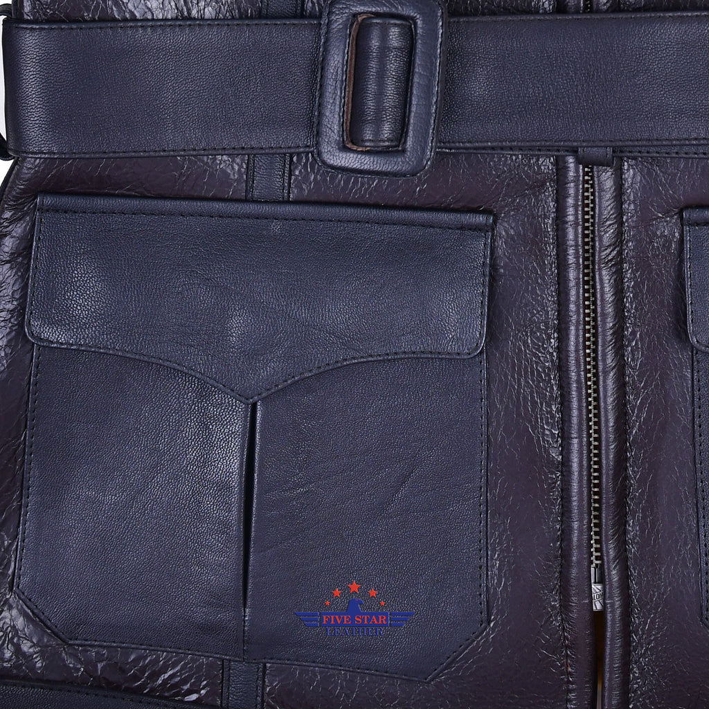 Crafted from authentic, high-quality sheepskin leather, the FiveStar Leather Bessie Coleman Aviator Flight Jacket features a rich seal brown color and a durable 10mm thick sheepskin lining. It includes a sturdy front Talon zipper, two flap pockets at the front, and a waist belt to ensure a comfortable fit. Expert stitching guarantees lasting quality, and custom sizing is available to meet your specific needs.