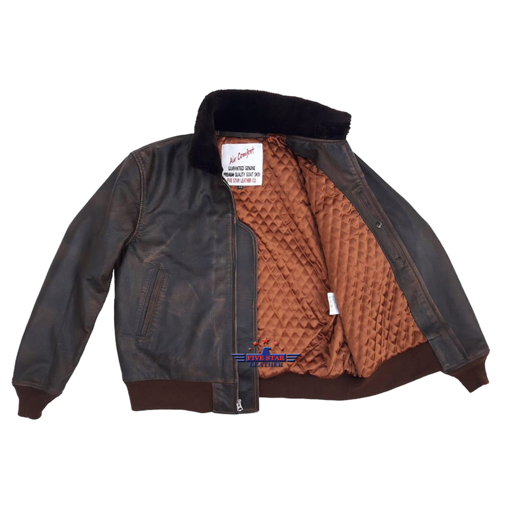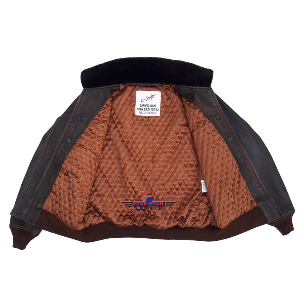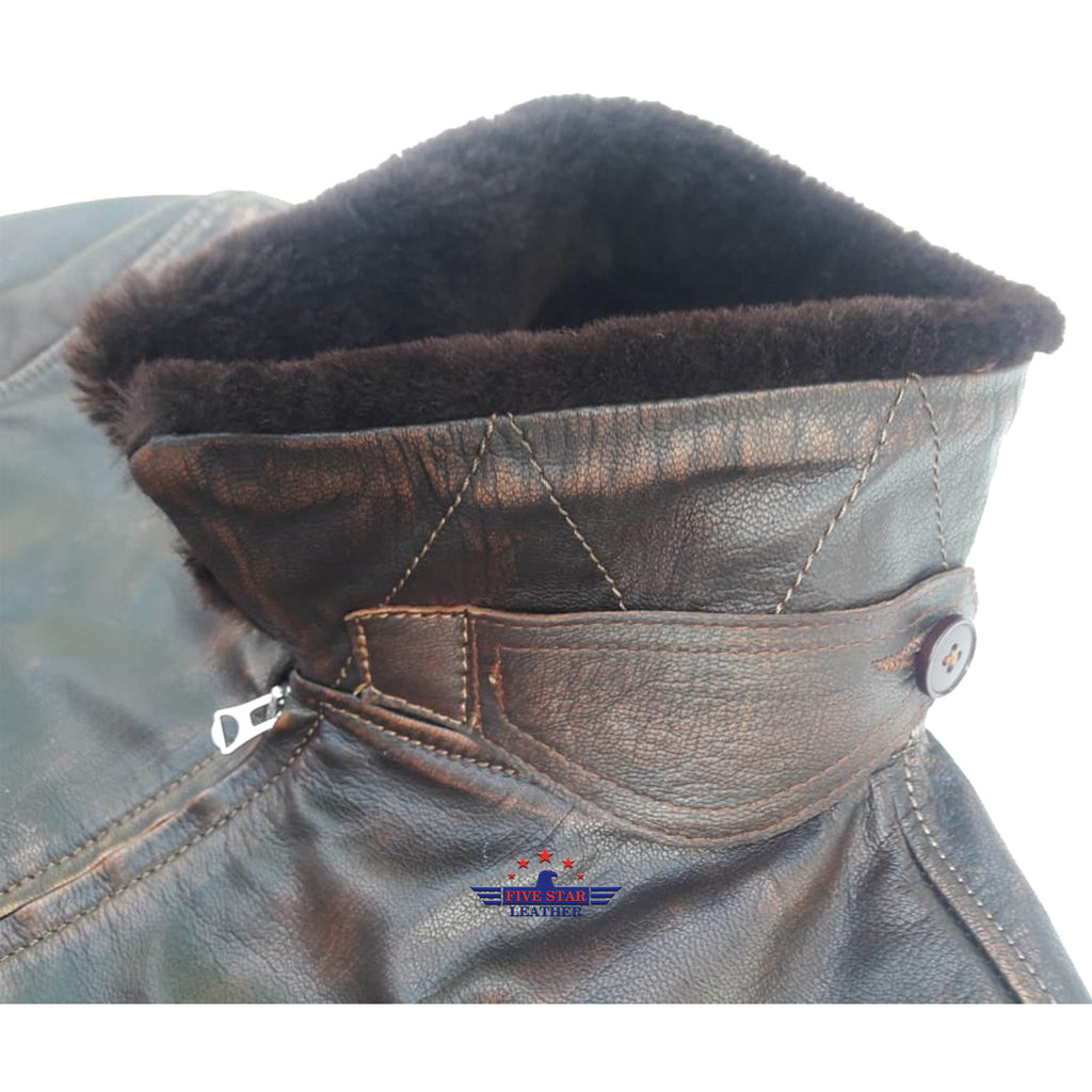 Men Real Goatskin Distressed Leather Jacket with Mouton Fur Collar Wind Breaker