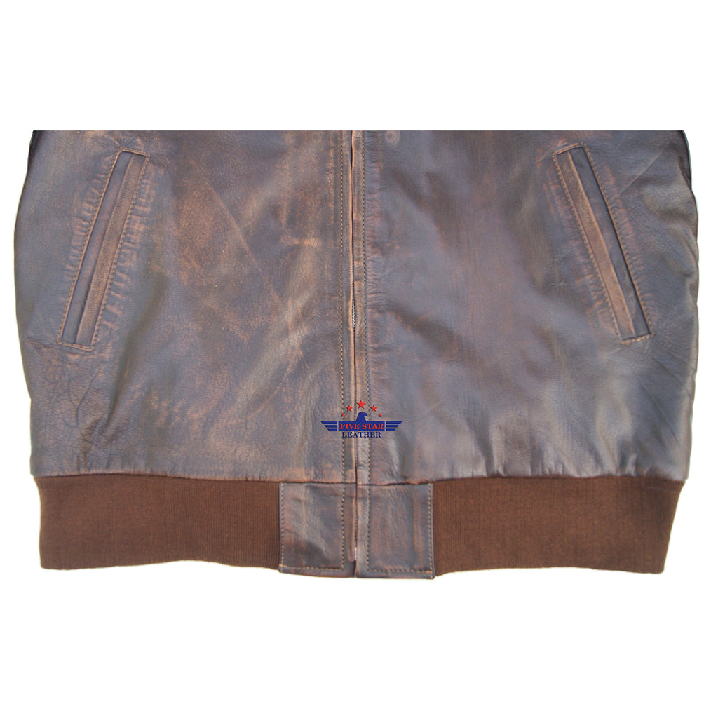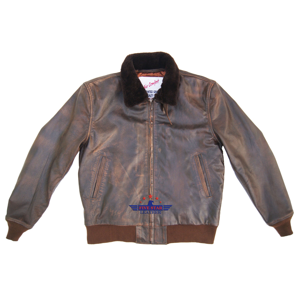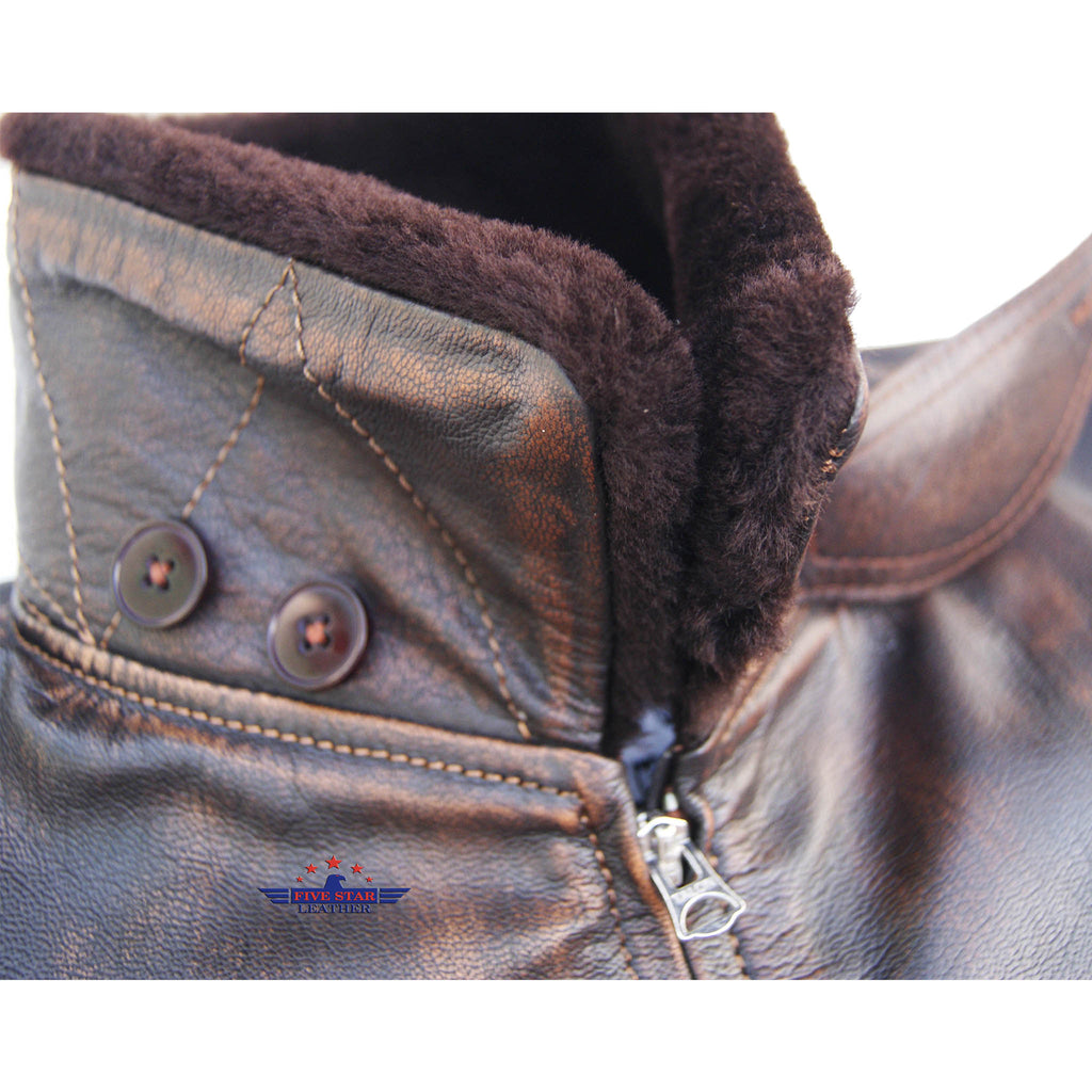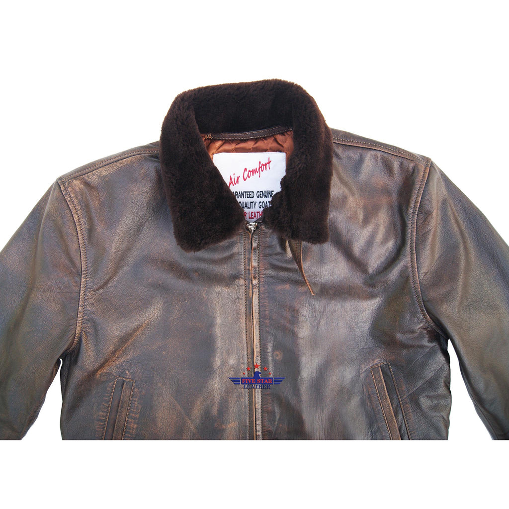 Men Real Goatskin Distressed Leather Jacket with Mouton Fur Collar Wind Breaker