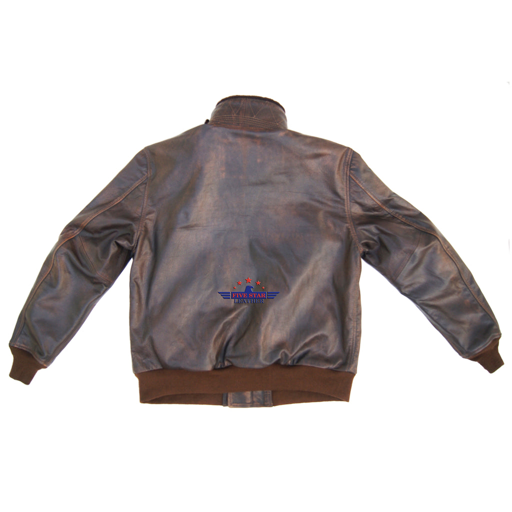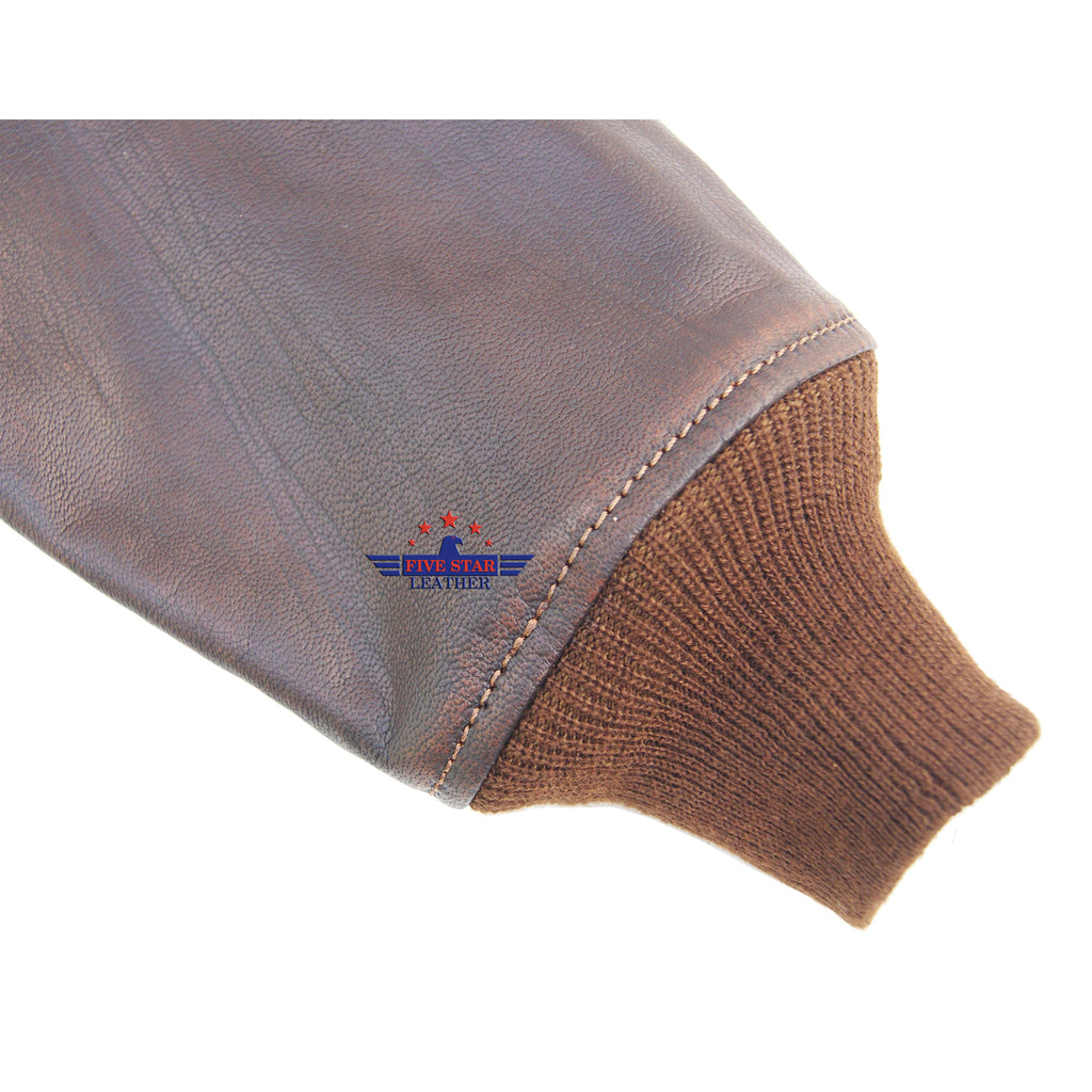 This premium "A" Grade genuine goatskin leather jacket offers durability and style with its distressed finish. It features a sturdy front talon zipper, two external pockets, and two internal buttoned pockets for secure storage. The jacket is accented with soft russet brown ribbed cuffs and hem for a comfortable fit. Inside, you’ll find a warm quilted lining made from 100% polyester, combined with fine, detailed stitching for lasting quality. Available in all sizes, with various styles and colors to choose from.