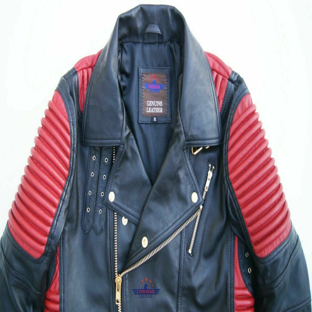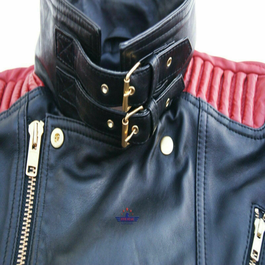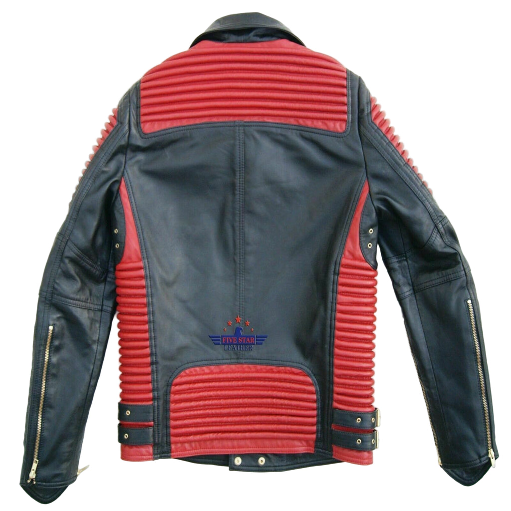 God Gift Men's Black and Red Real Leather Jacket SPEED Golden Zipper