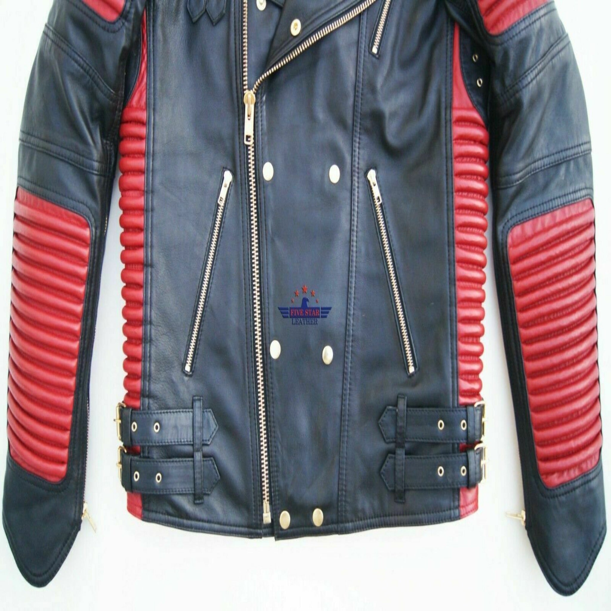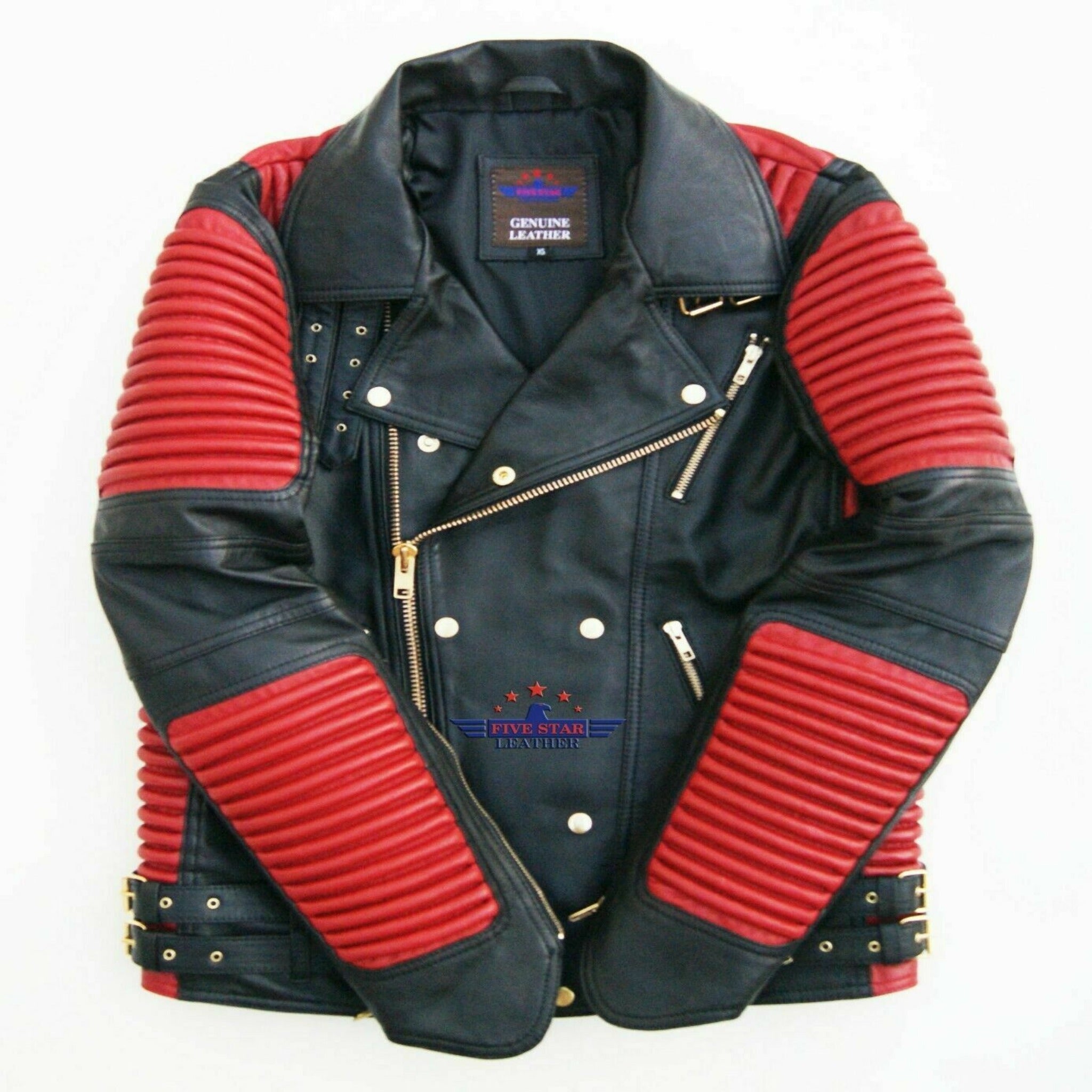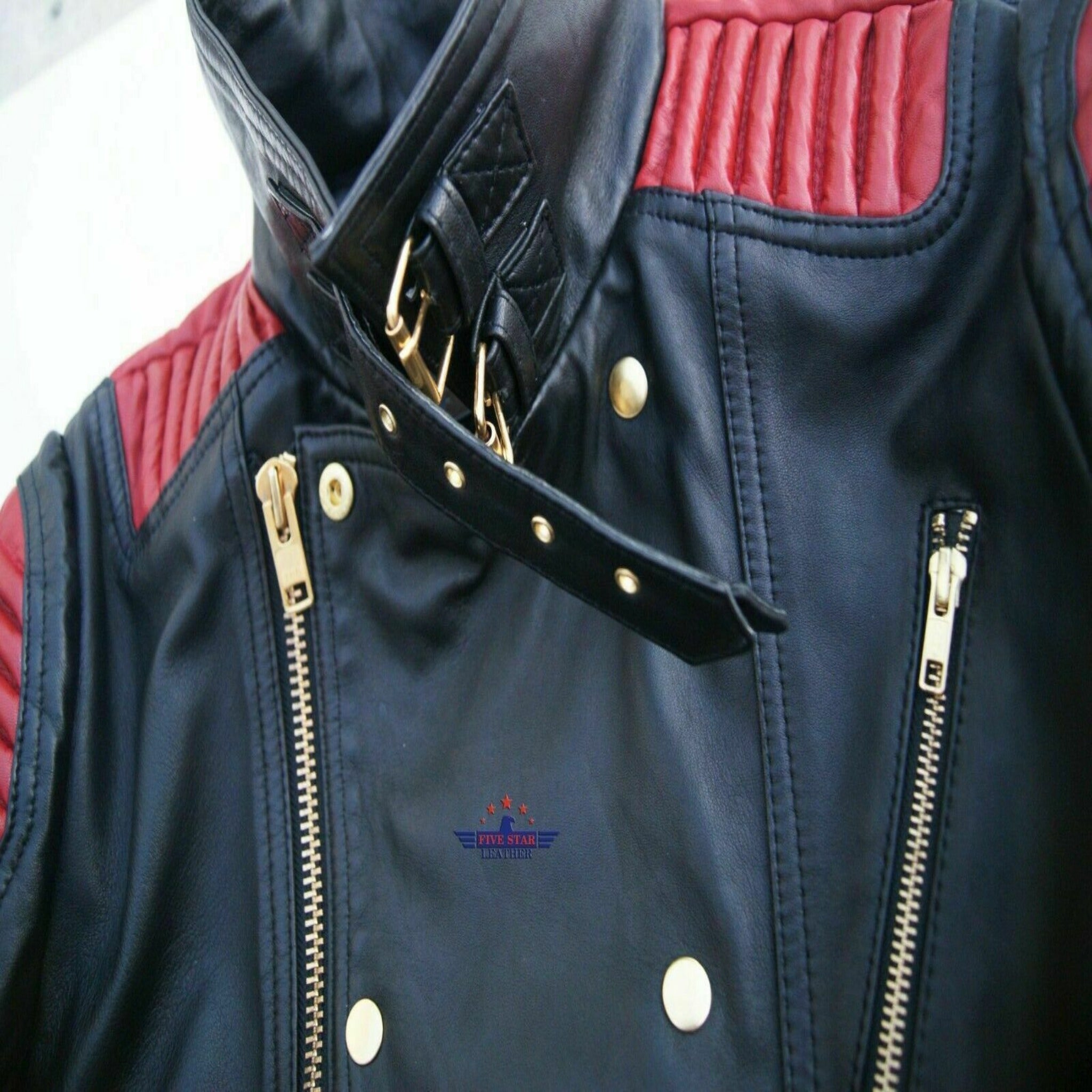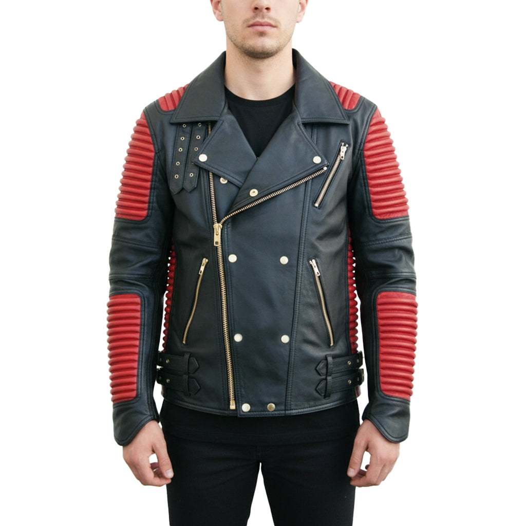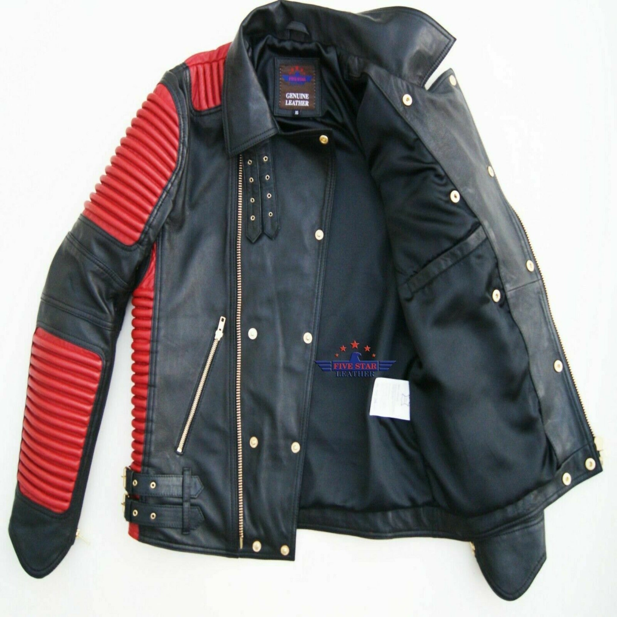 God Gift Men's Black and Red Real Leather Jacket SPEED Golden Zipper