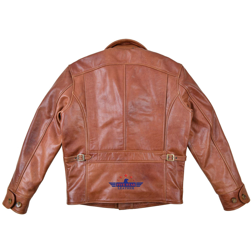 FiveStar Leather Men Custom Half Belt Leather Jacket