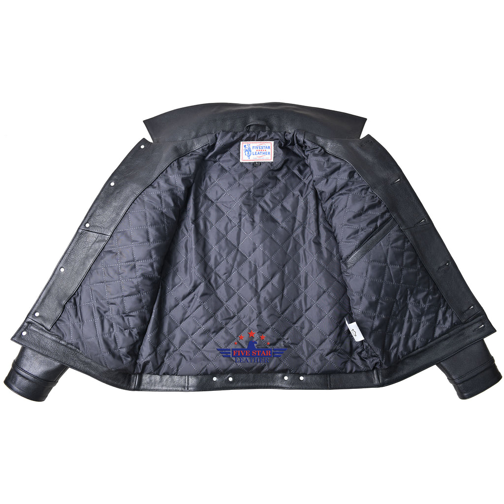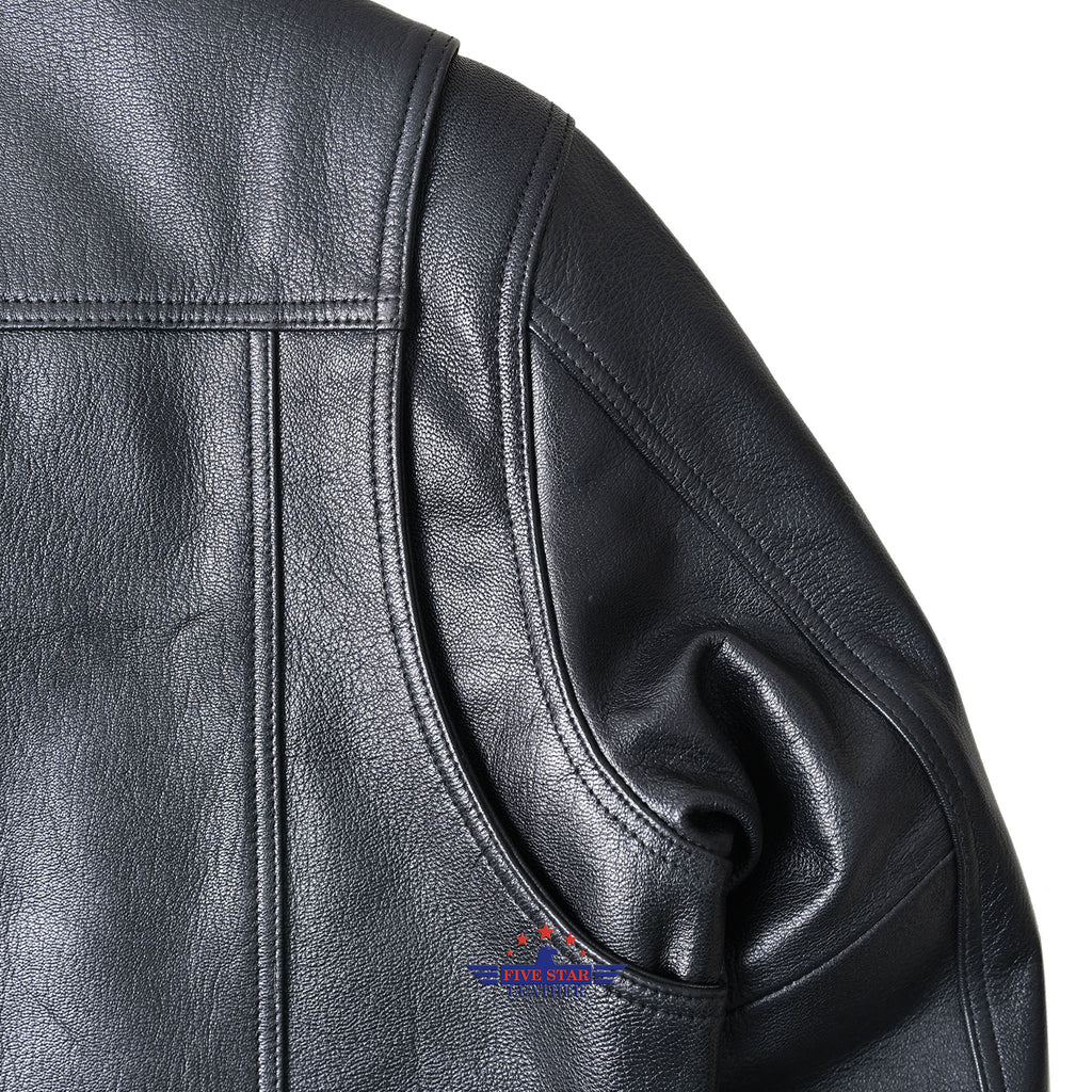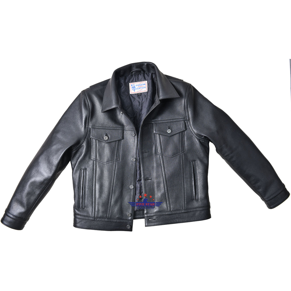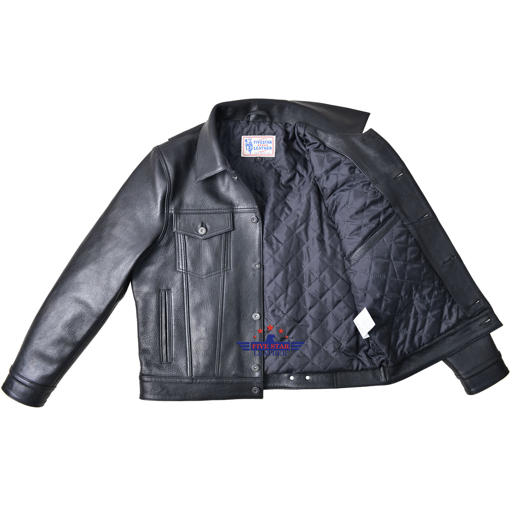Men Trucker Black Goatskin Classic Western Denim Style with Action Back