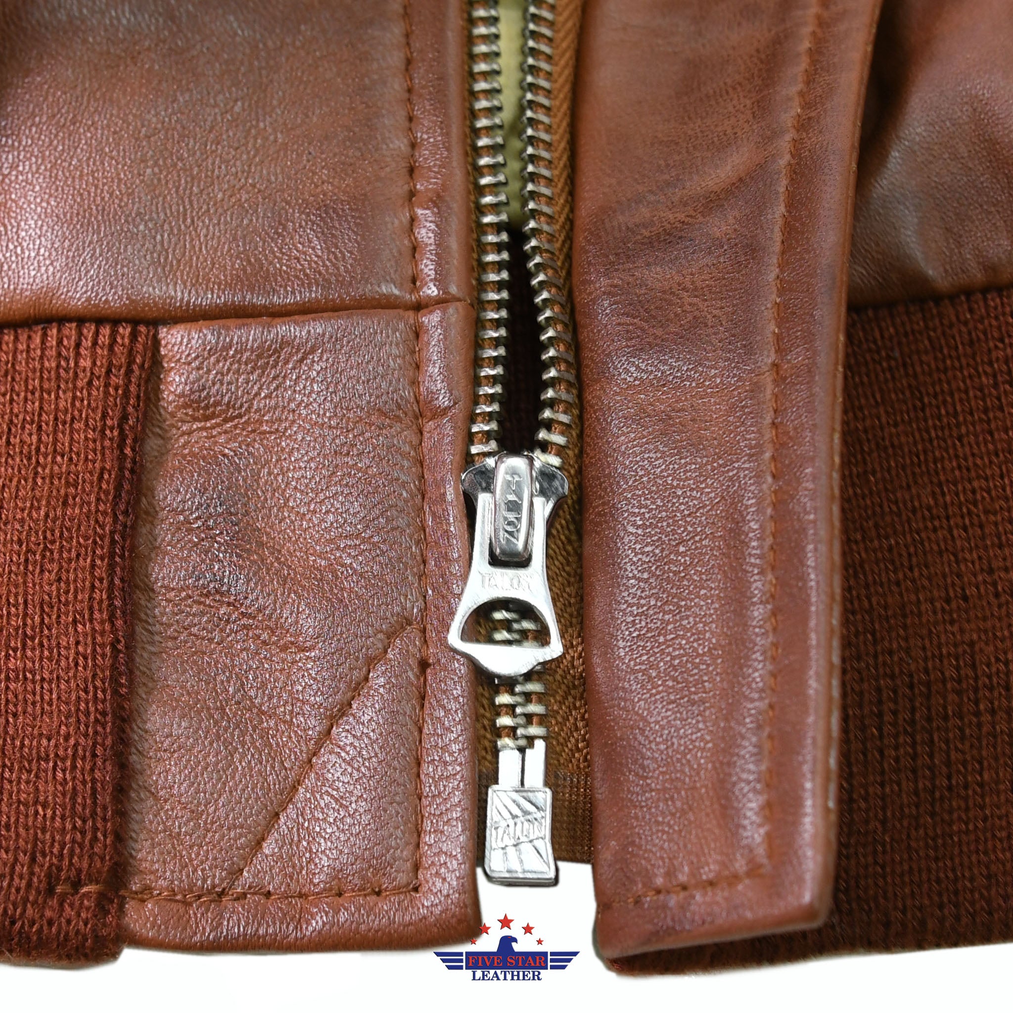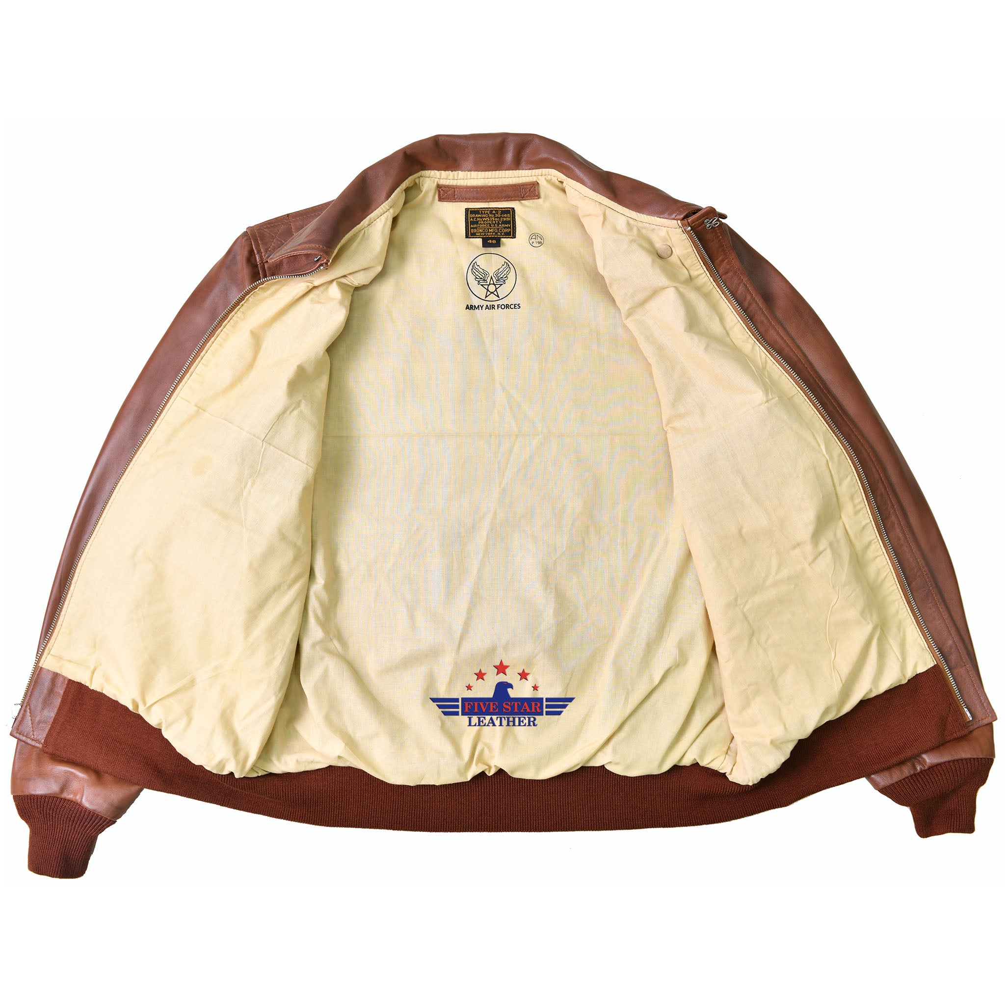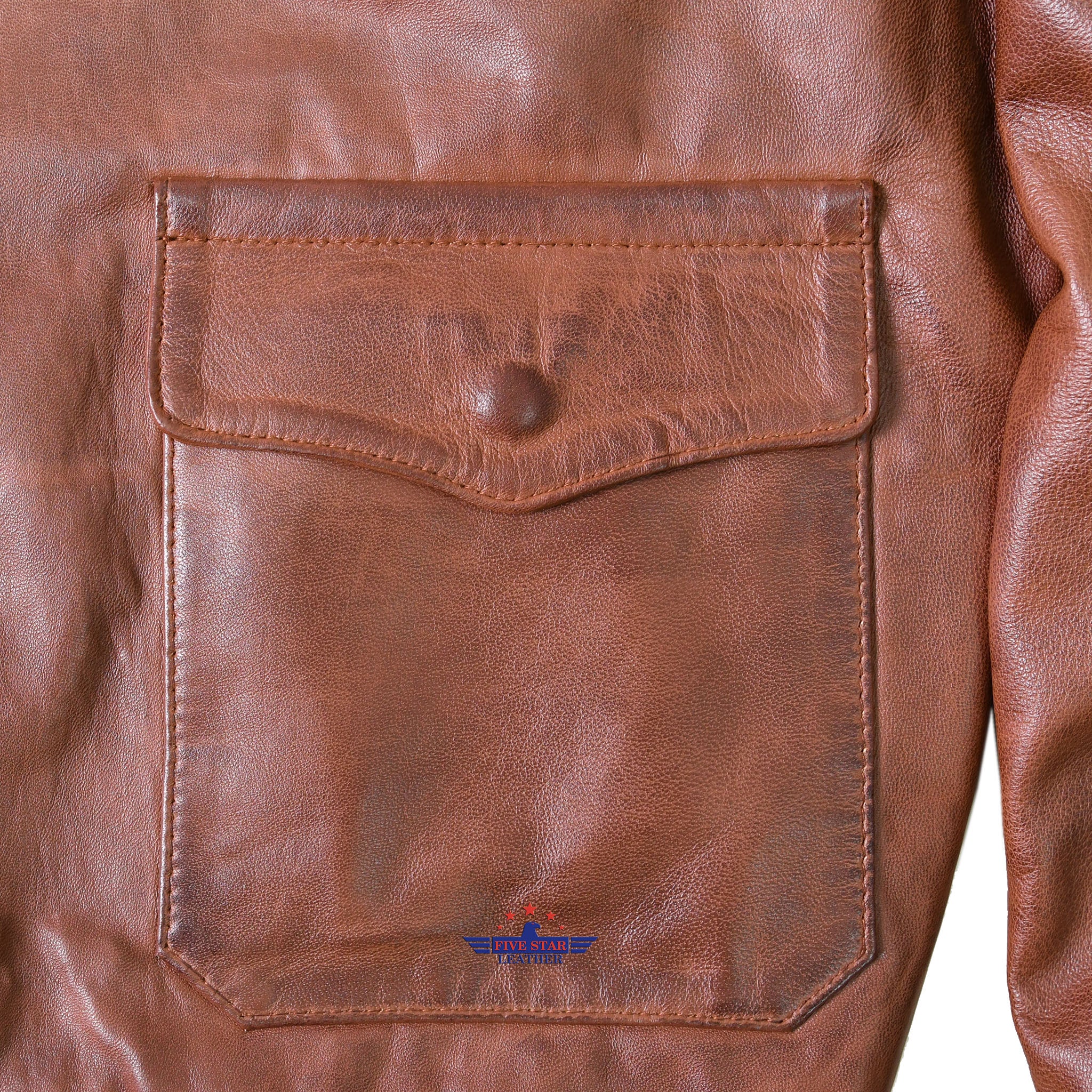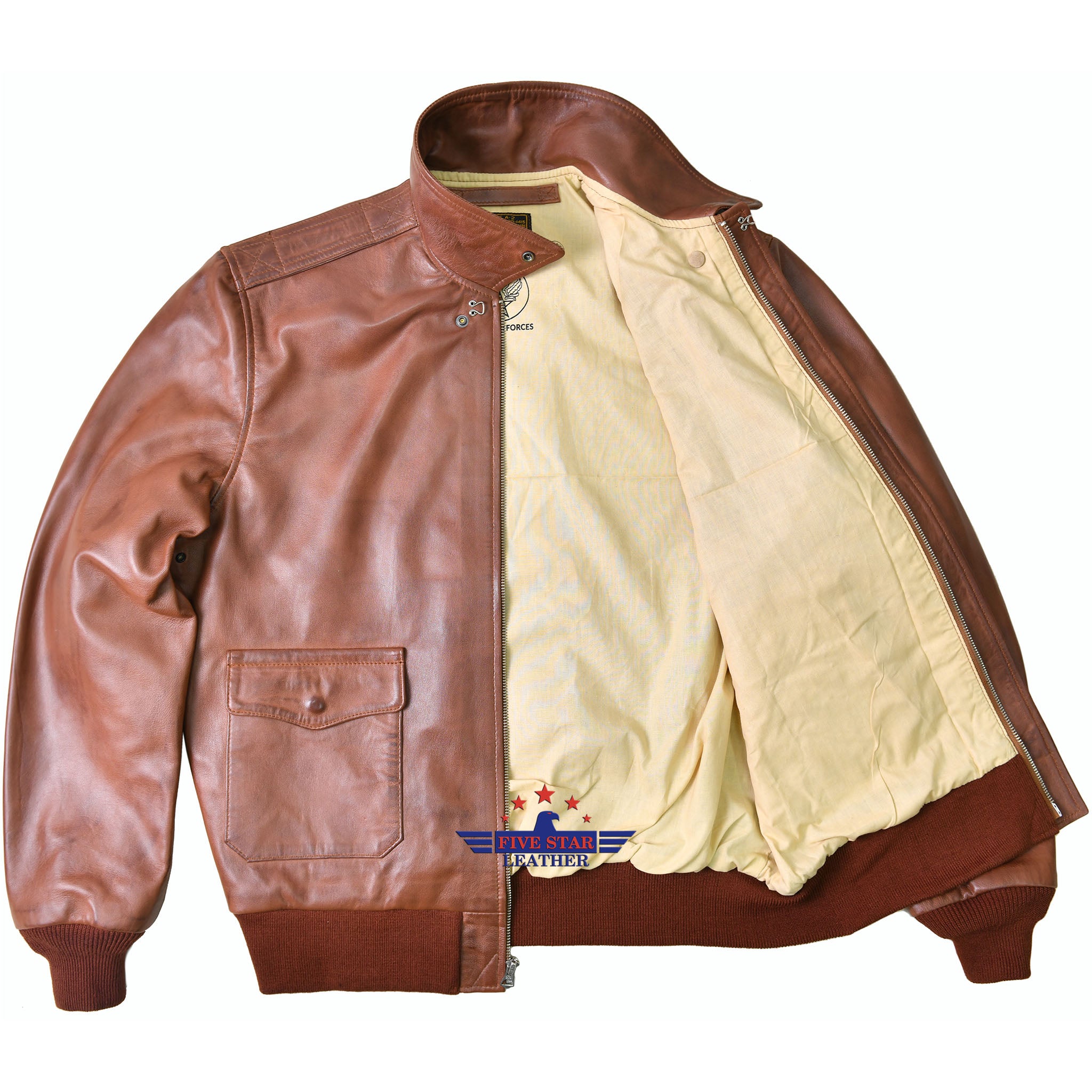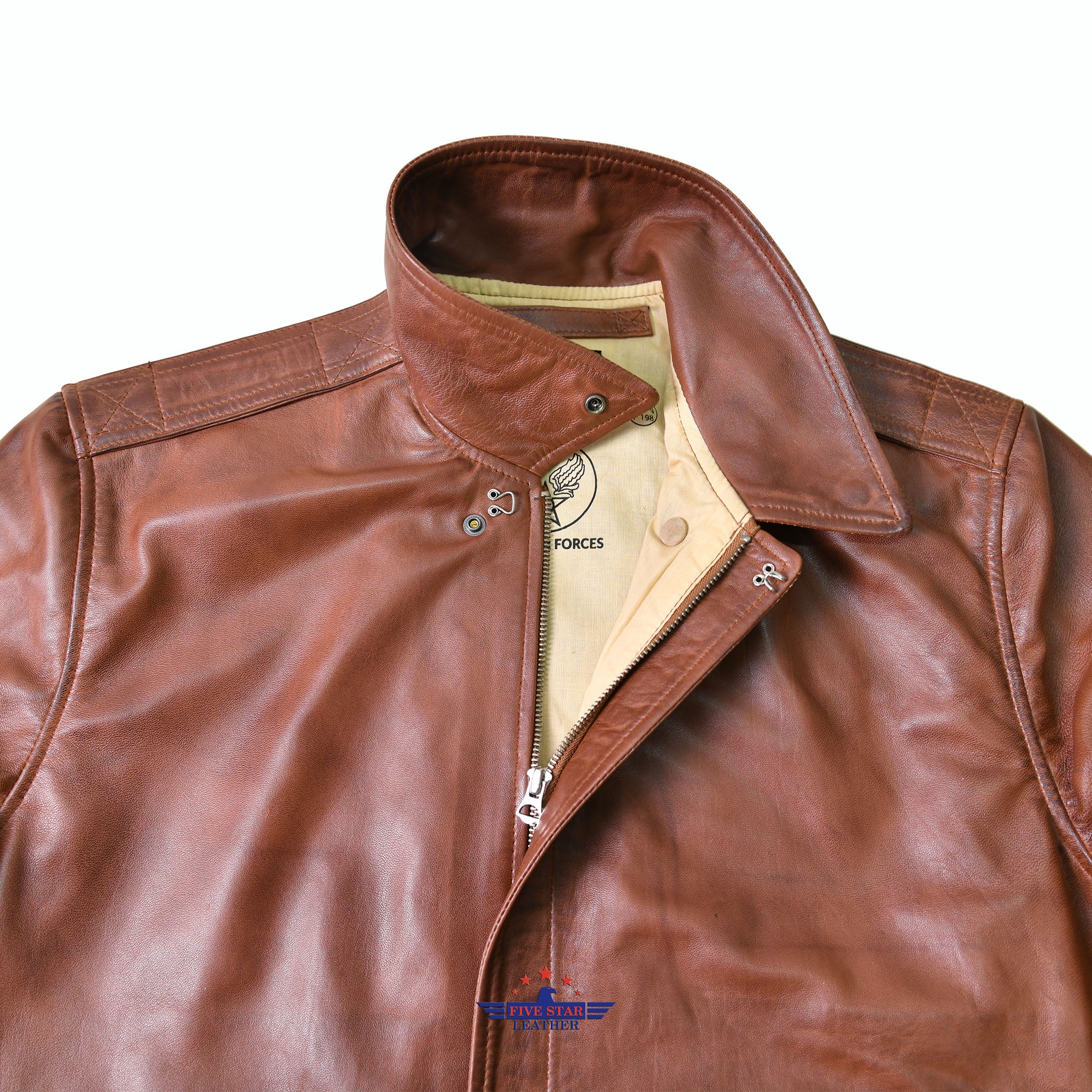 Men Type A2 Repro Military Bronco WWII Air force Reddish Russet Brown Capeskin Leather Jacket