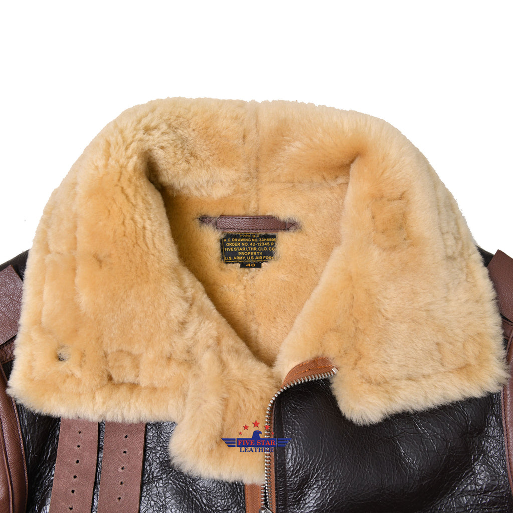 Men's Classic B-3 WWII Real Sheep shearling Bomber Pilot US Air Corps Jacket