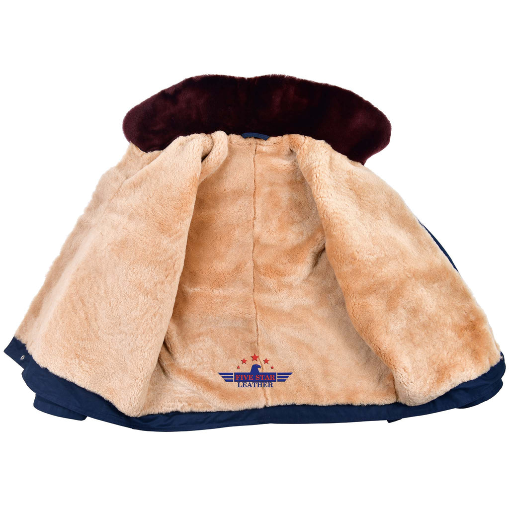 USSR Pilot Winter Jacket for Long Distance Aviation Warm Army Military Blue Sheepskin Fur
