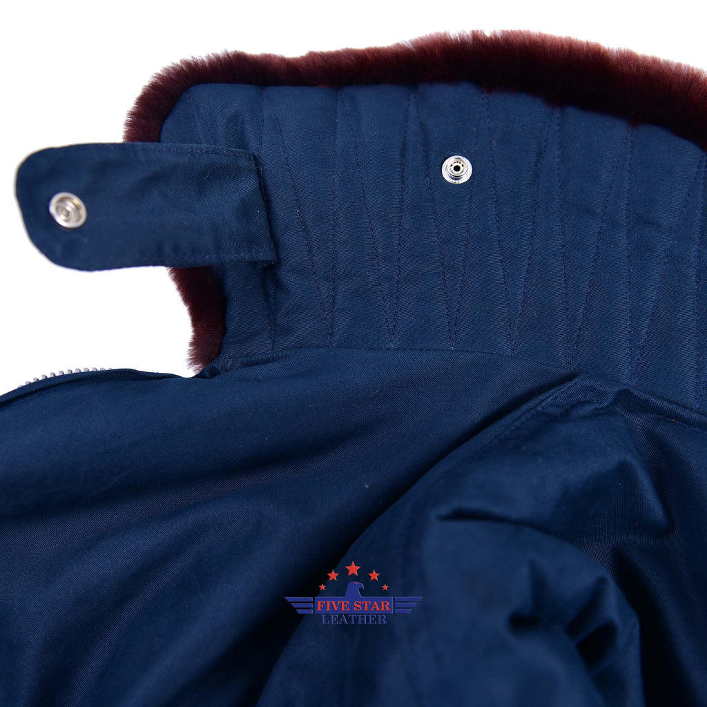 FiveStar Leather Reproduced USSR Pilot Winter Jacket for Long Distance, The Collection of our materials are the closest match with the original jacket, Made from High Quality Cotton Twill Body Shell, Lining 100% Real Sheepskin, 100% Mouton Fur Collar in Reddish Brown Color, High quality Heavy Duty Zippers, This Jacket features Hidden storm Cuffs, Bottom Belt Adjuster belts, Hidden Chest Gun Pocket, with Collar Hook Closure. We Copied this jacket from an original jackets and is true to all of the details and materials like the original jacket.