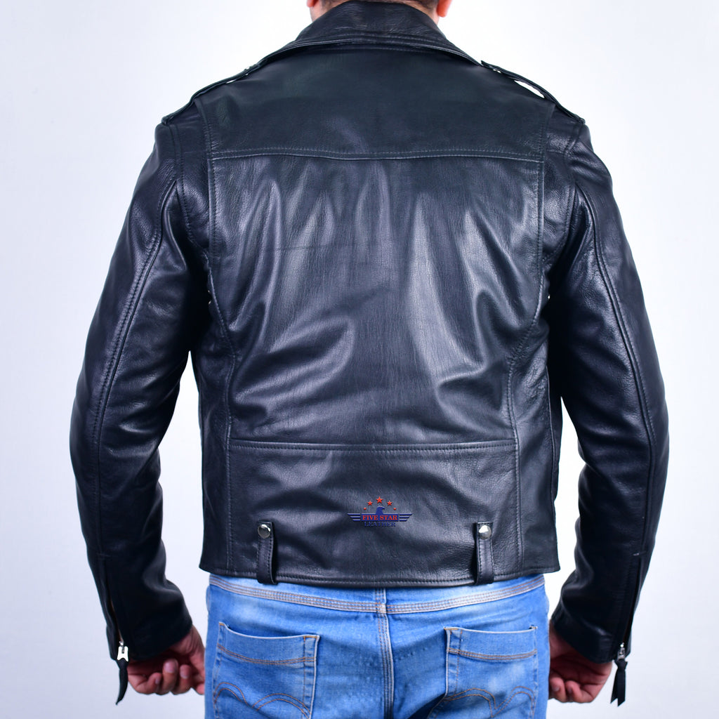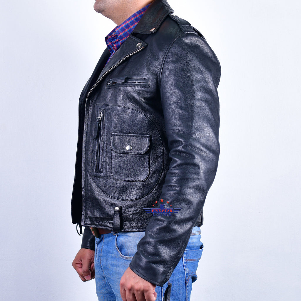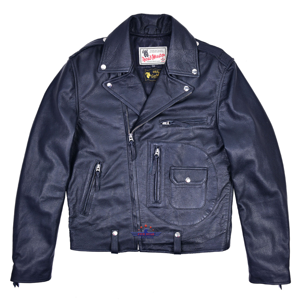 FiveStar Leather Vintage D Pocket Road Master Men Jacket Black Goatskin