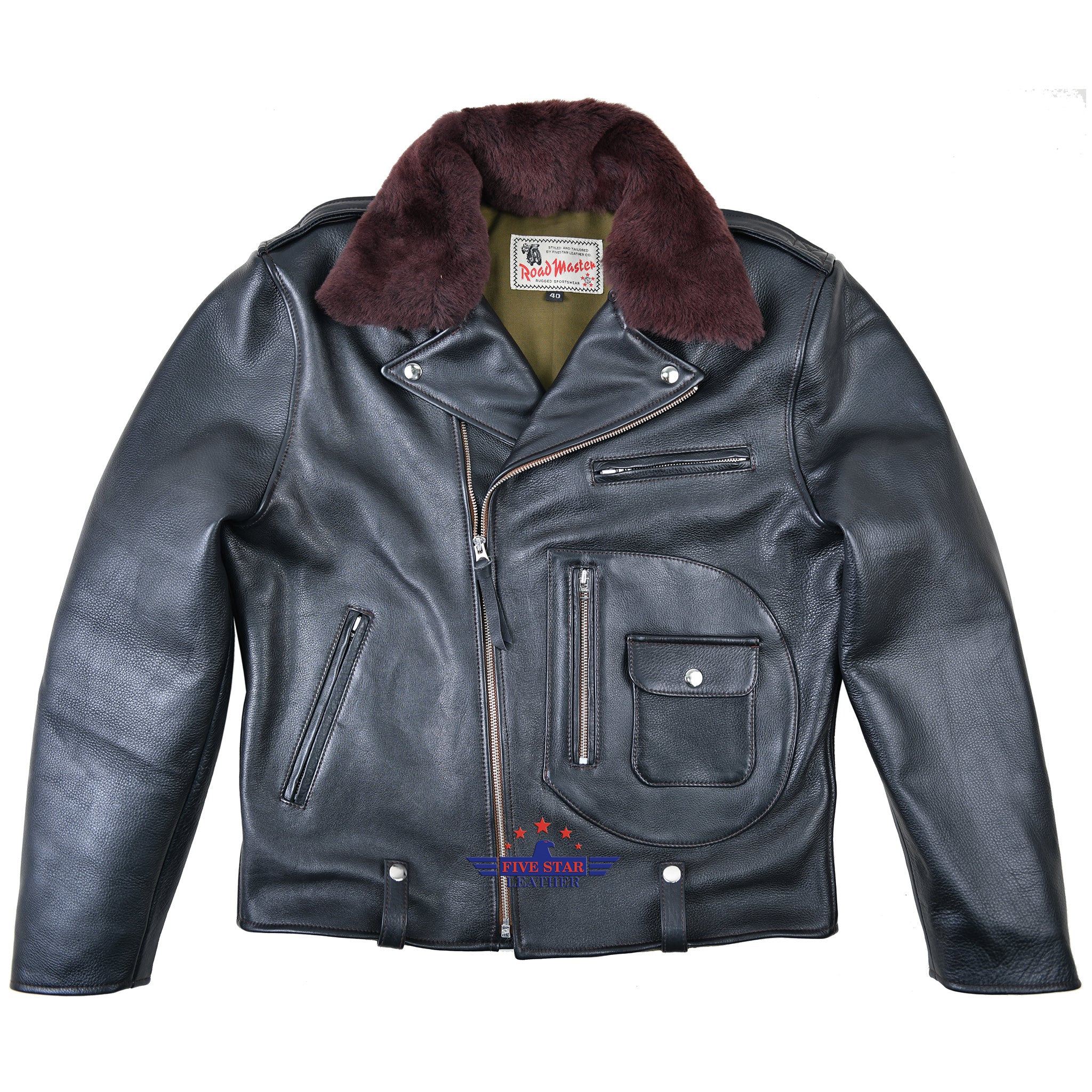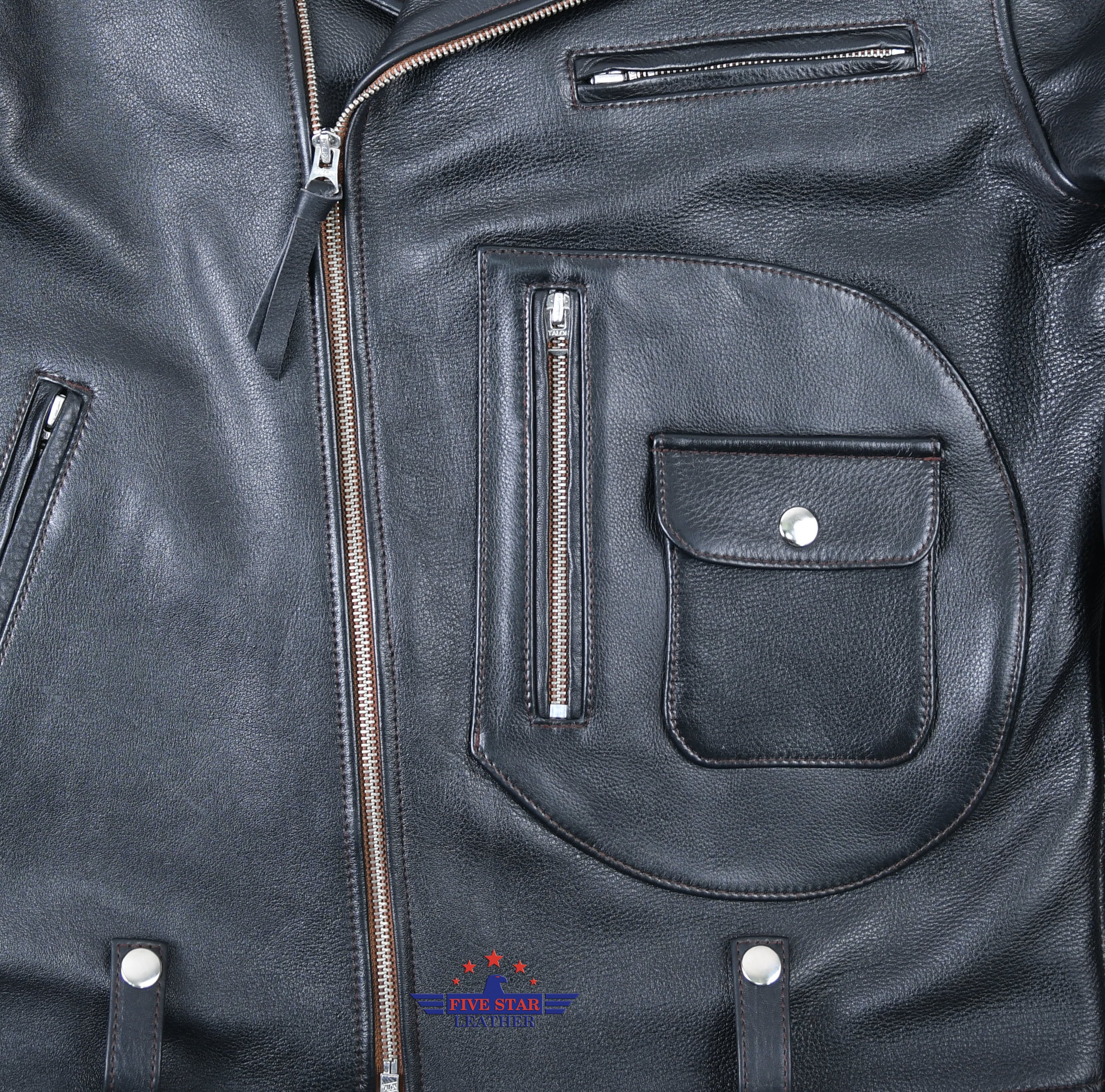 FiveStar Leather Vintage D Pocket Road Master Men Jacket Black Steerhide