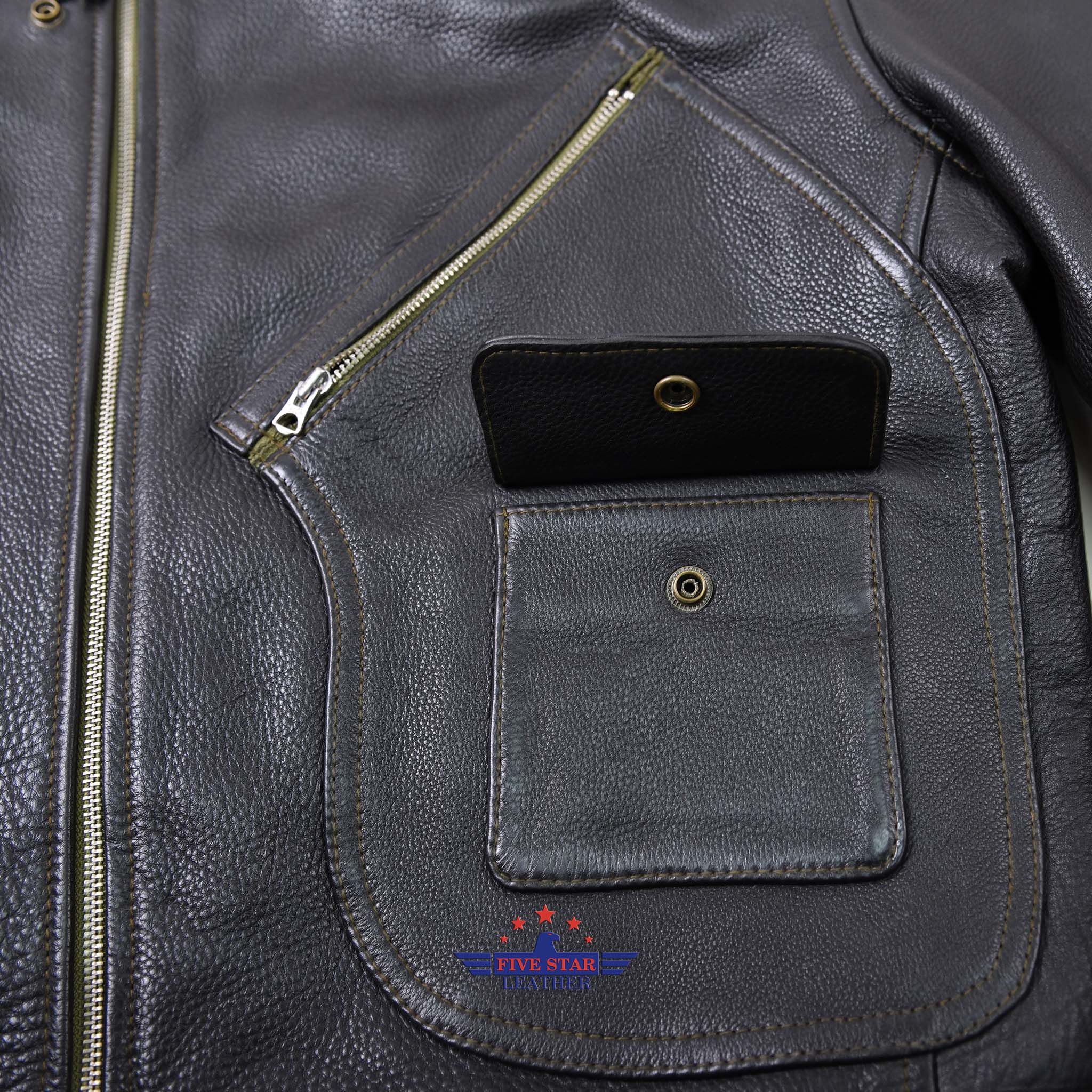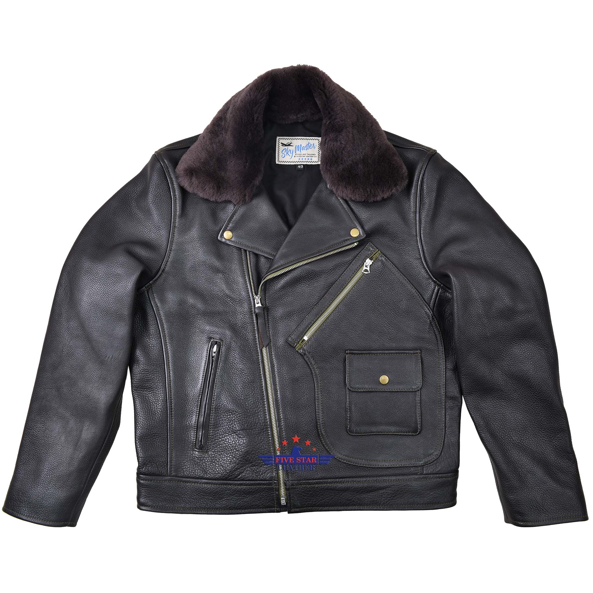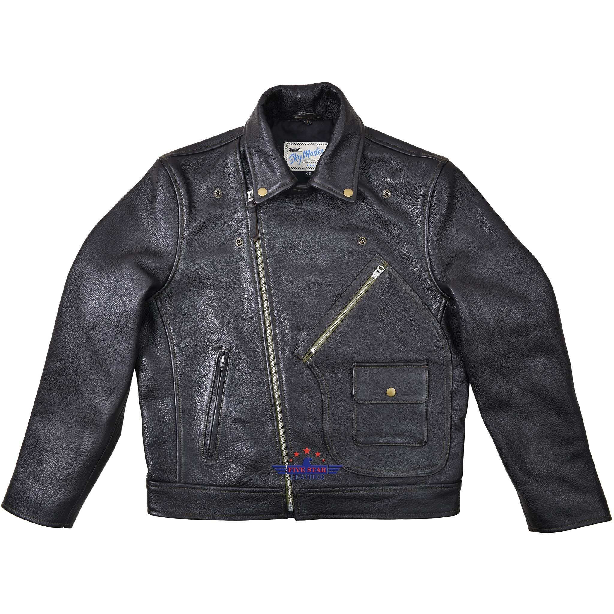 FiveStar Leather Vintage D Styled Pocket Sky Master Men Jacket Seal Brown Steer Hide