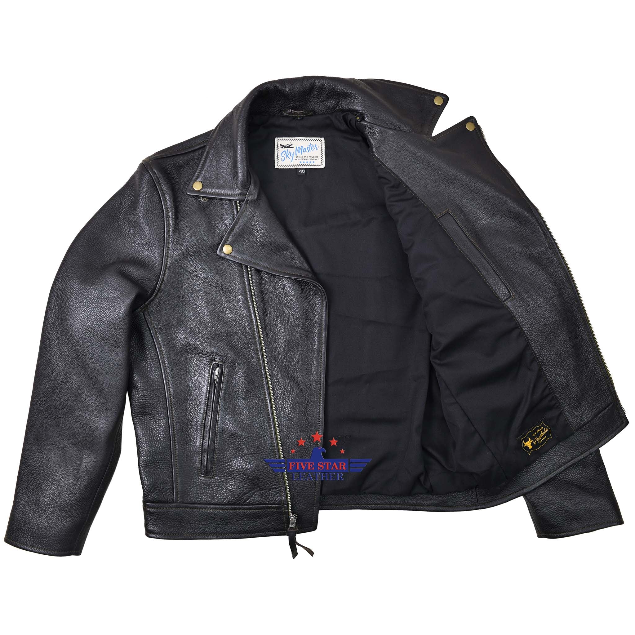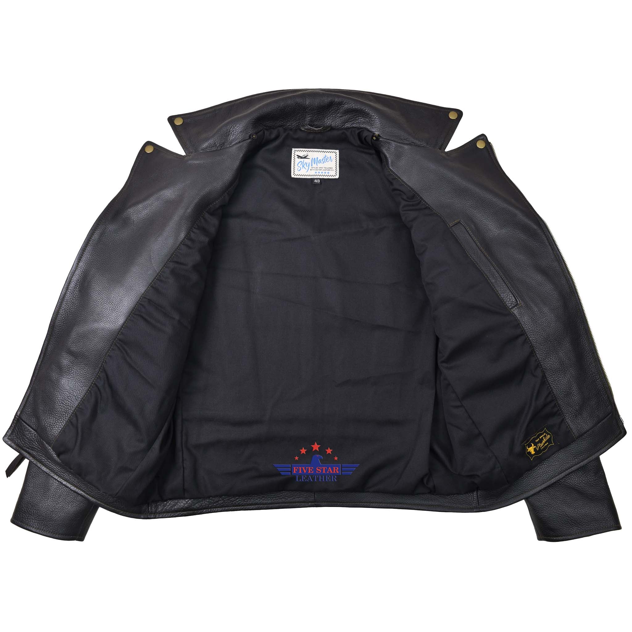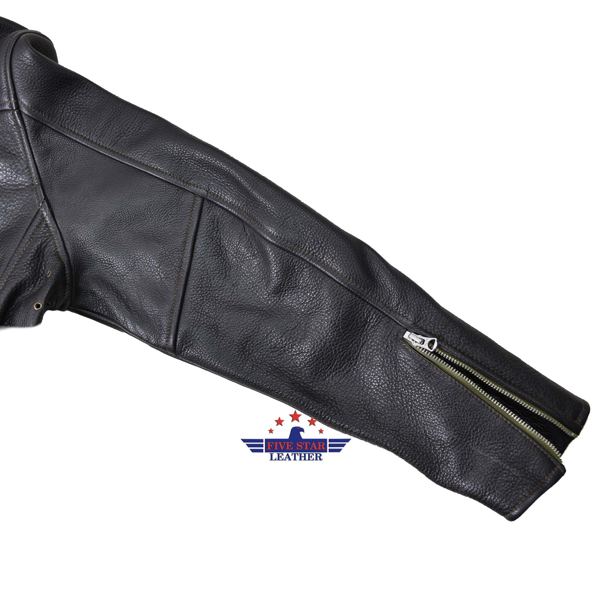 FiveStar Leather Vintage D Styled Pocket Sky Master Men Jacket Seal Brown Steer Hide