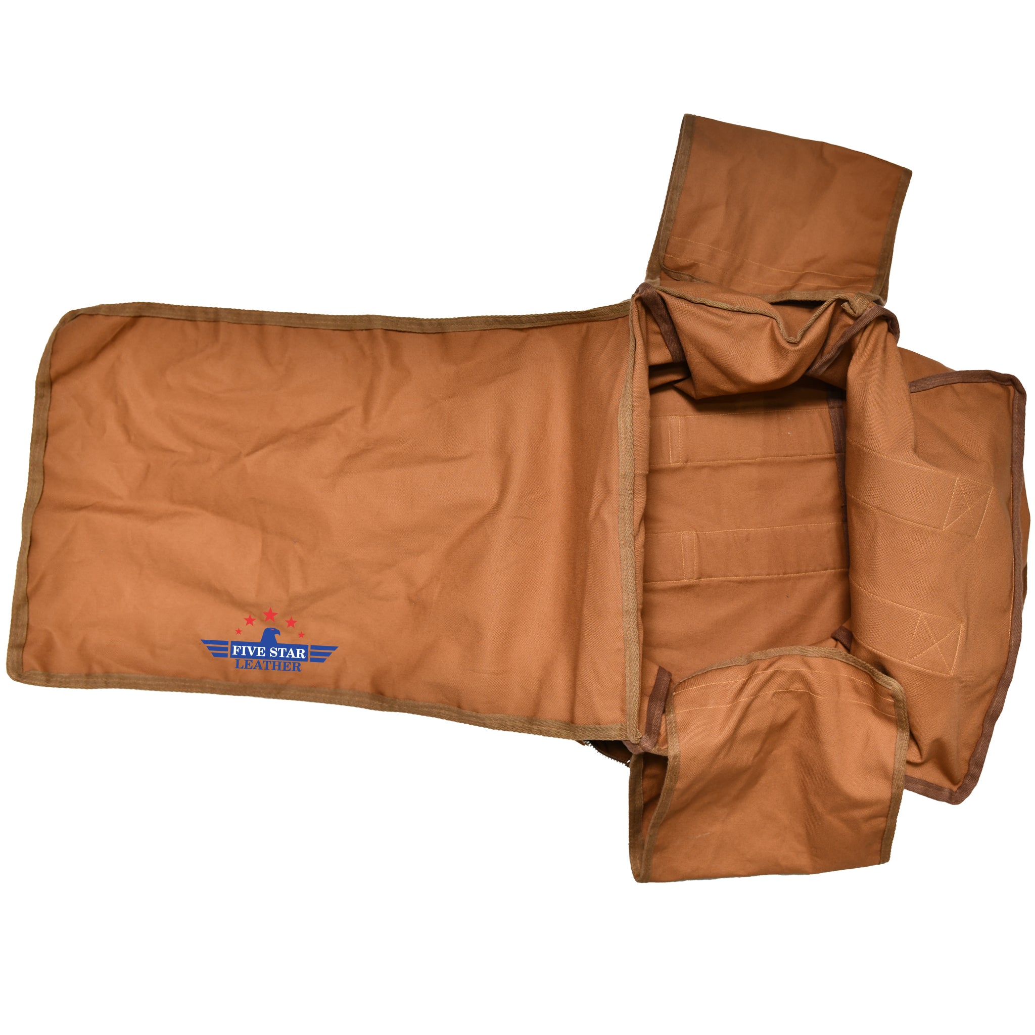 Material: Heavy-duty cotton canvas with reinforced webbing straps for durability.