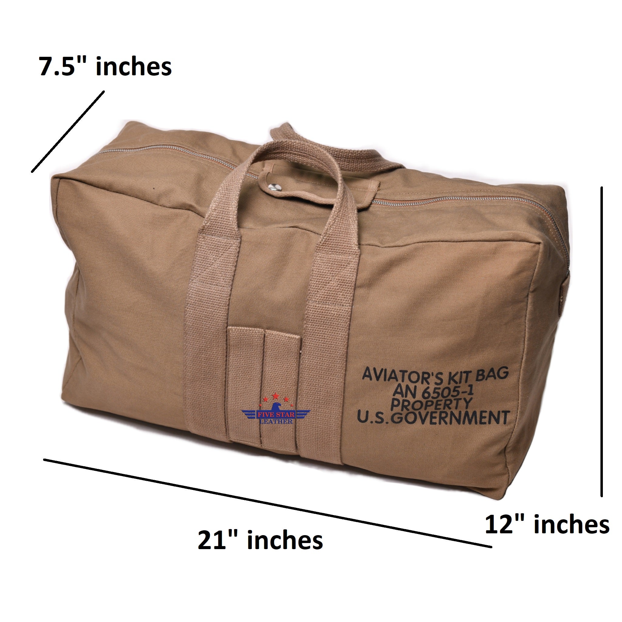The USAAF AN-6505-1 Aviators Kit Bag is a faithful reproduction crafted from 100% canvas cotton. It features a Talon zipper and snap button closure, along with two interior pockets for organized storage.