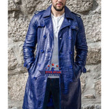 Men Real Hide Leather Embossed Jacket Royal Blue Coat