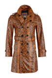 Men Fashion Real Leather Python Cobra Snake Textured Belted Long Coat Cowhide