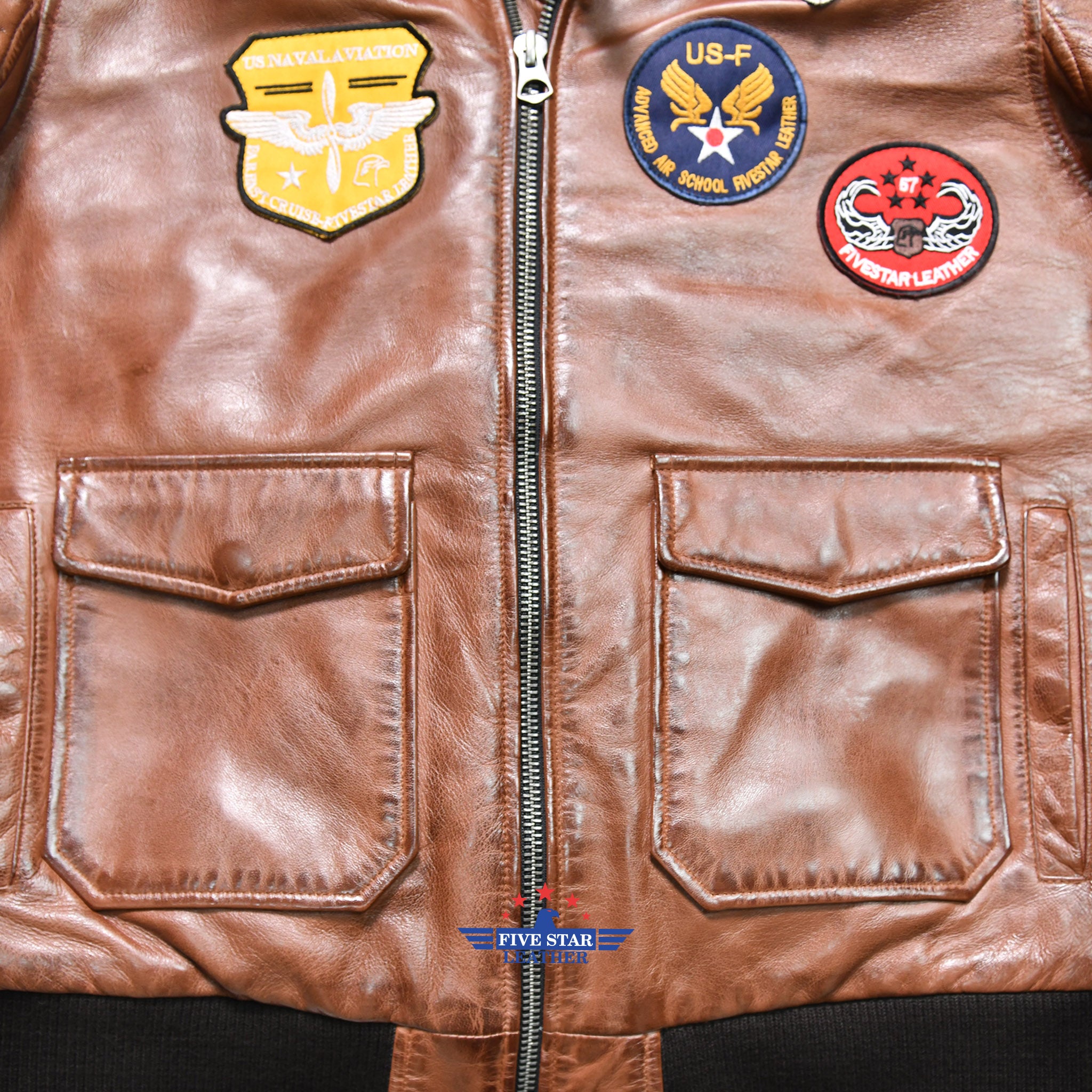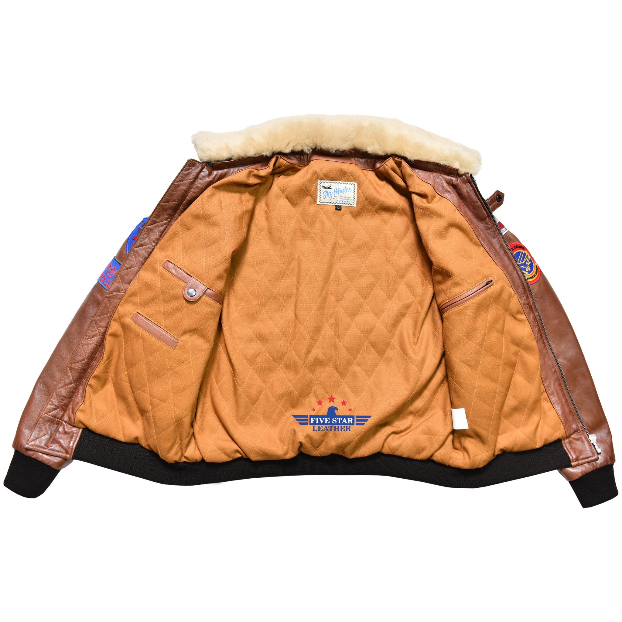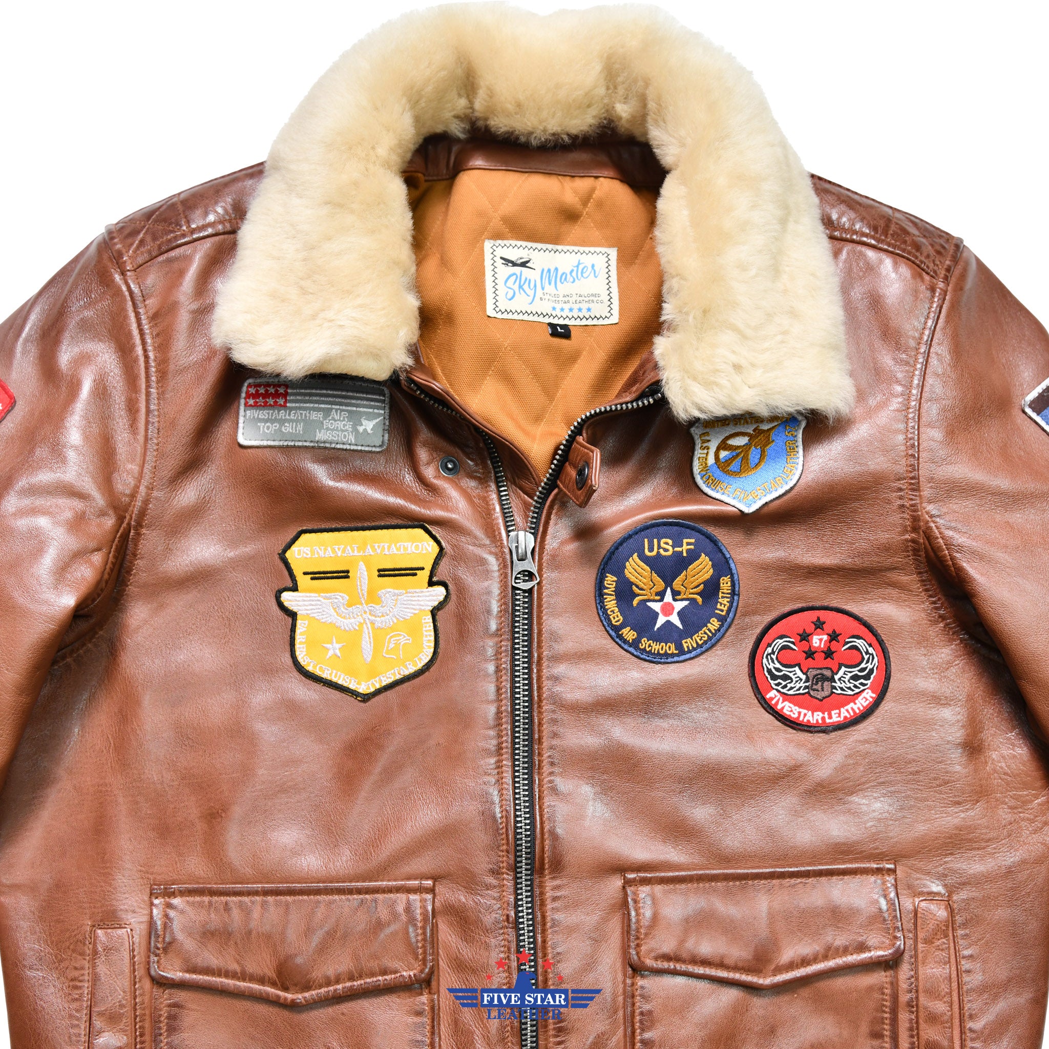 FiveStar Leather Men Aviator Pilot Flying Patched Jacket