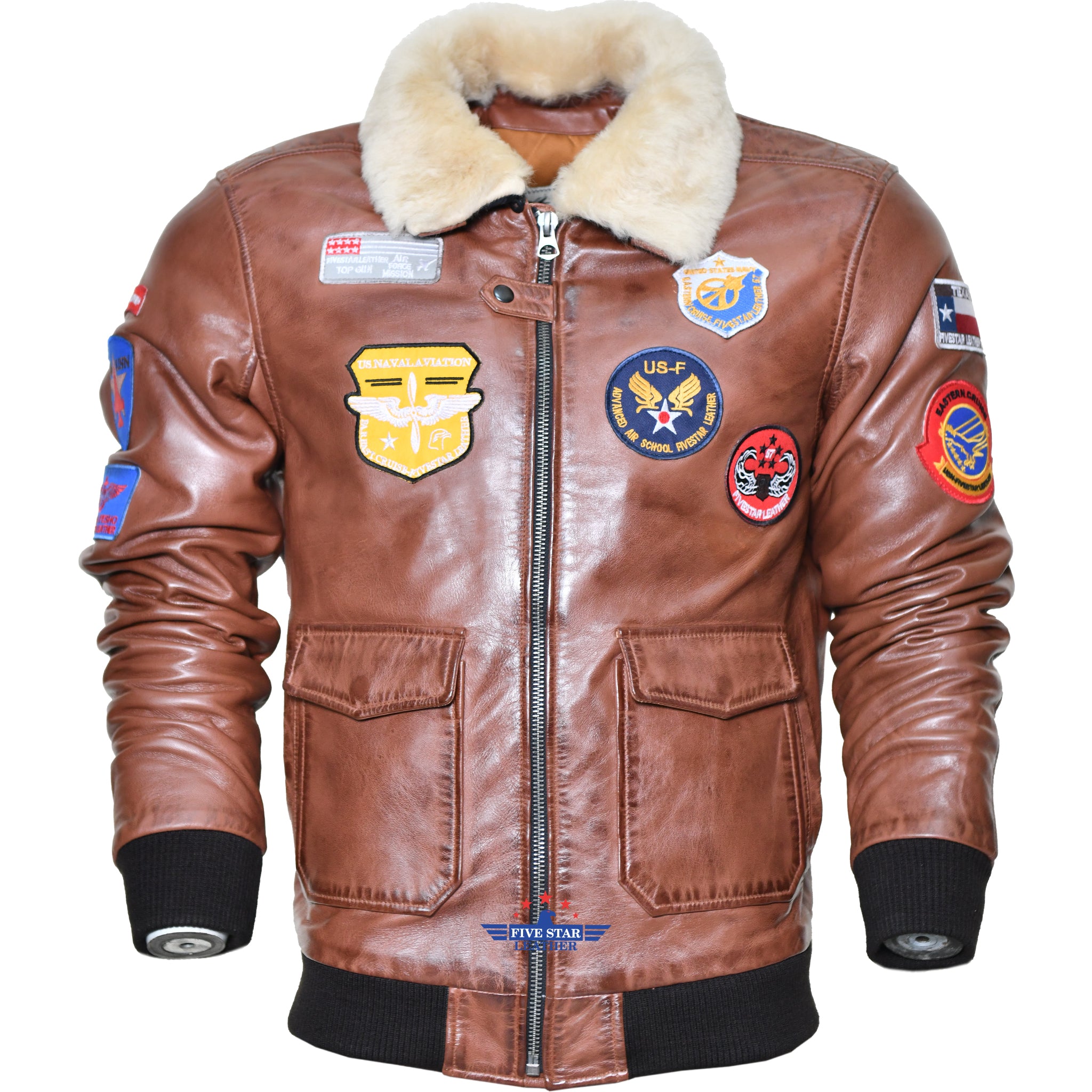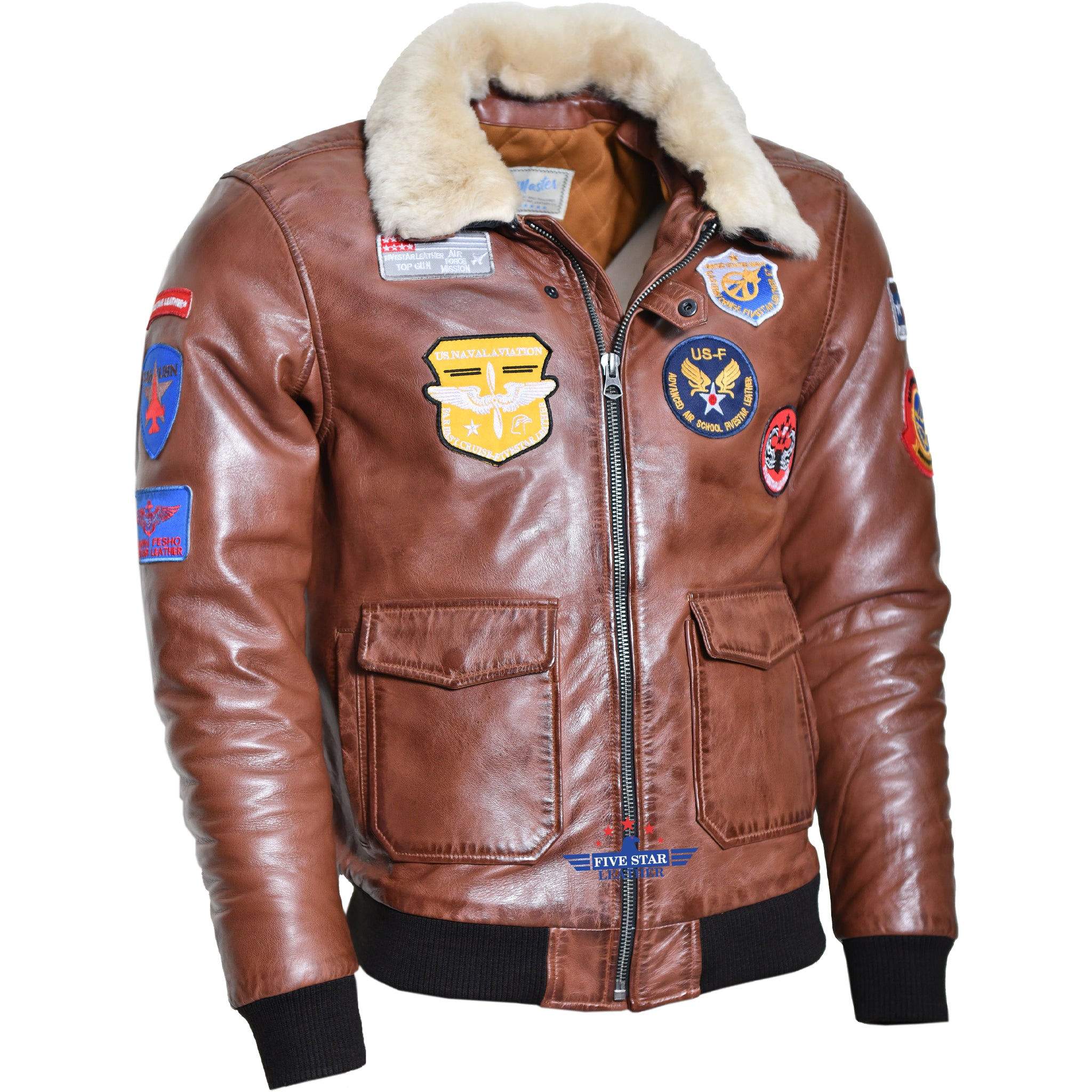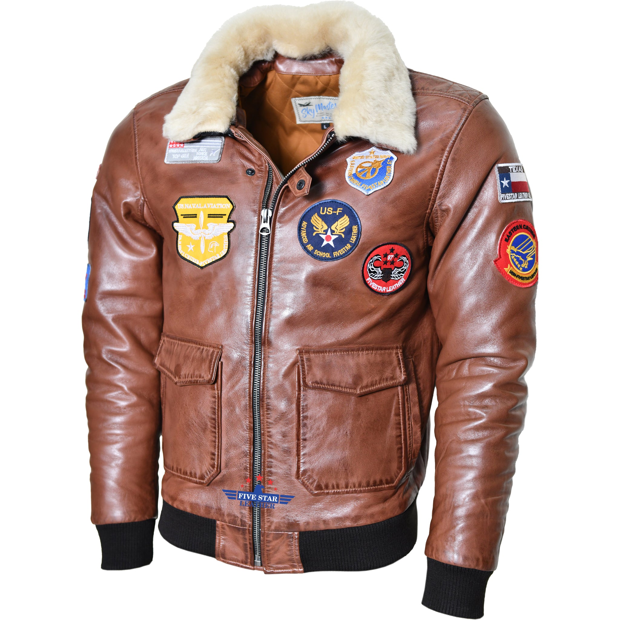 FiveStar Leather Men Aviator Pilot Flying Patched Jacket