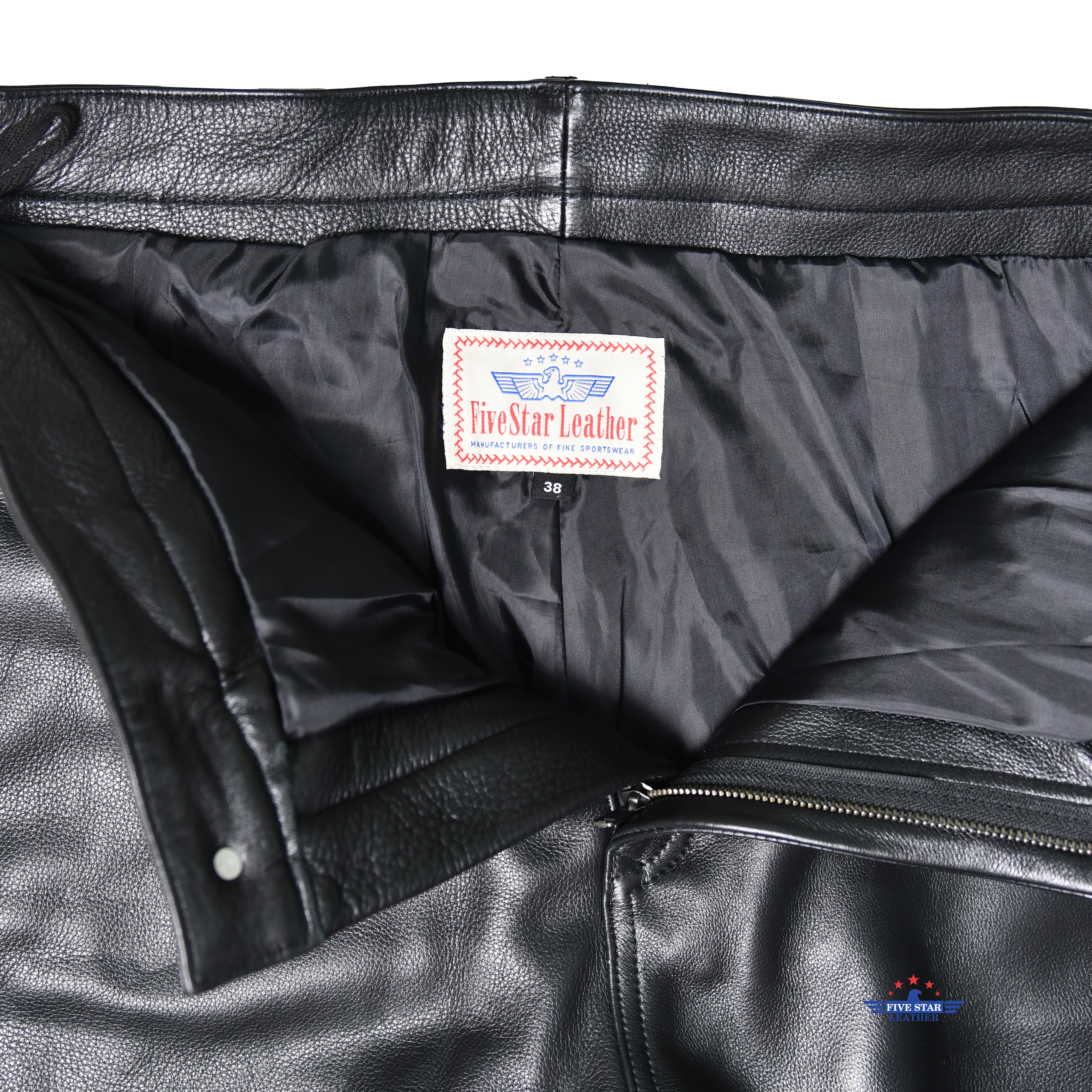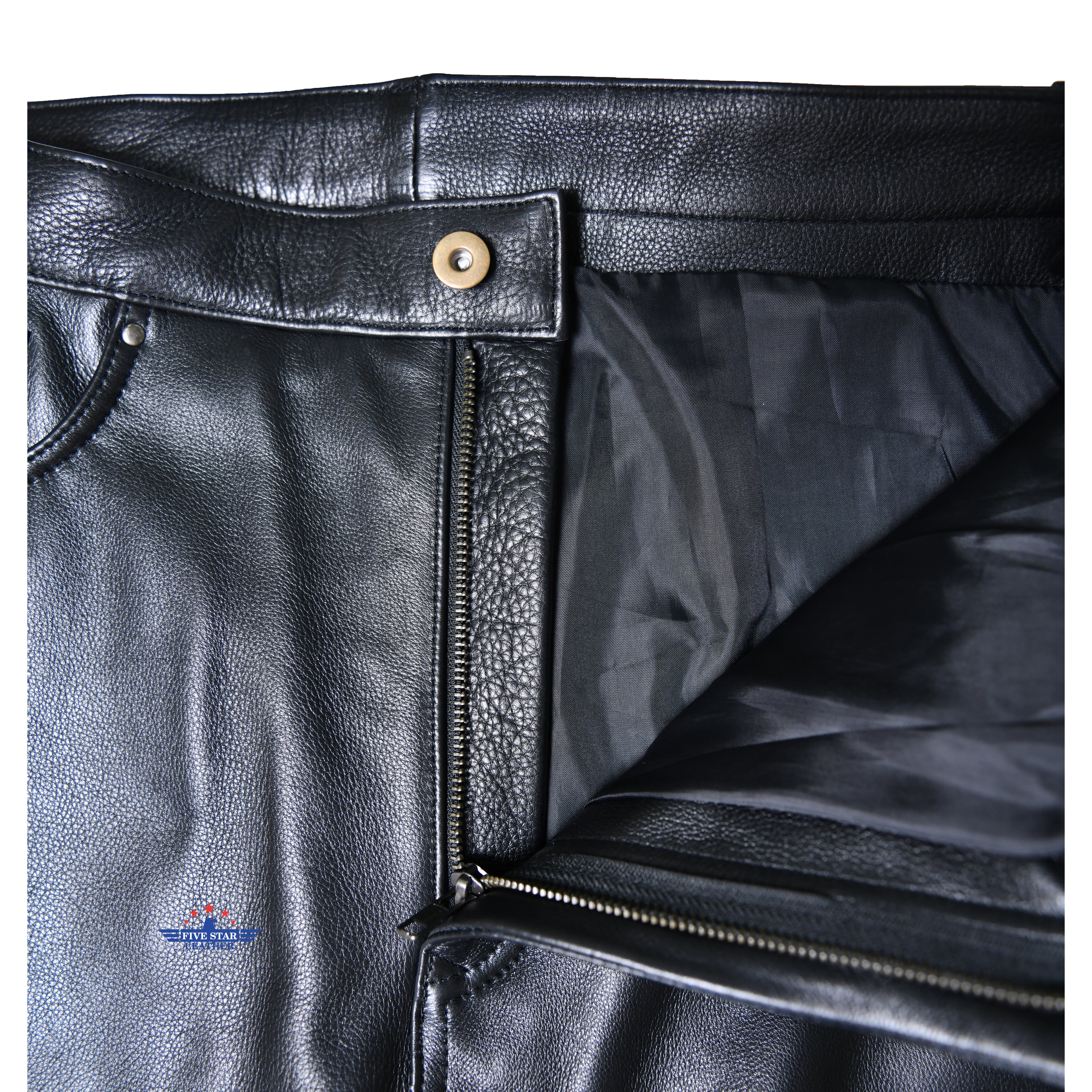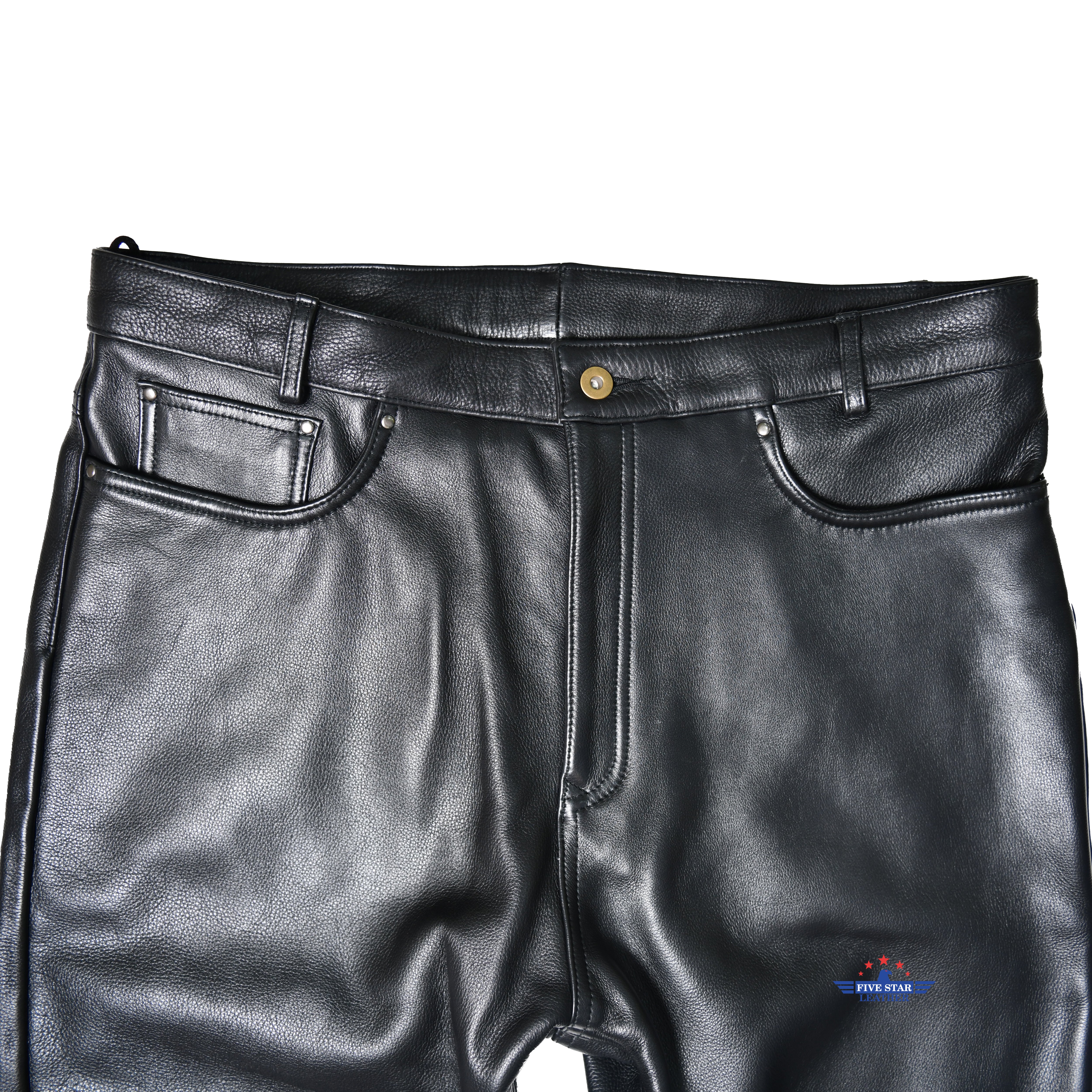 FiveStar Leather Men Western Black Pant Steerhide full grain