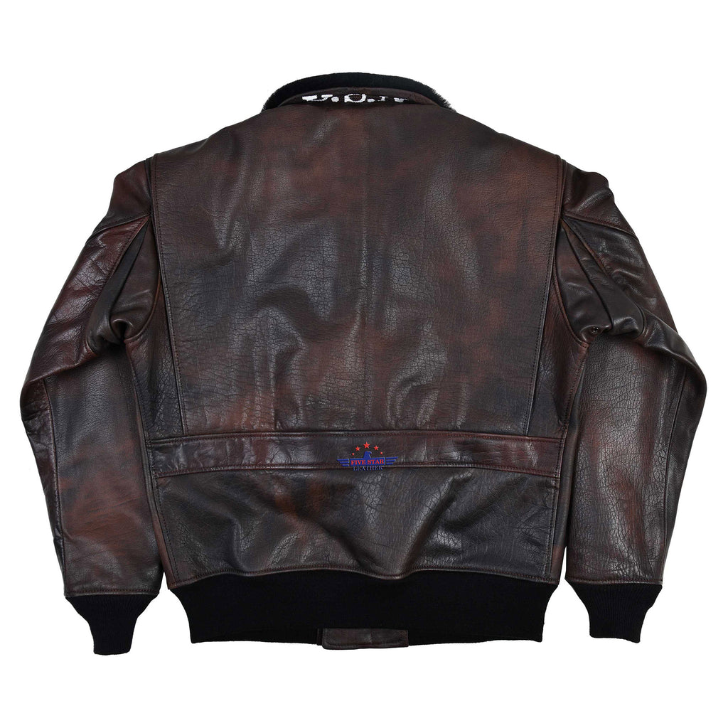 G1 55J14 USN Naval Flight Jacket is reproduced from Original WWII L. W. Foster Company Original Patterns, This Jacket is made with Buffalo Distressed Leather, with Original Talon Repro zippers, Real Mouton Fur Collar, Have a pencil slot on front flap pocket, Lining is Rayon, Knitting is very high quality, Collar back have a USN Stenciling as Original. This Jacket have all the military specs and details as in original WWII Jackets.