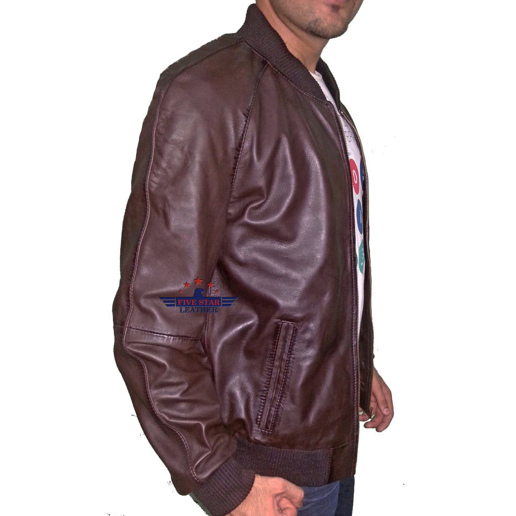 Men Real Soft Lamb Leather Varsity Baseball Bomber College Raglan sleeve Jacket
