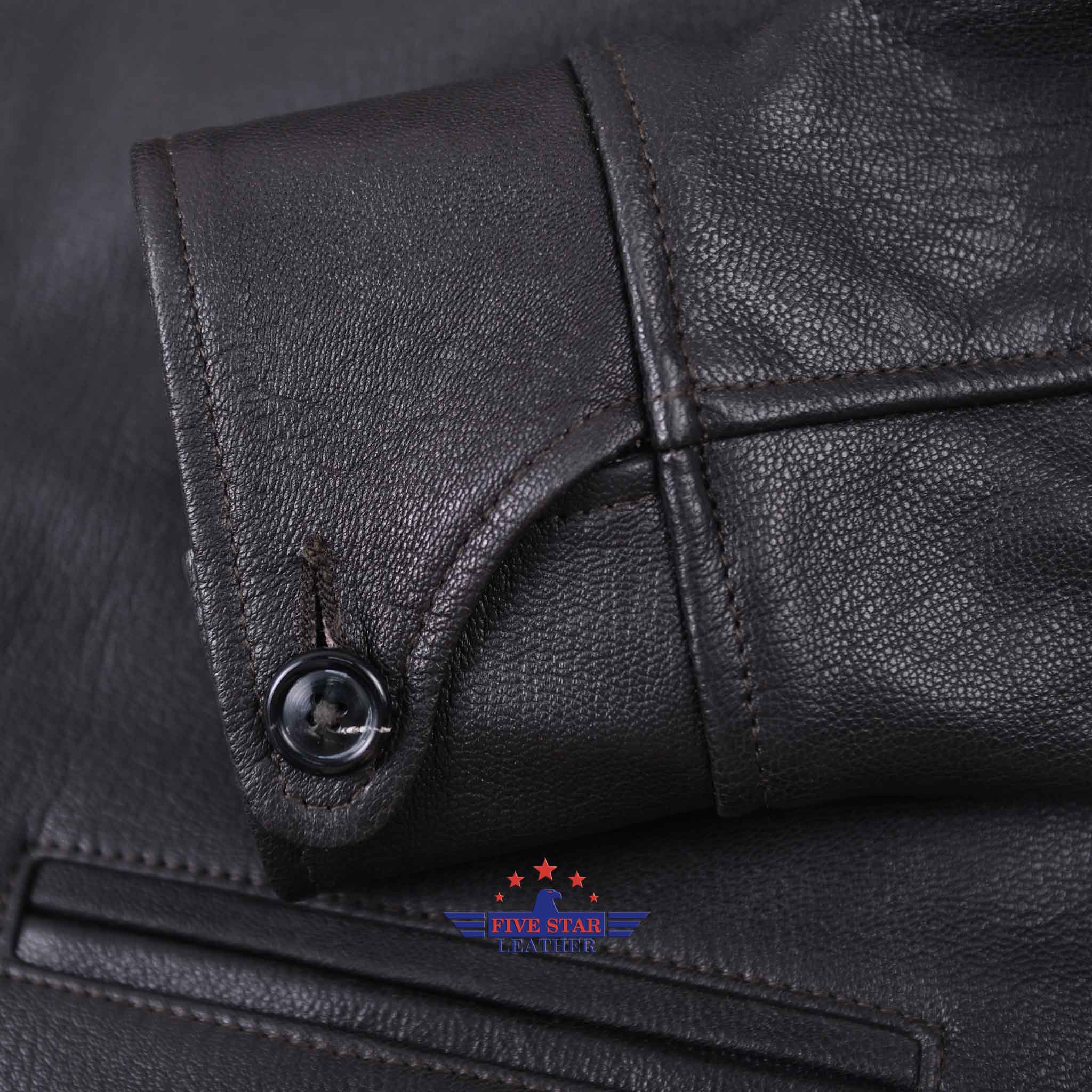 FiveStar Leather Men 1920s Car Coat Premium Goatskin Seal Brown