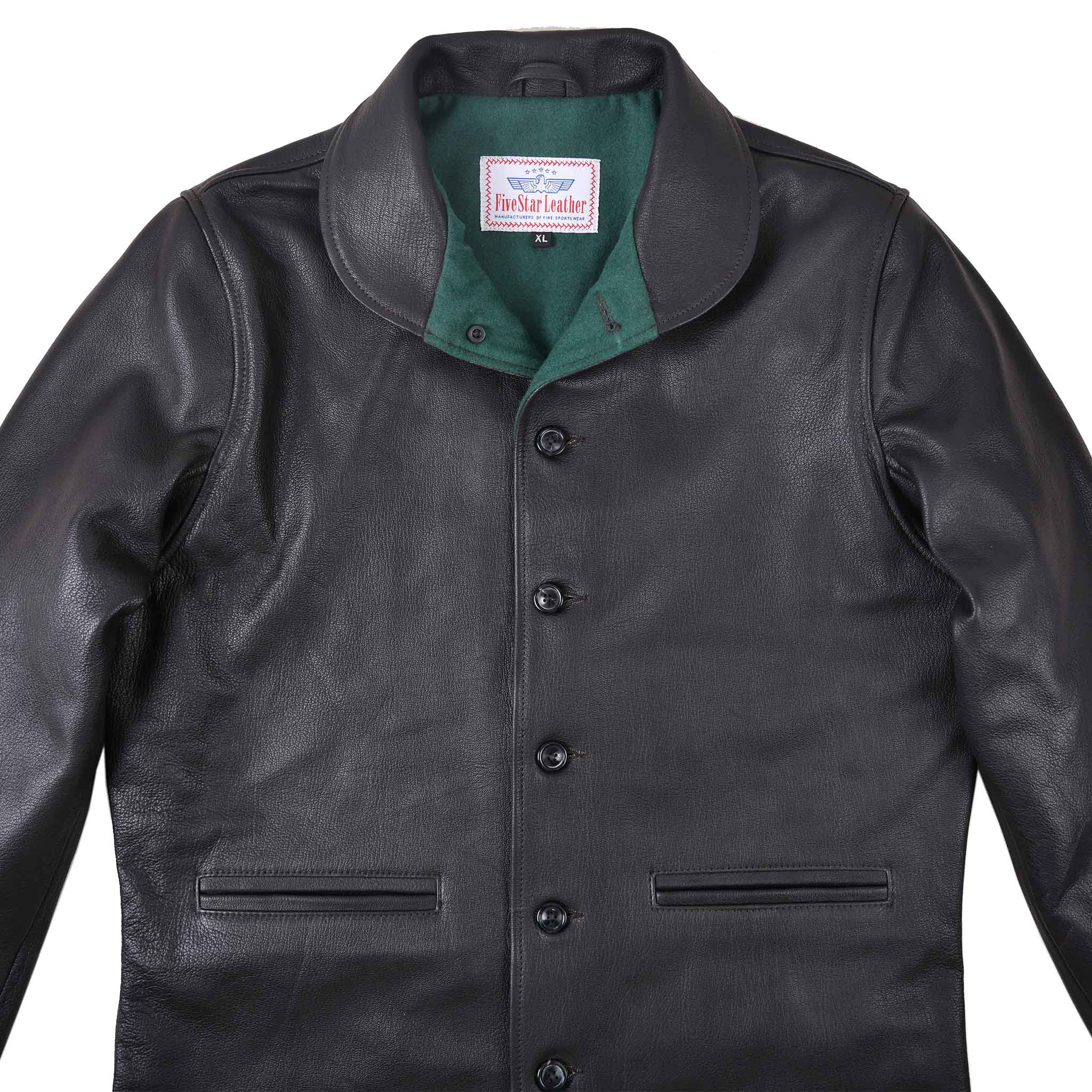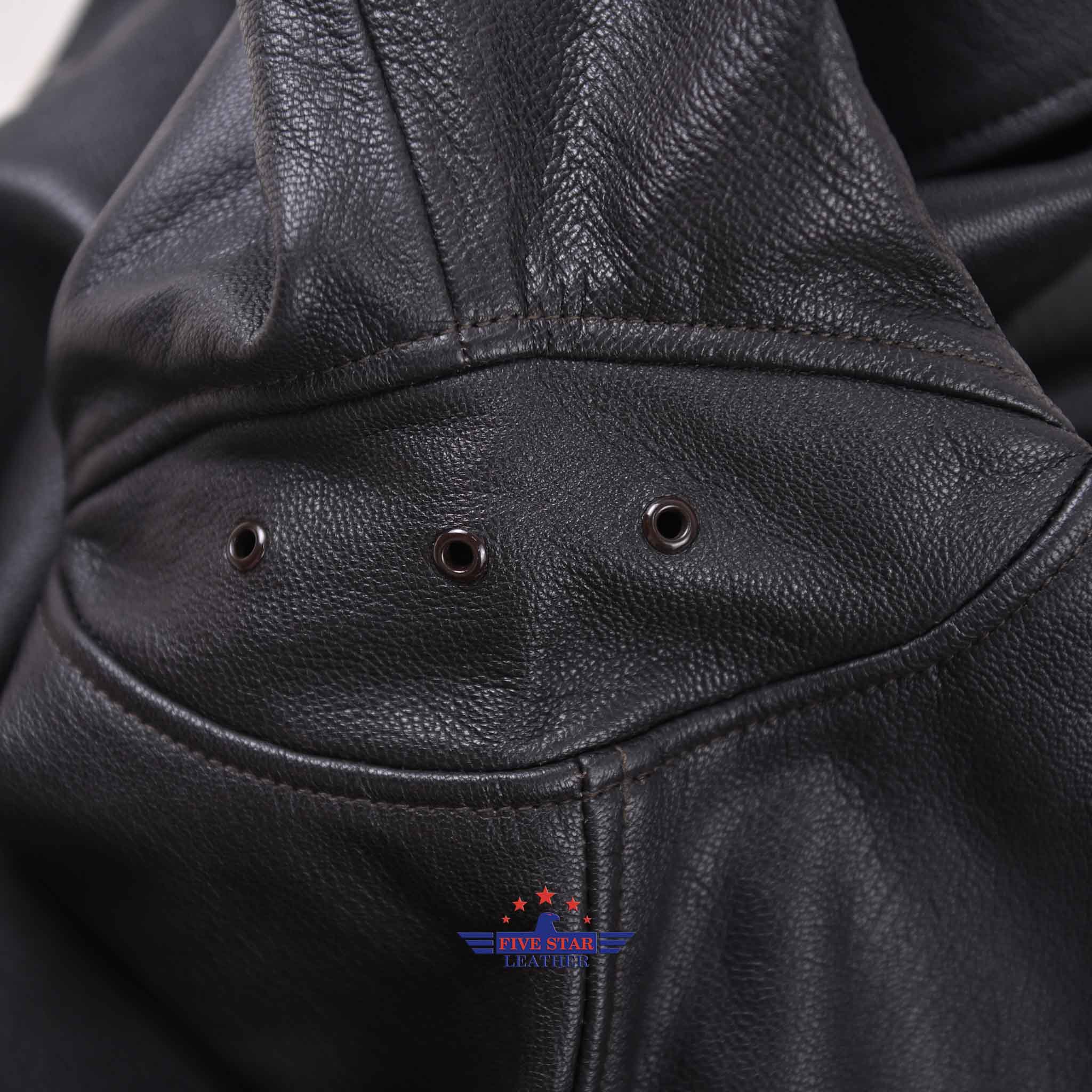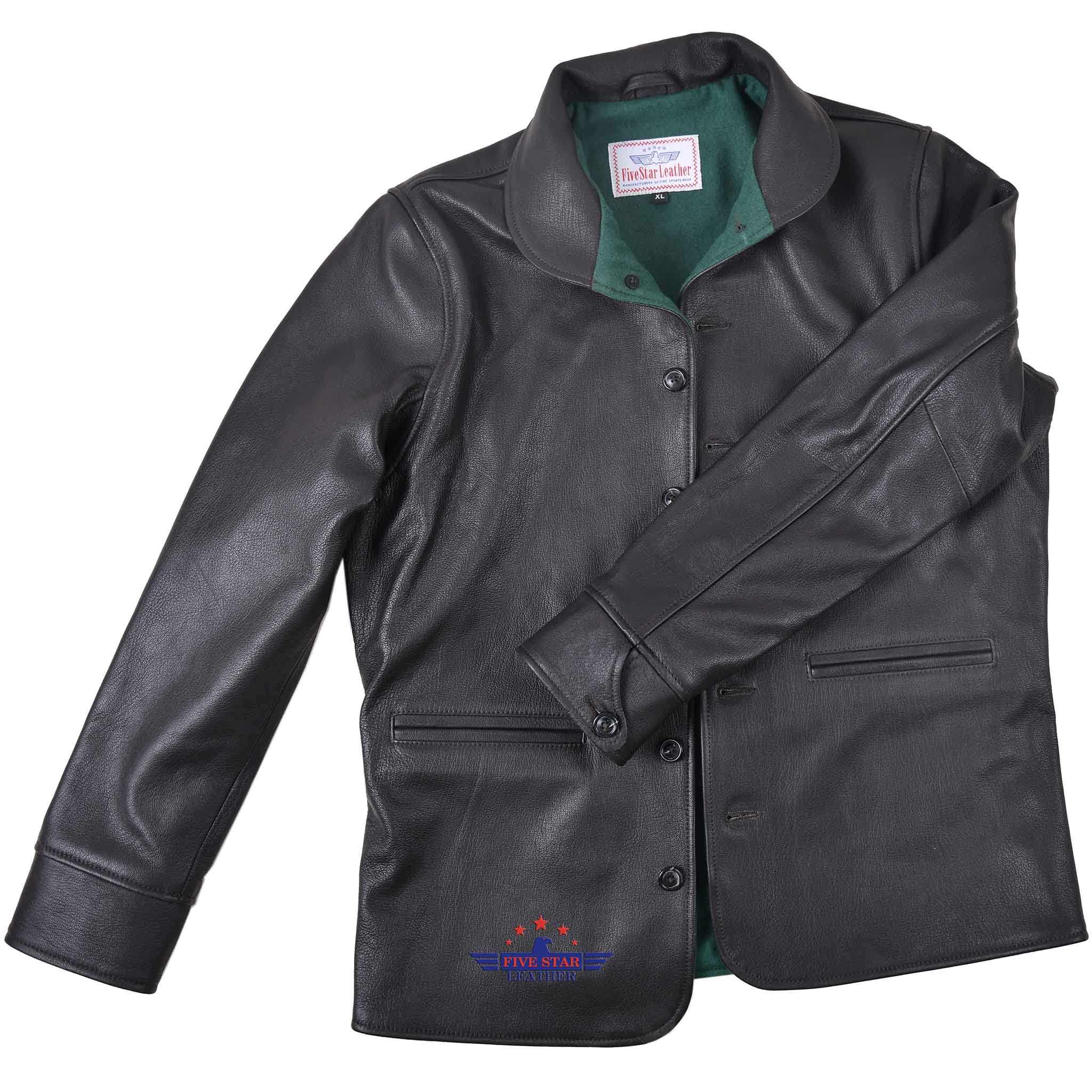 Crafted from genuine high quality Goatskin semi veg tanned leather and incorporating a 100% wool inner lining, the FiveStar Leather 1920s Car Coat in Seal Brown is a timeless piece that boasts a leather thickness of 1.2mm. This jacket also features Real Horn buttons and can be made to order in custom sizes.
