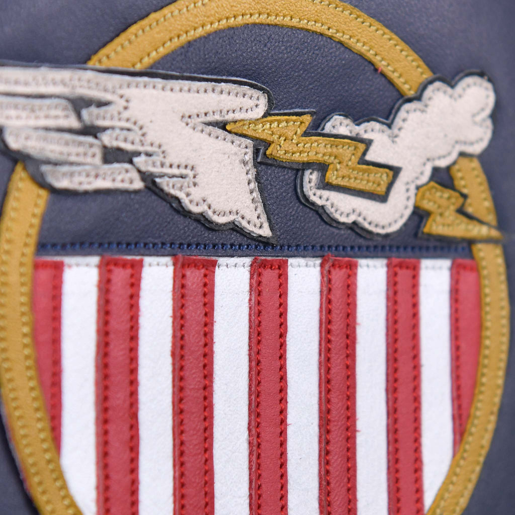Handcrafted leather patch representing the 91st Fighter Squadron.
