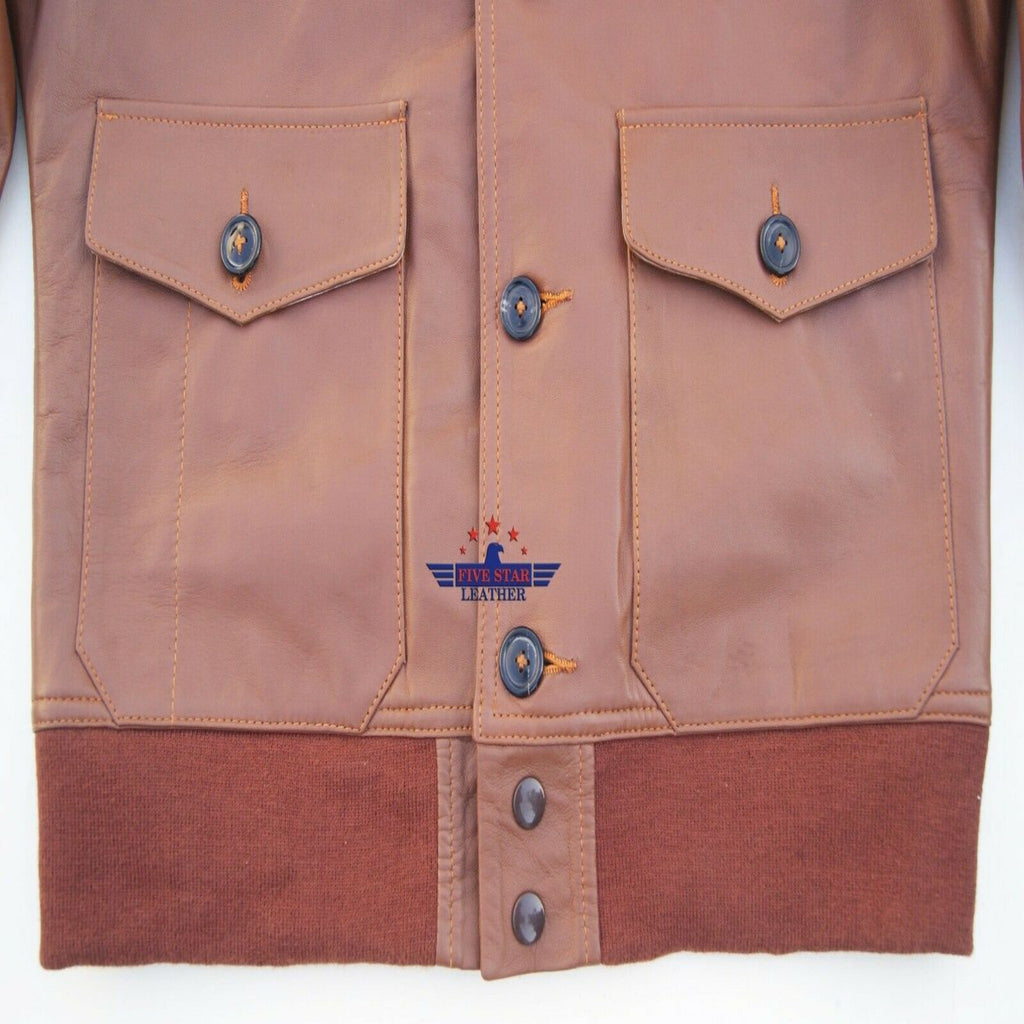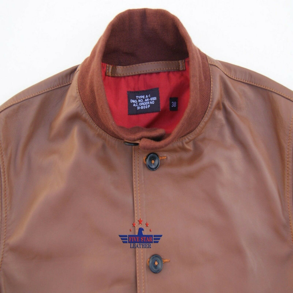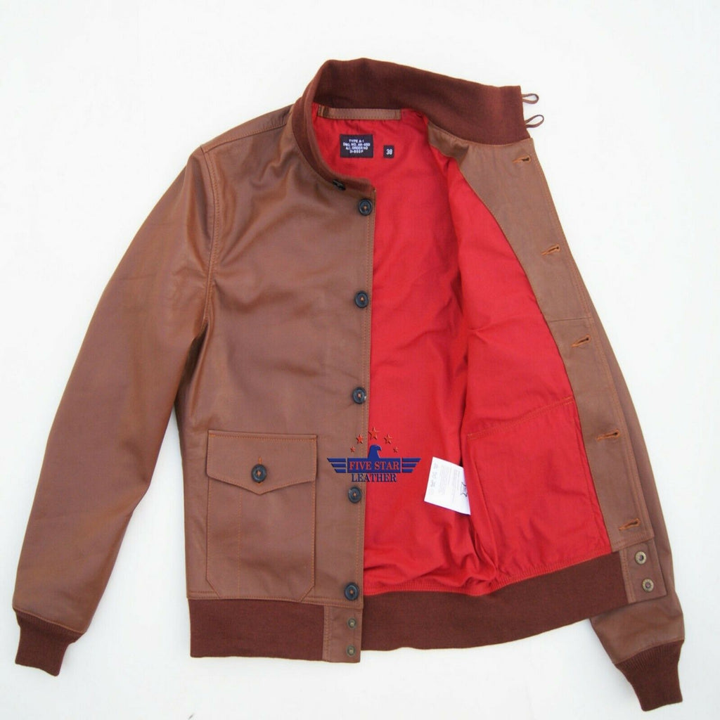Men Real Capeskin Leather Type A-1 Military Jacket Repro WWII With Horn buttons
