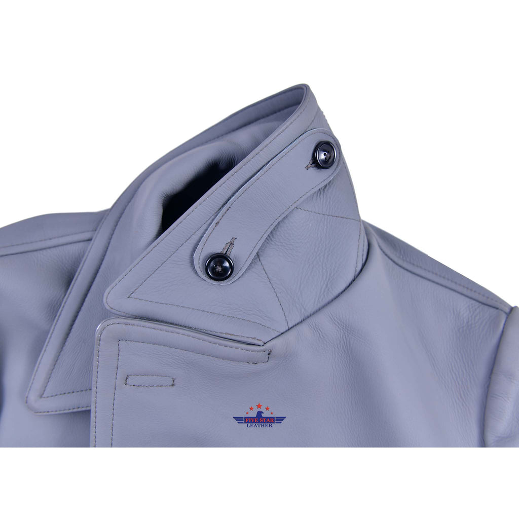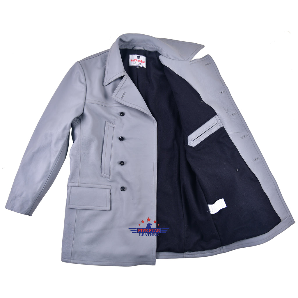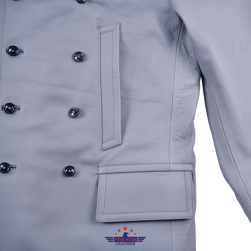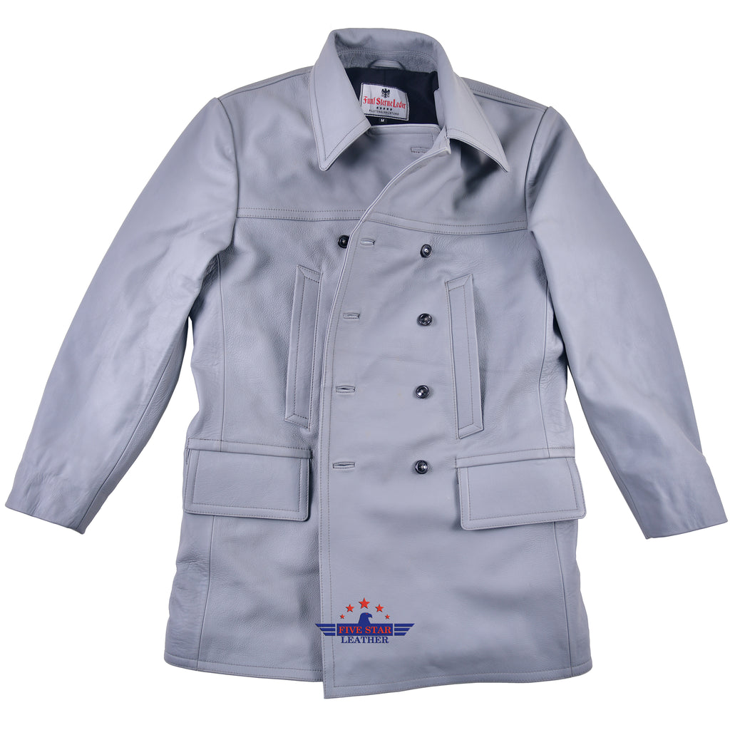 FiveStar Leather German U-Boat Grey Leather Coat Real Steerhide Leather