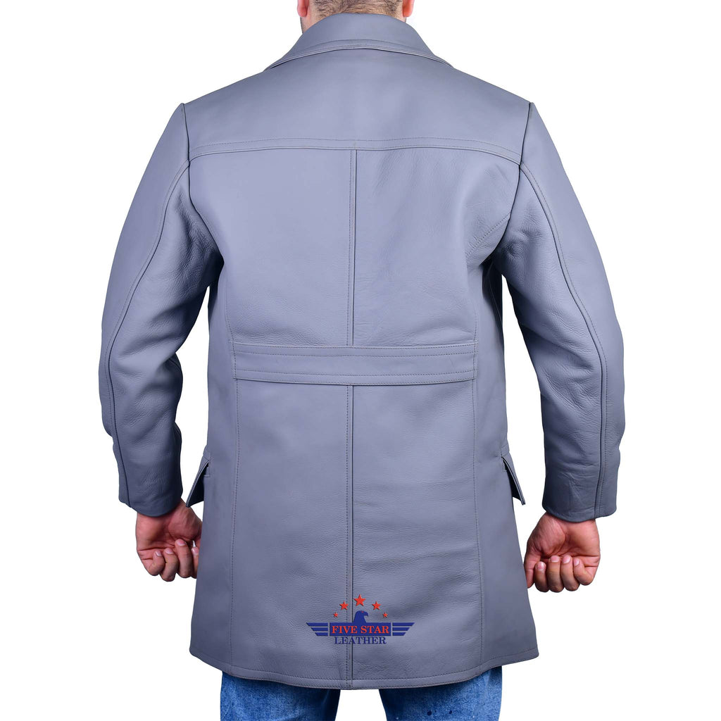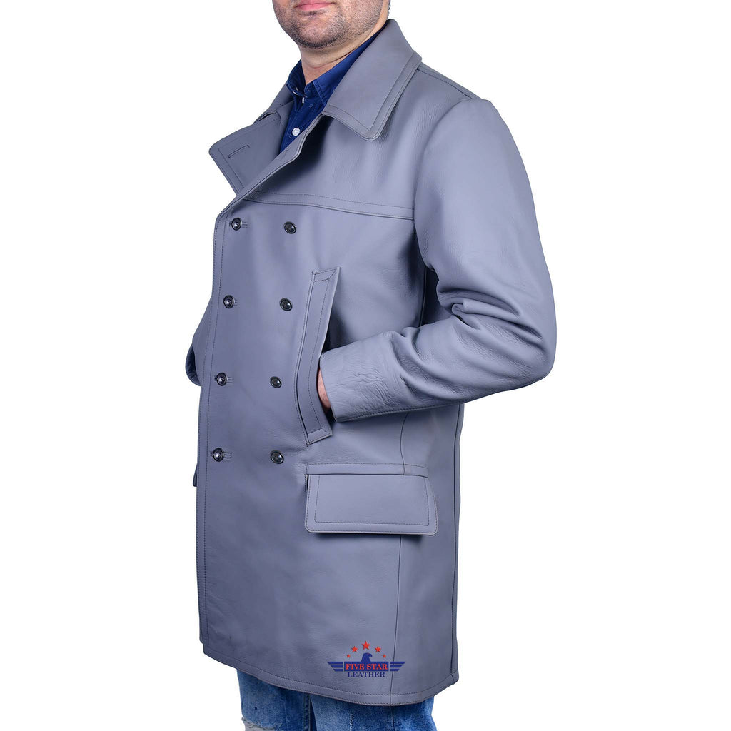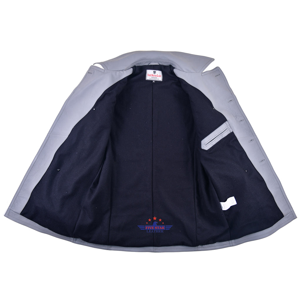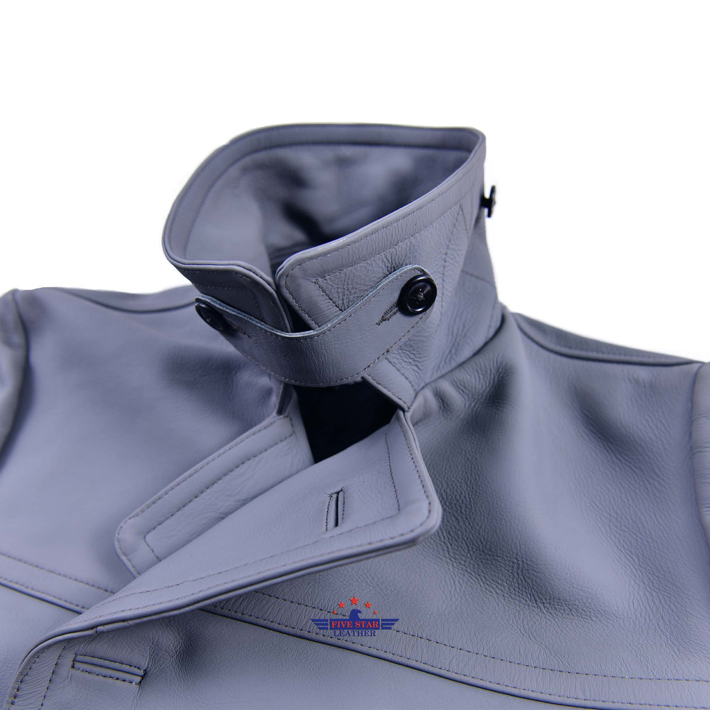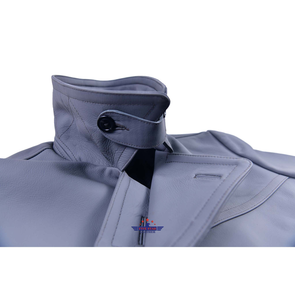FiveStar Leather German U-Boat Grey Leather Coat Real Steerhide Leather