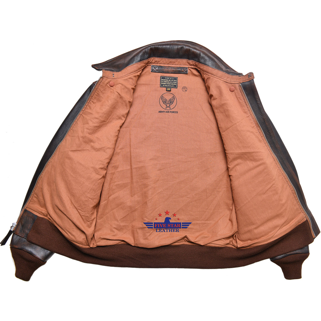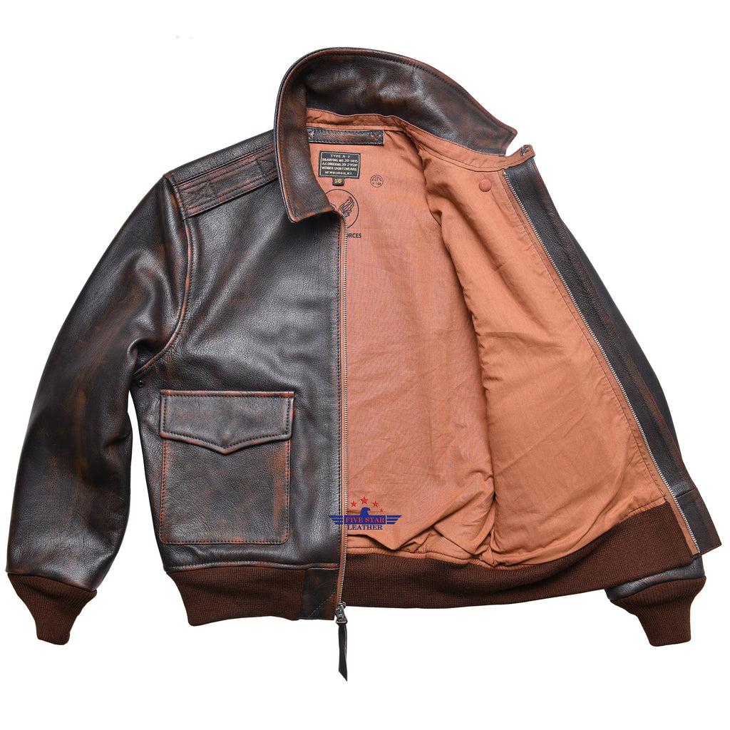 Fivestar leather Men Repro A2 1939 Werber Sportswear Military Flight Distressed Goatskin Leather Jacket