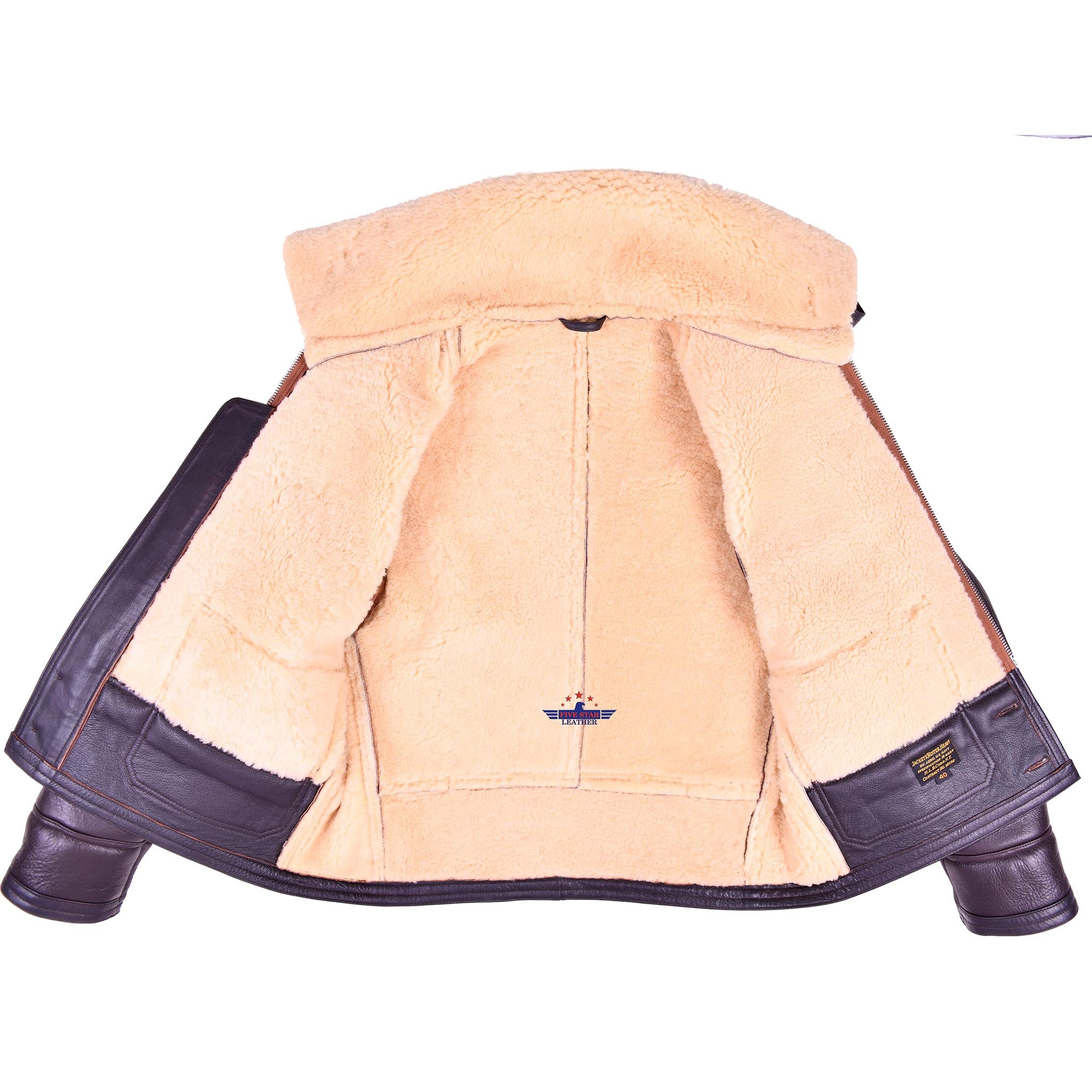 Men Aviator US Navy M-445A Sheepskin Leather Flight Jacket