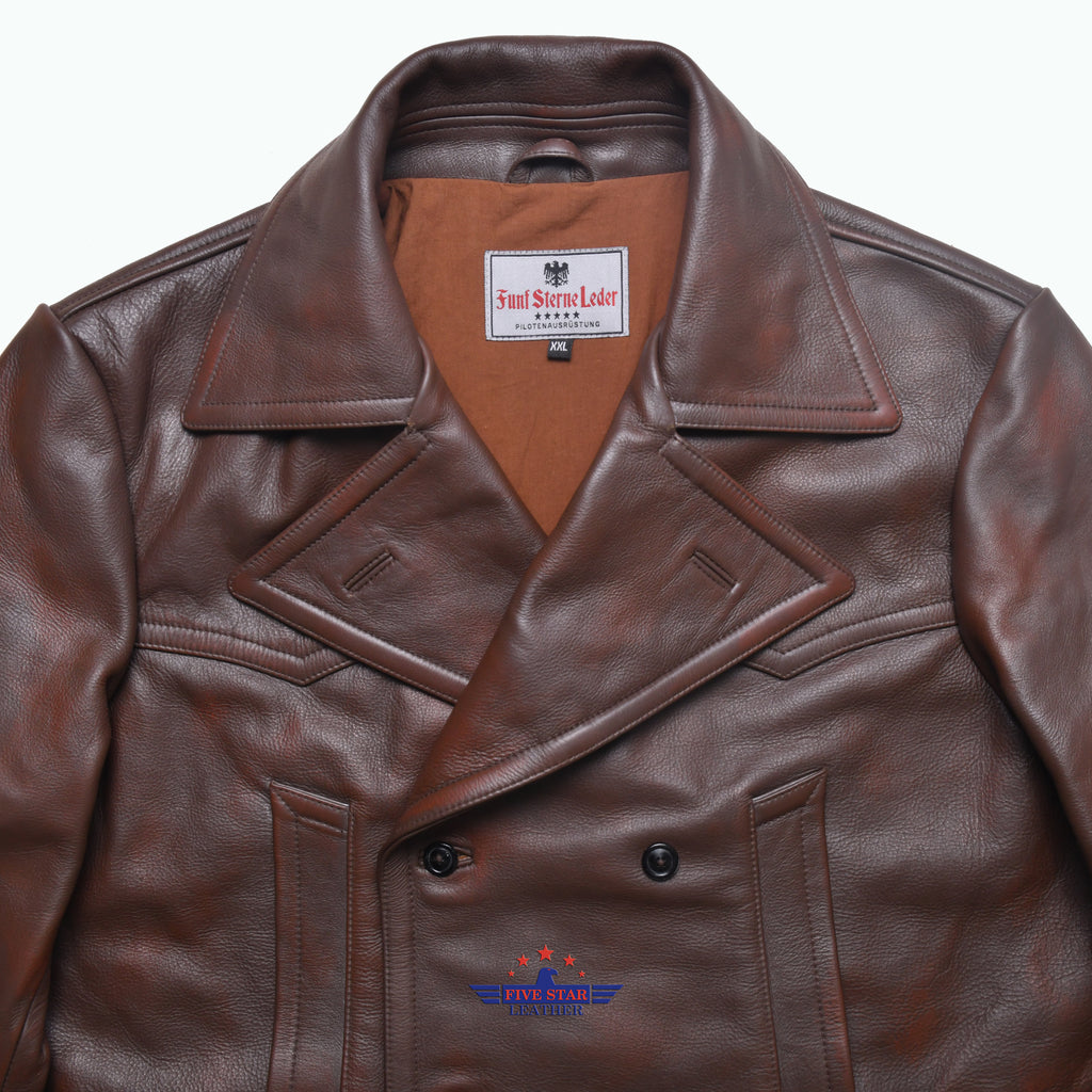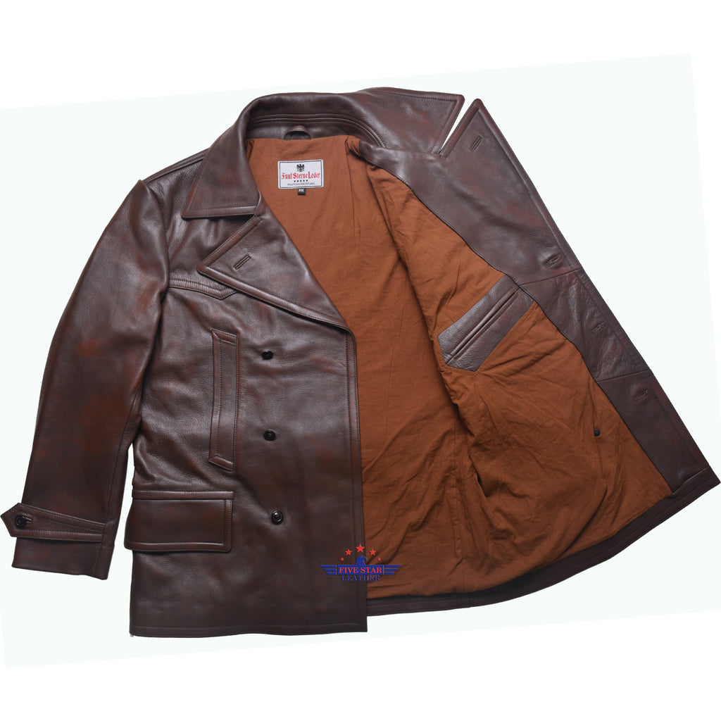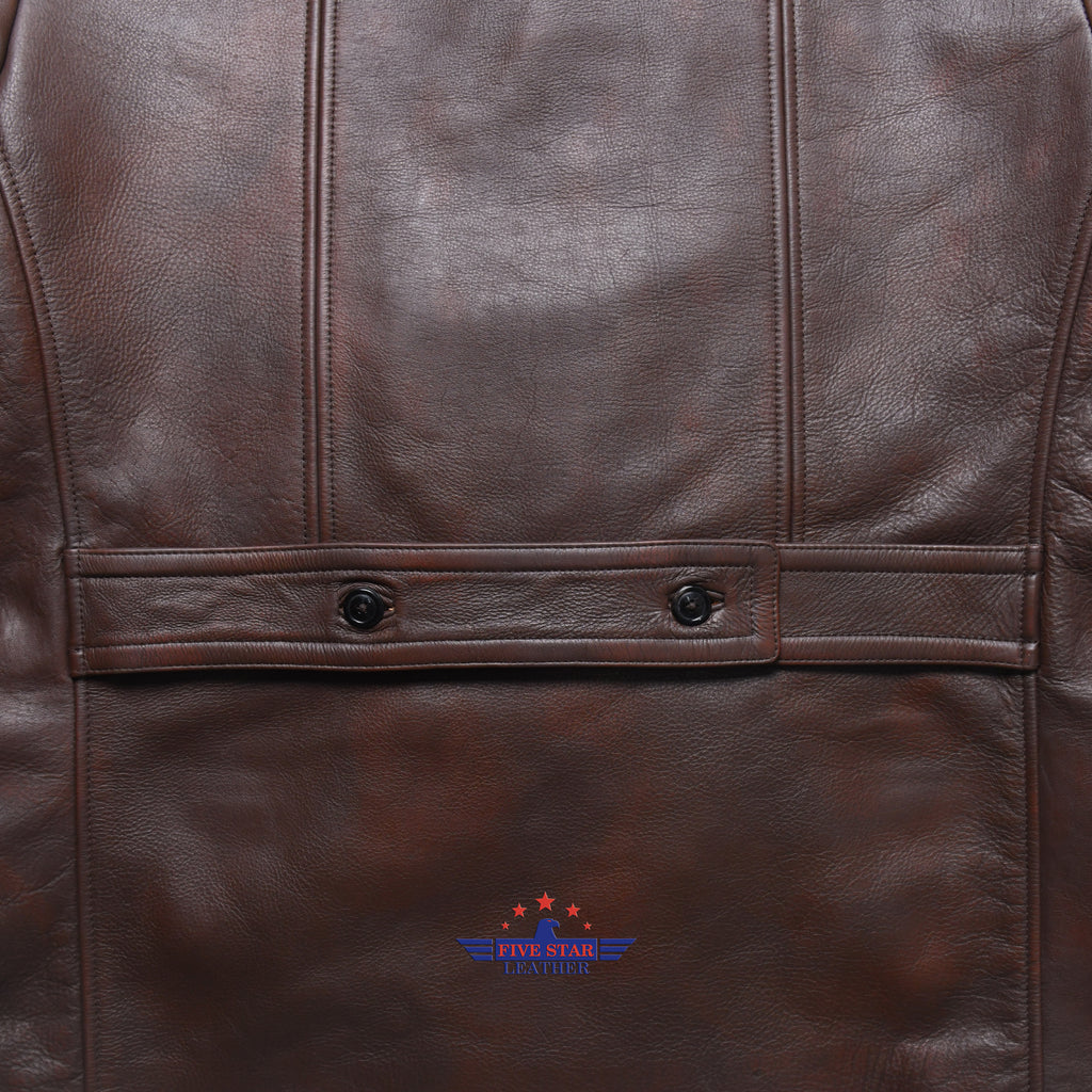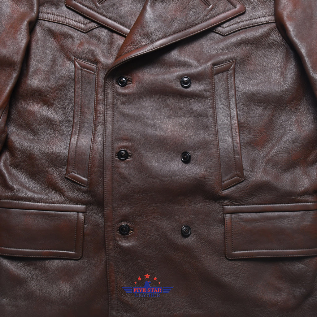 Fivestar Leather Men Double Breasted Horse Hide Mid Brown Coat