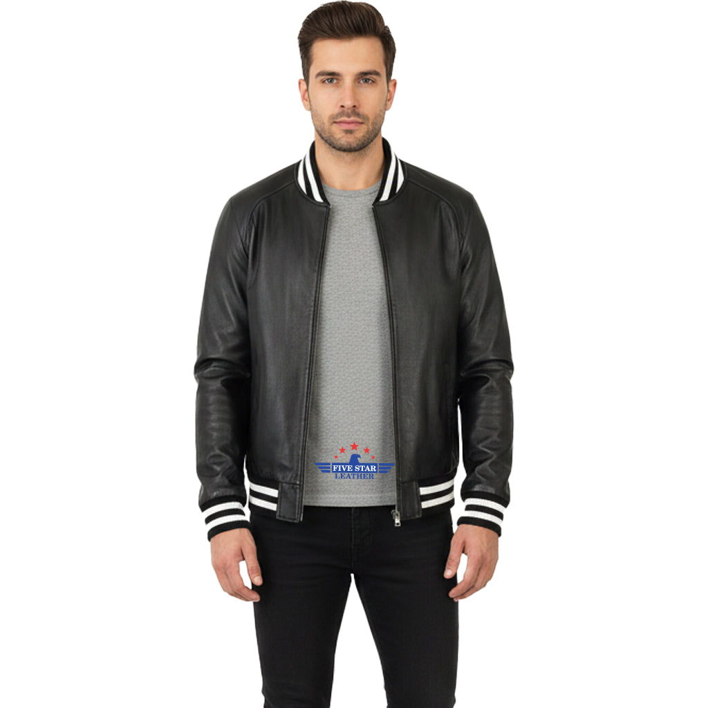 Men Real Soft Lamb Leather Varsity Baseball Bomber College Raglan sleeve Jacket