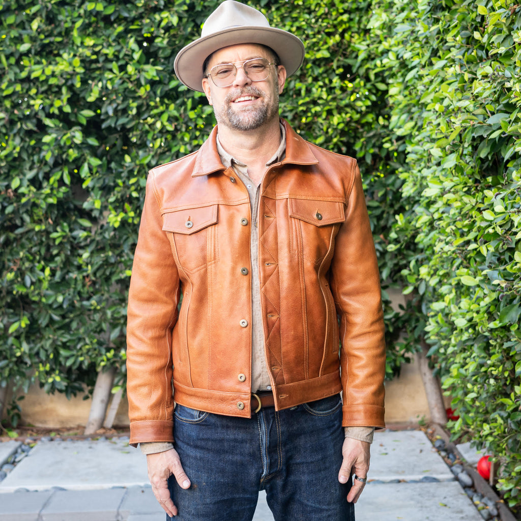 Men Trucker Real Horsehide Leather Classic Western Denim Style Leather Jacket