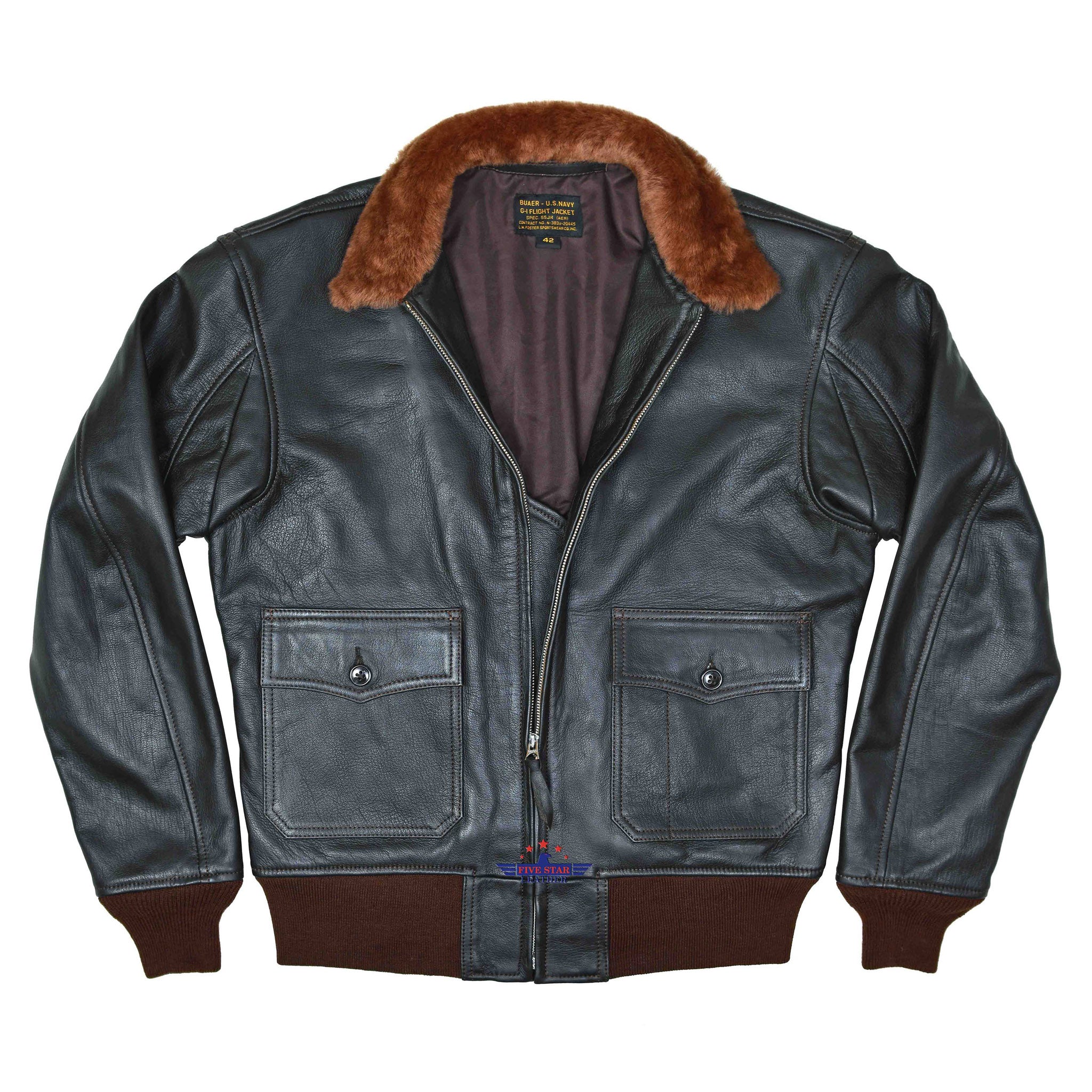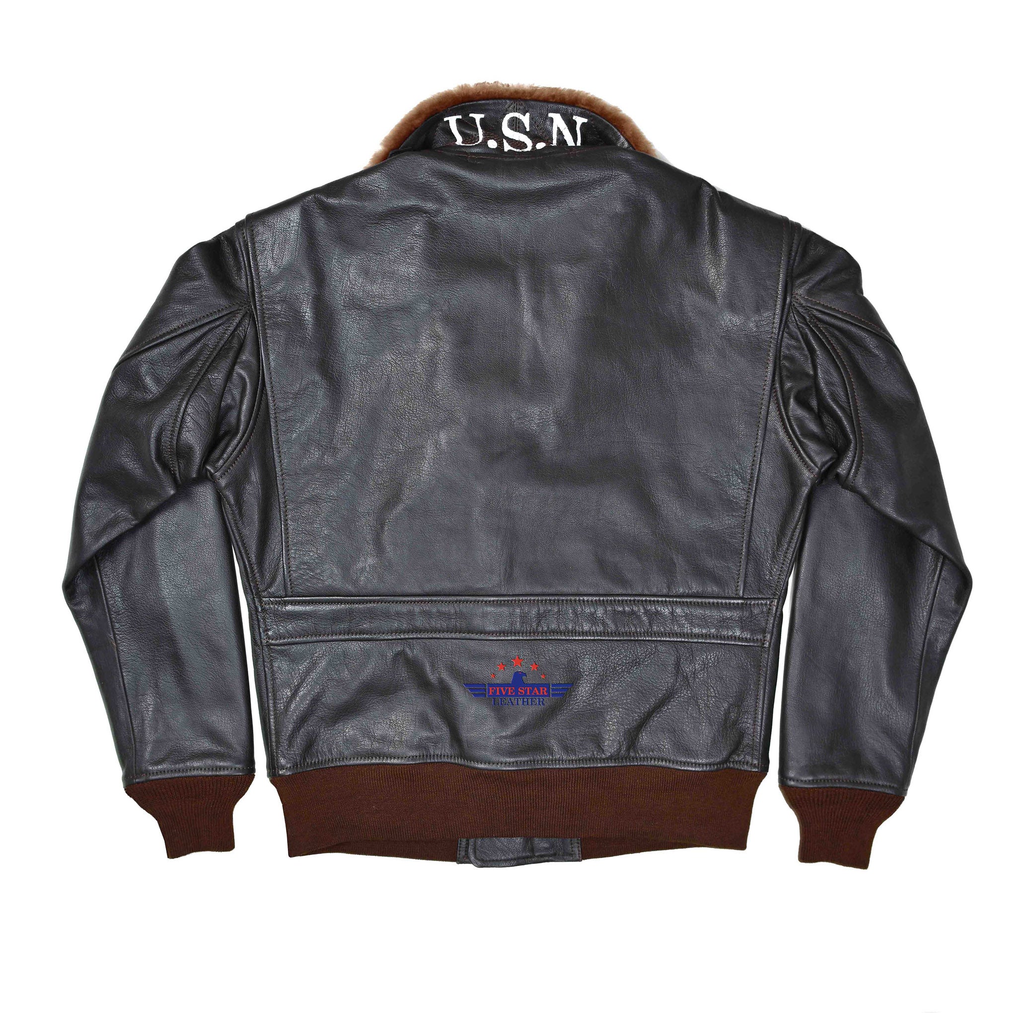 Men's G-1 55J14 Naval US Military Leather Flight Bomber Jacket