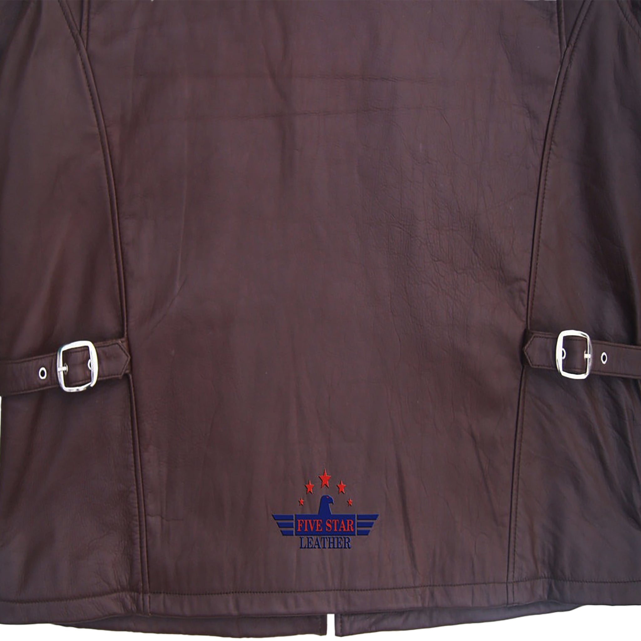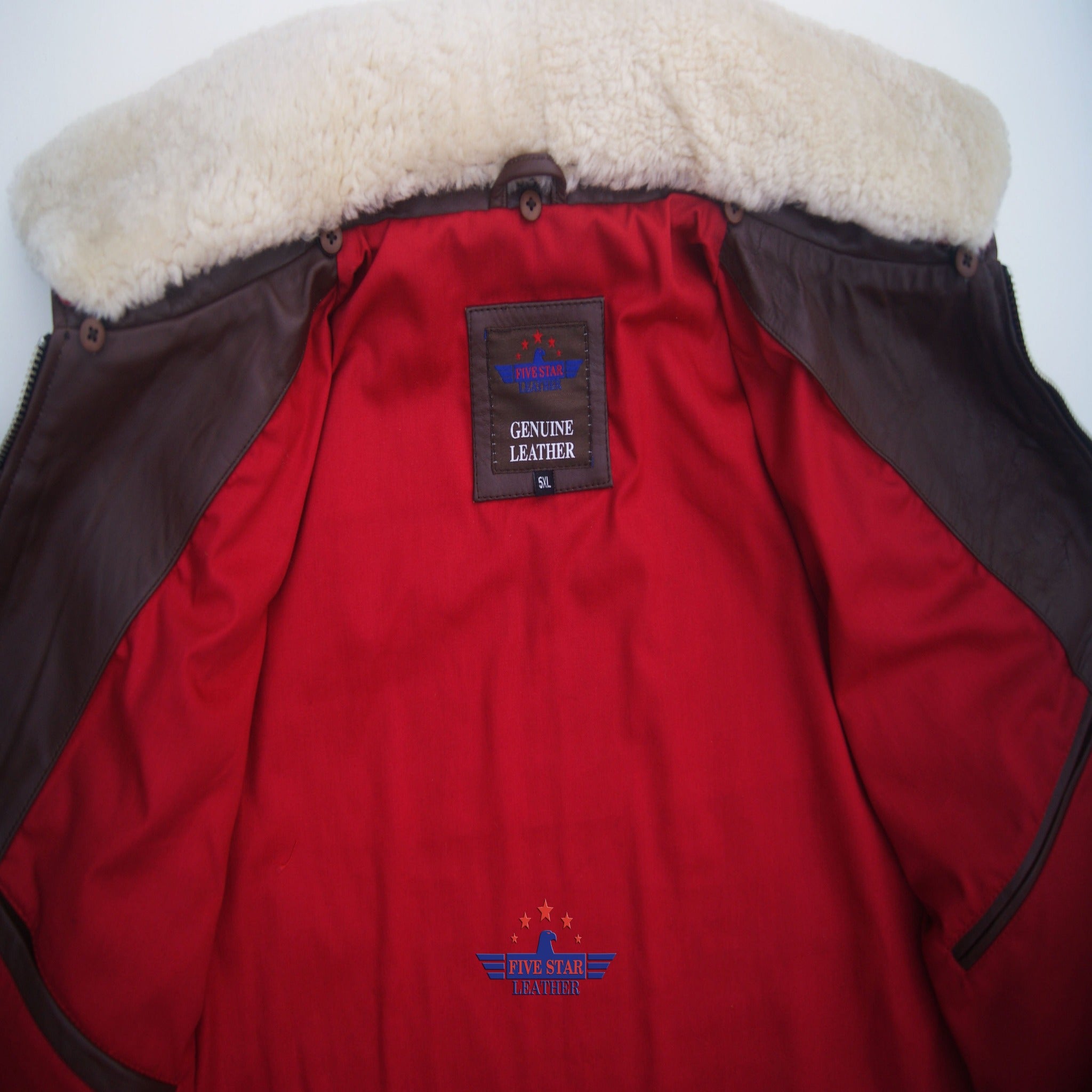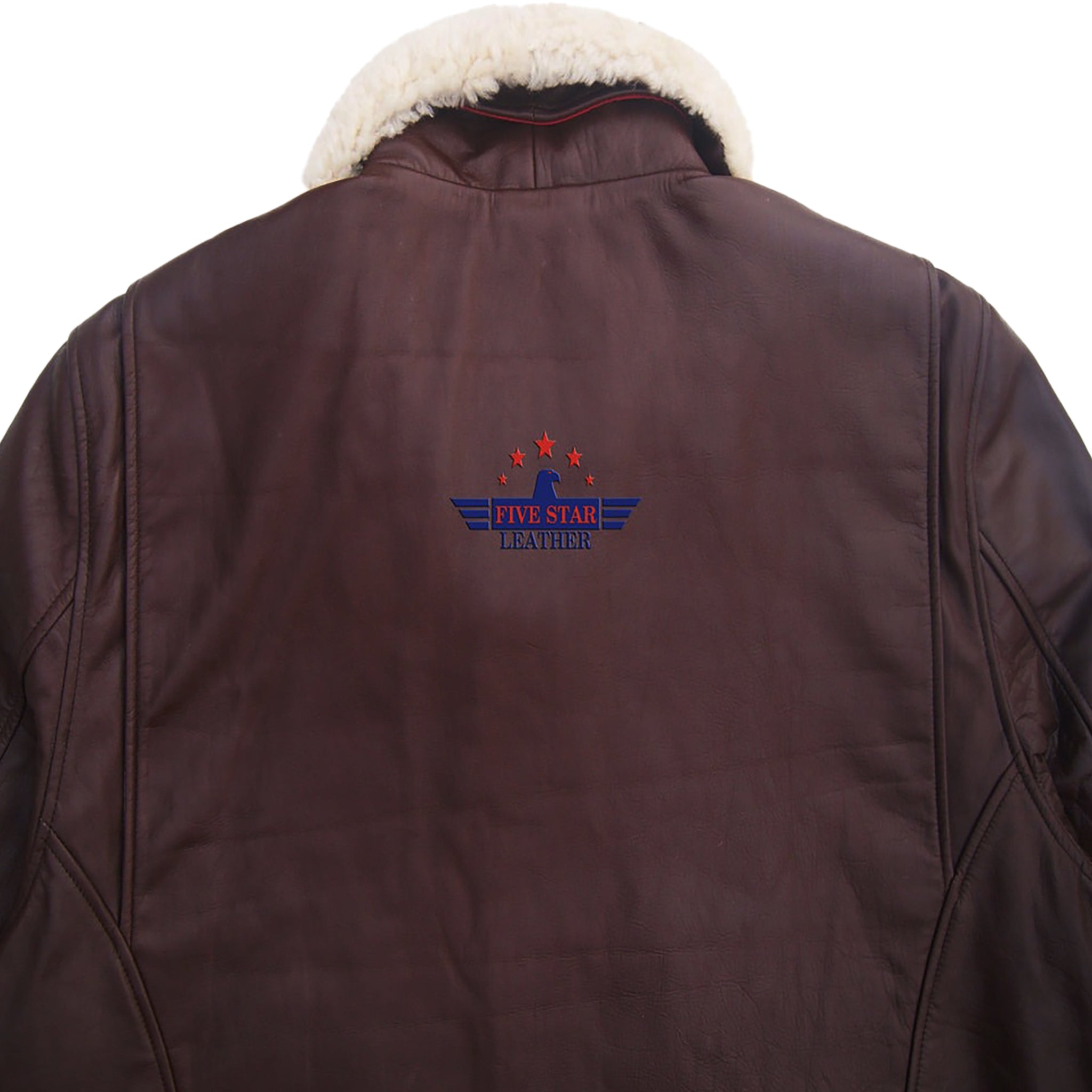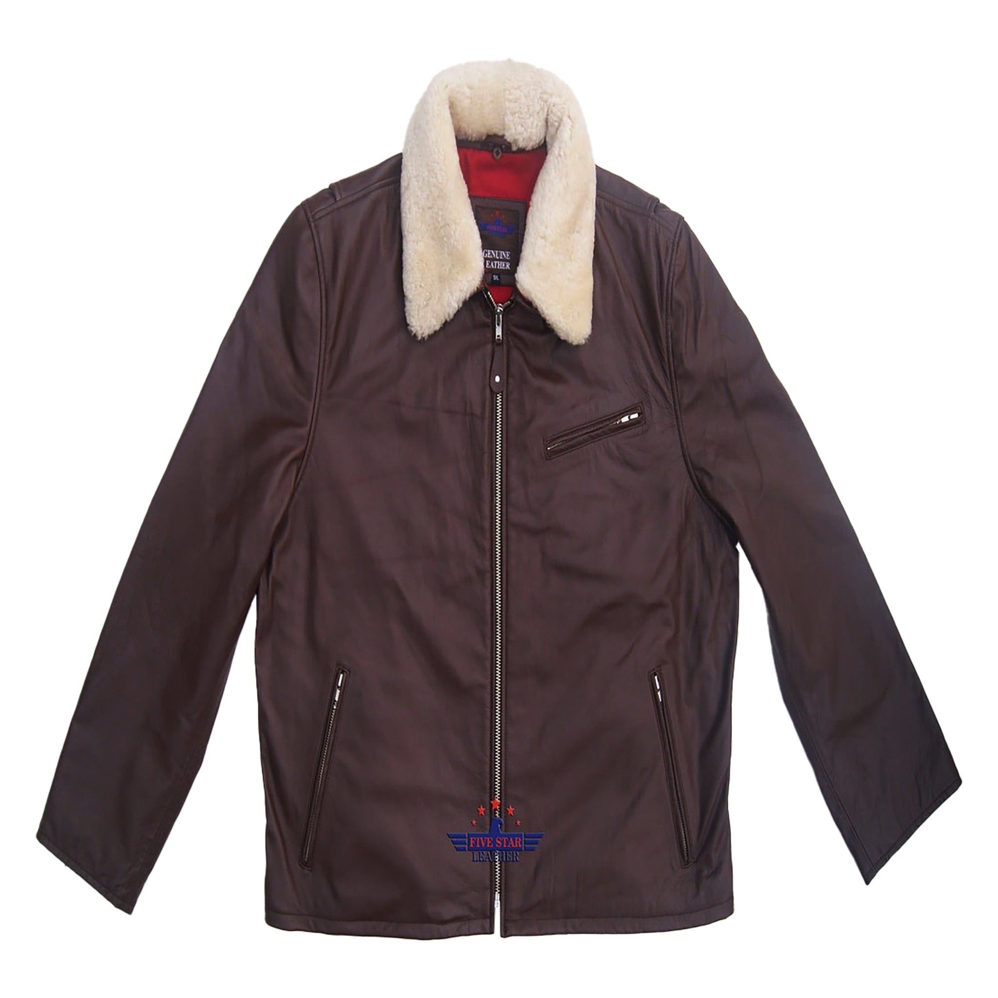 Crafted from premium "A" grade horsehide leather, this men's vintage military flight jacket offers genuine quality and durability. It features a real mouton fur collar and a sturdy Talon front zipper. Designed with two slash pockets and a red cotton twill lining, it combines classic style with comfort. Available in all sizes with meticulous stitching to ensure lasting wear.