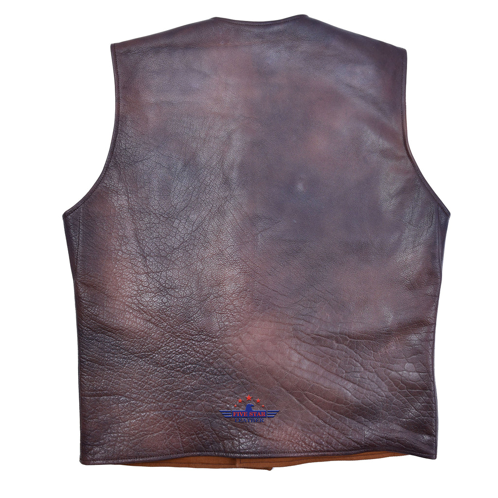 Men's Vintage Distressed Brown Buffalo Wwii British Leather Jerkin Vest