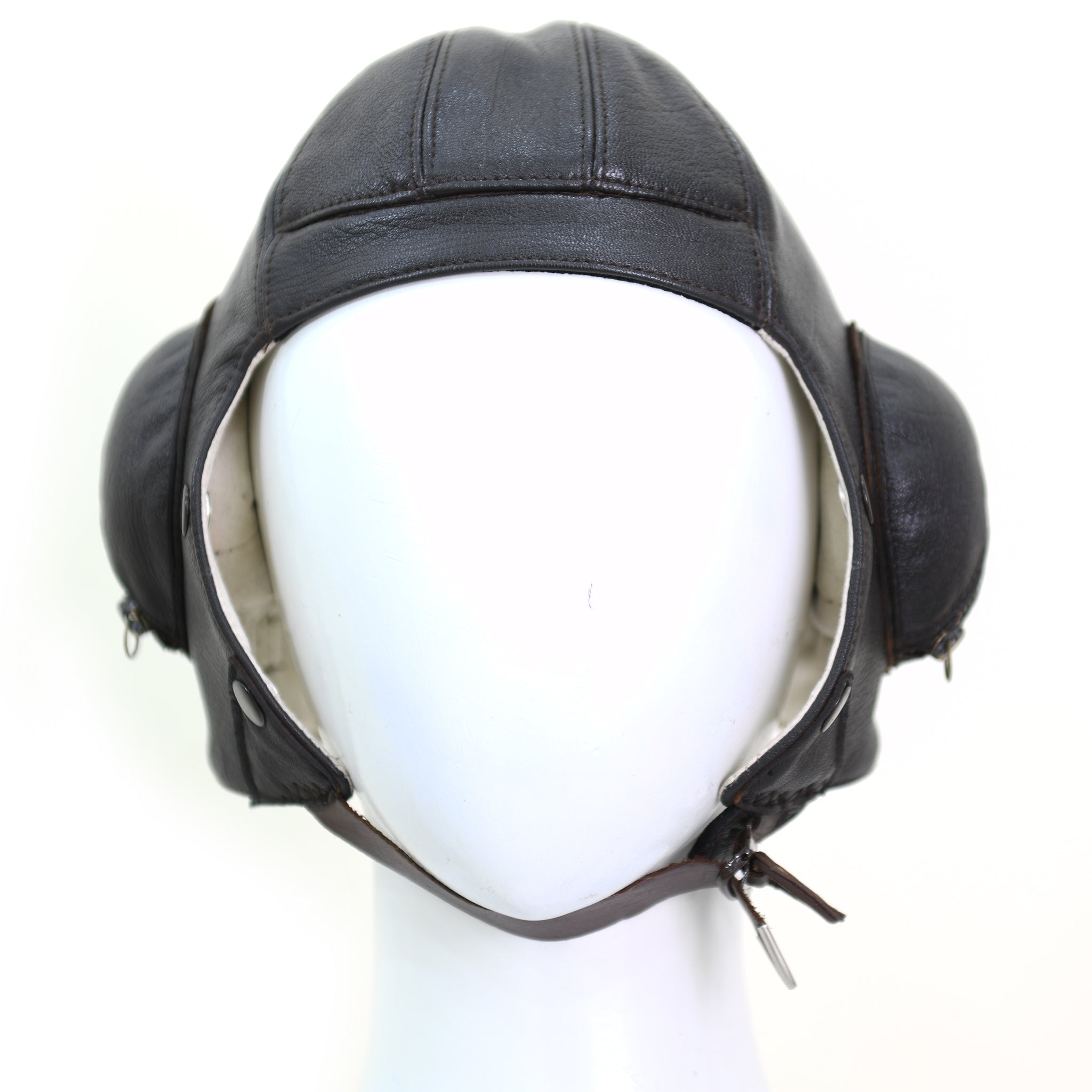 The RAF B-Type Leather Flying Helmet was a vital aviation accessory used by the Royal Air Force throughout the Battle of Britain and the early part of World War II. Crafted by FiveStar Leather and introduced in 1936, this helmet offered durability and protection with its high-quality leather construction. Its rounded crown and wide ear flaps ensured a secure fit against wind, rain, and cold. Equipped with brass press studs for the easy attachment of oxygen masks, it supported pilots flying at high altitudes. Worn by both fighter and bomber pilots, this helmet represents the bravery of WWII British airmen and remains a cherished piece of aviation heritage.