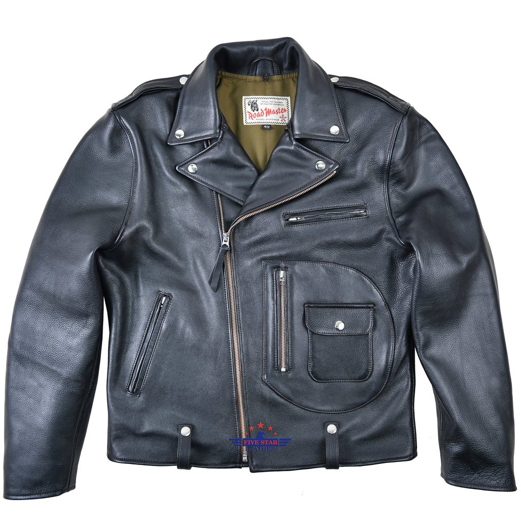 FiveStar Leather Vintage D Pocket Road Master Men Jacket Black Steerhide