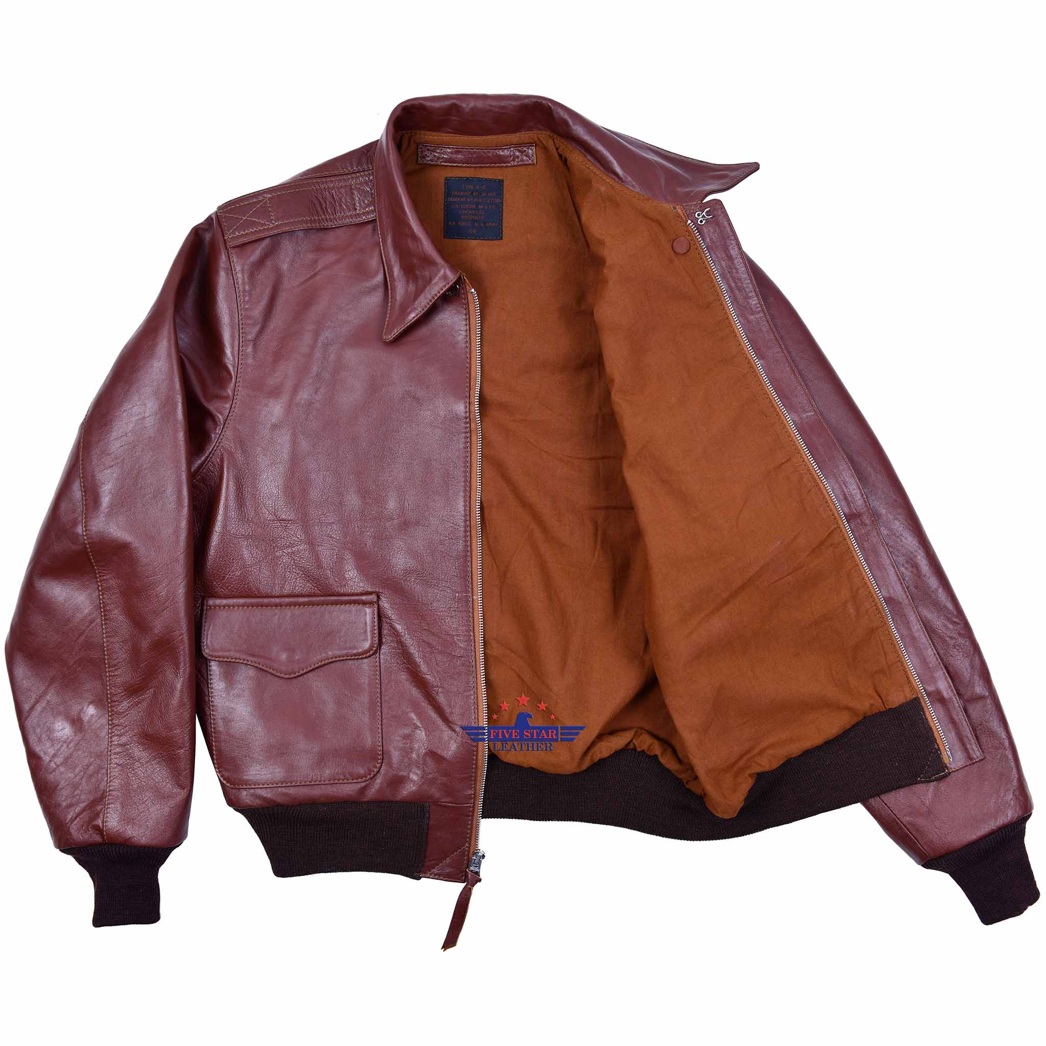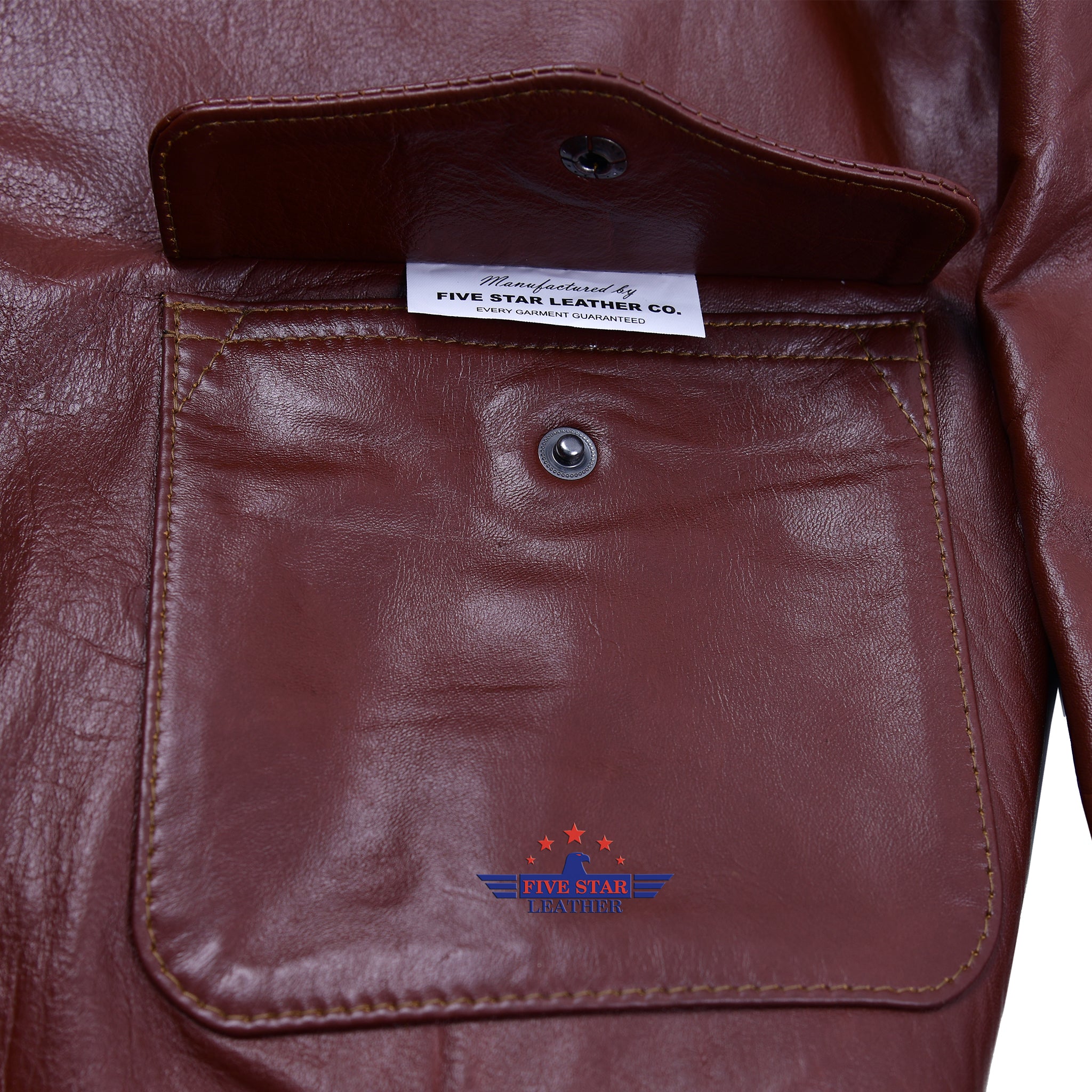 FiveStar Leather Repro Dubow A2 Leather Flight Jacket made from our Special Horsehide Leather Veg. Tanned, Seal Brown 100% Real wool Knitting's , Repro Talon Zipper Fastening, 100% Cotton lining true to original Color, and this A2 Jacket have the true and Authentic Pattern Details of A2 J. A. DUBOW MFG. Co. Drawing No. 30-1415, Order No. W535 A.C. 27798