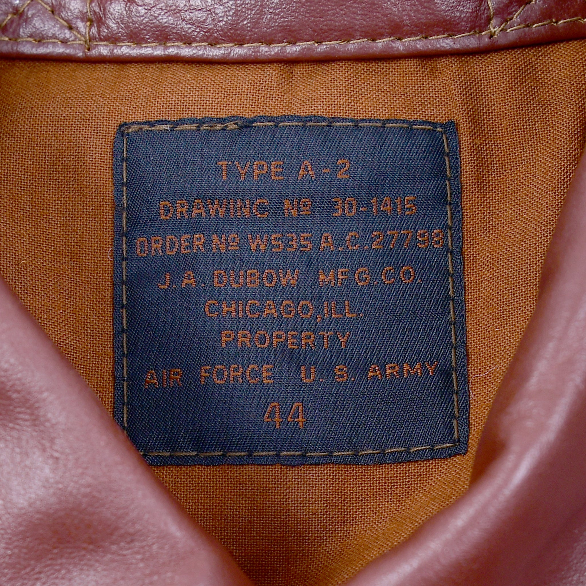 Repro A2 J. A. Dubow Mfg Co Contract 27798 Horsehide Mid Brown Leather Flight Jacket