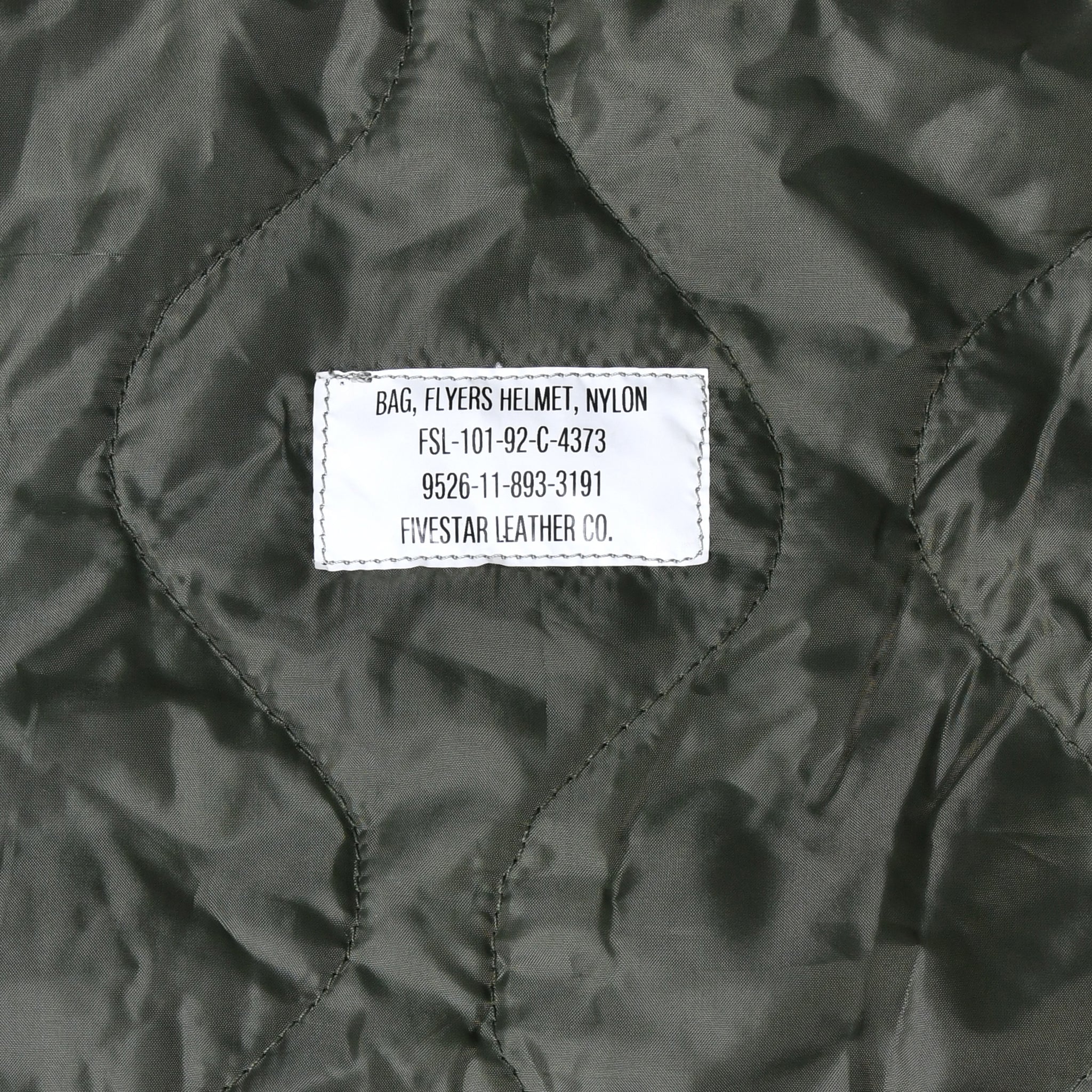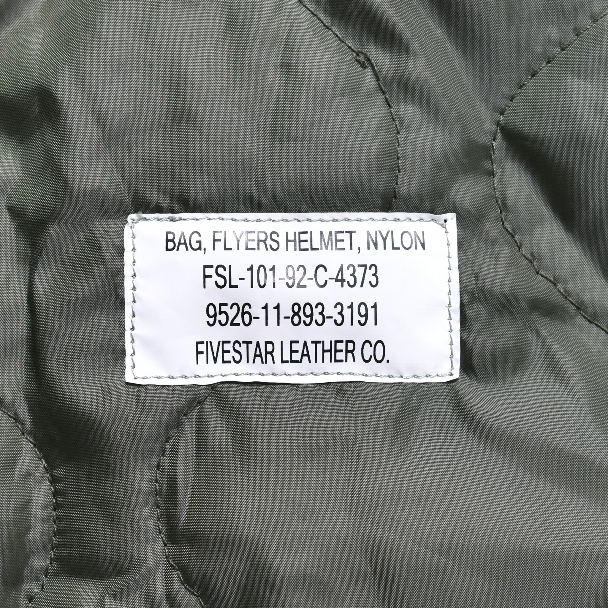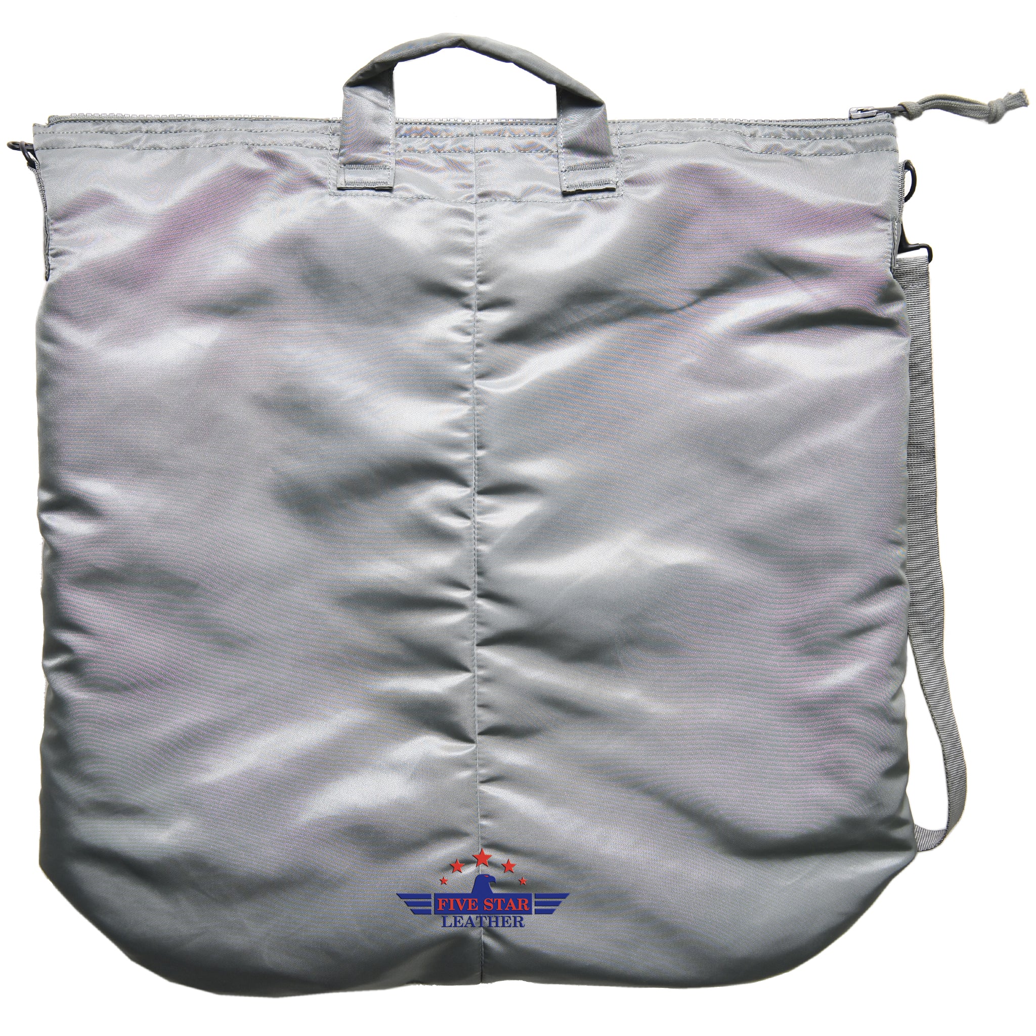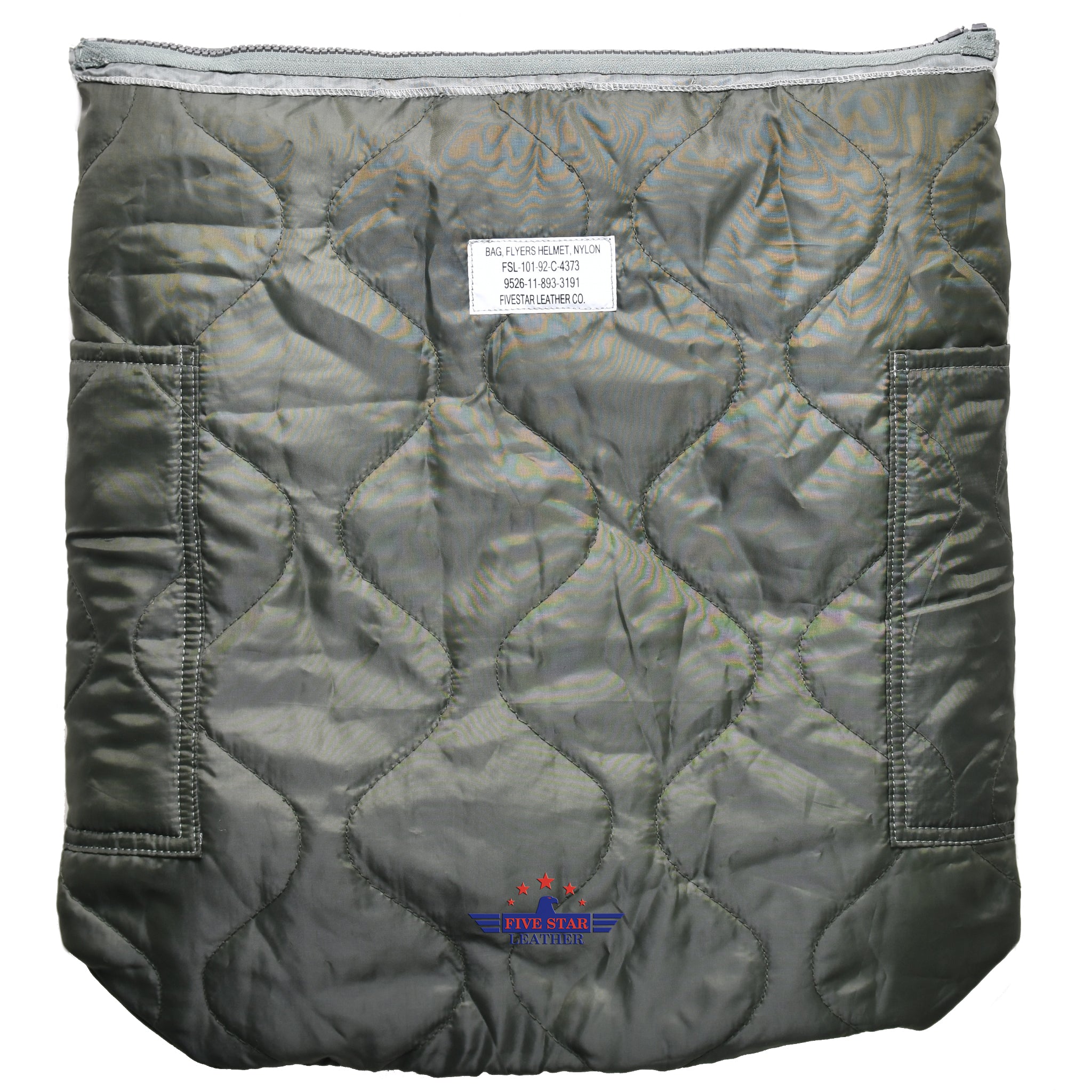 FiveStar Leather Repro Flyers Helmet Nylon Bag is made from Correct weave Nylon Fabric water repellant to Protect Your Helmet And Other Gear While Traveling, The patterns of this bag are copied from an original Vintage bag, Measuring 19” X 19”, The Military Helmet Bag Can Store Your Helmet, Helmet Accessories, And Other Important Supplies, Store Additional Items In The Two Hook And Loop Outside Pockets With Added Snap Closure, Dual Carry Handles, This bag comes with Brass No. 8 Talon Heavy Duty Zipper closure, Hook for hanging – Mil-Spec zipper and construction -The padded handles ease carrying discomfort, This bag has two outer pockets with Velcro and snap fasteners, Two inner pockets to keep maps, paperbacks, or any smaller items handy, We use the quilted sintepon layer filled original vintage style lining for this bag for a good protection to the inside stuff and the Helmet.