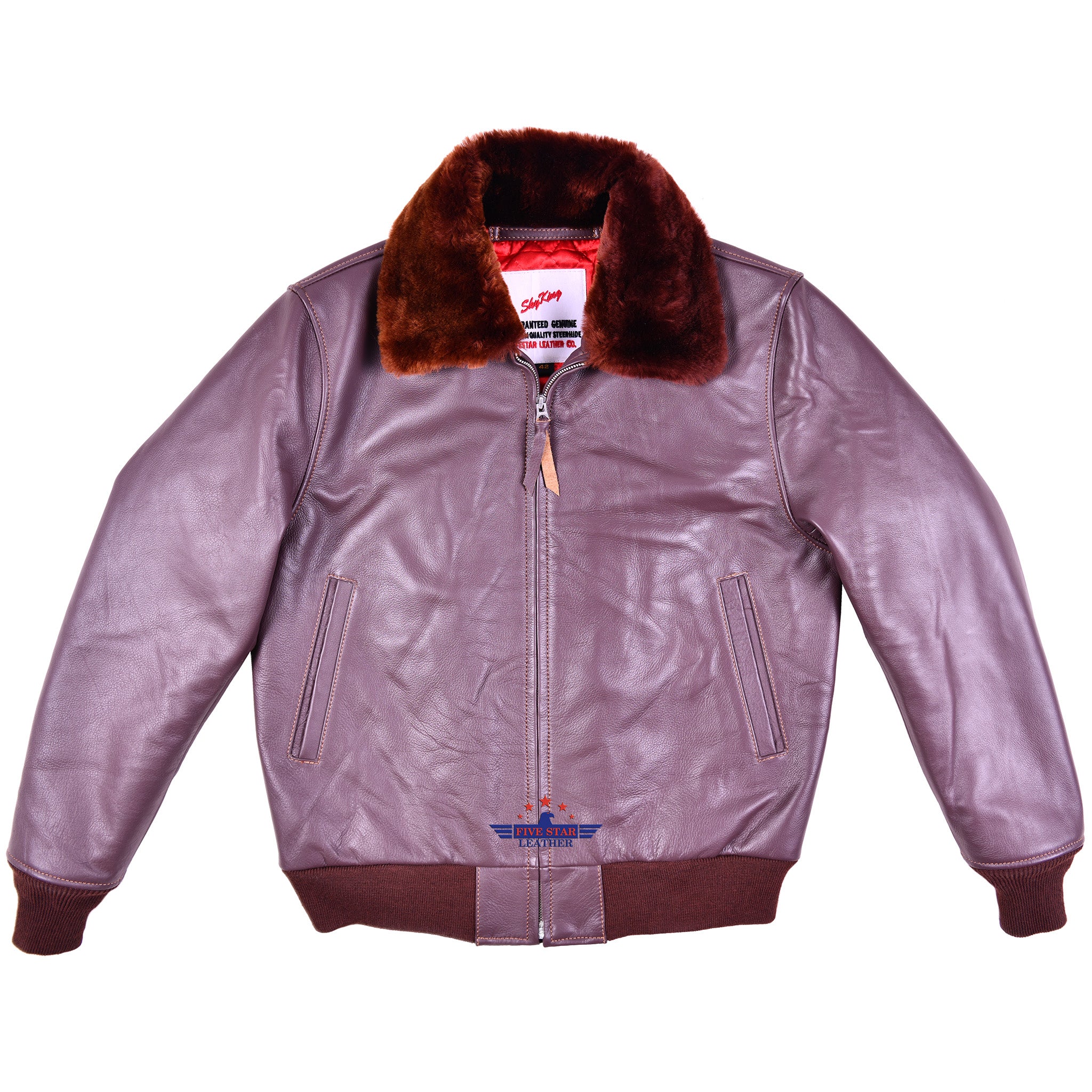 Men Sky King Wind Breaker Jacket Real Steerhide Leather Mouton Fur Collar
