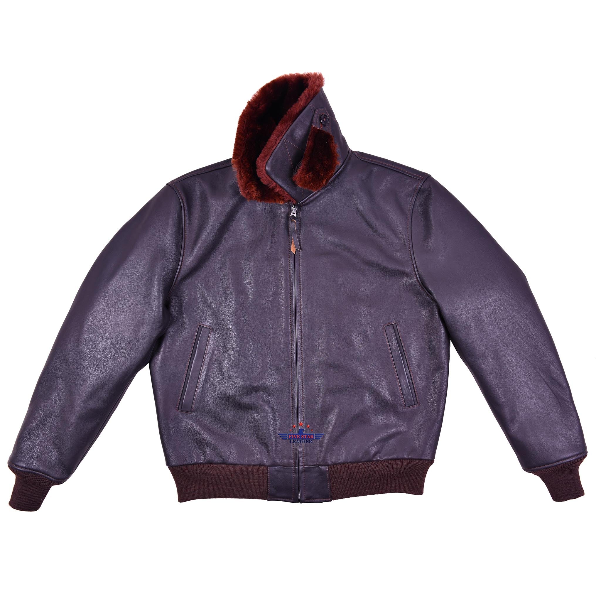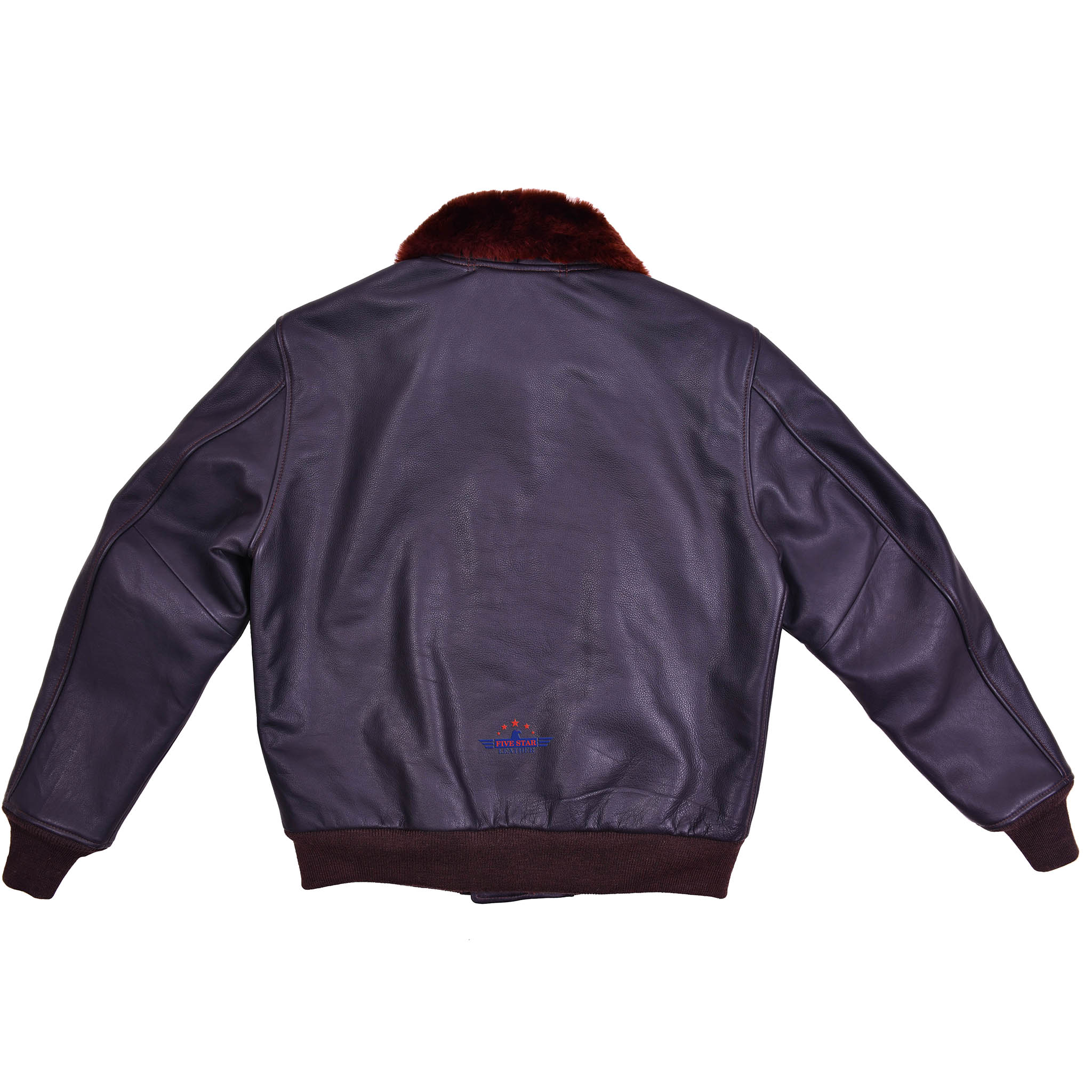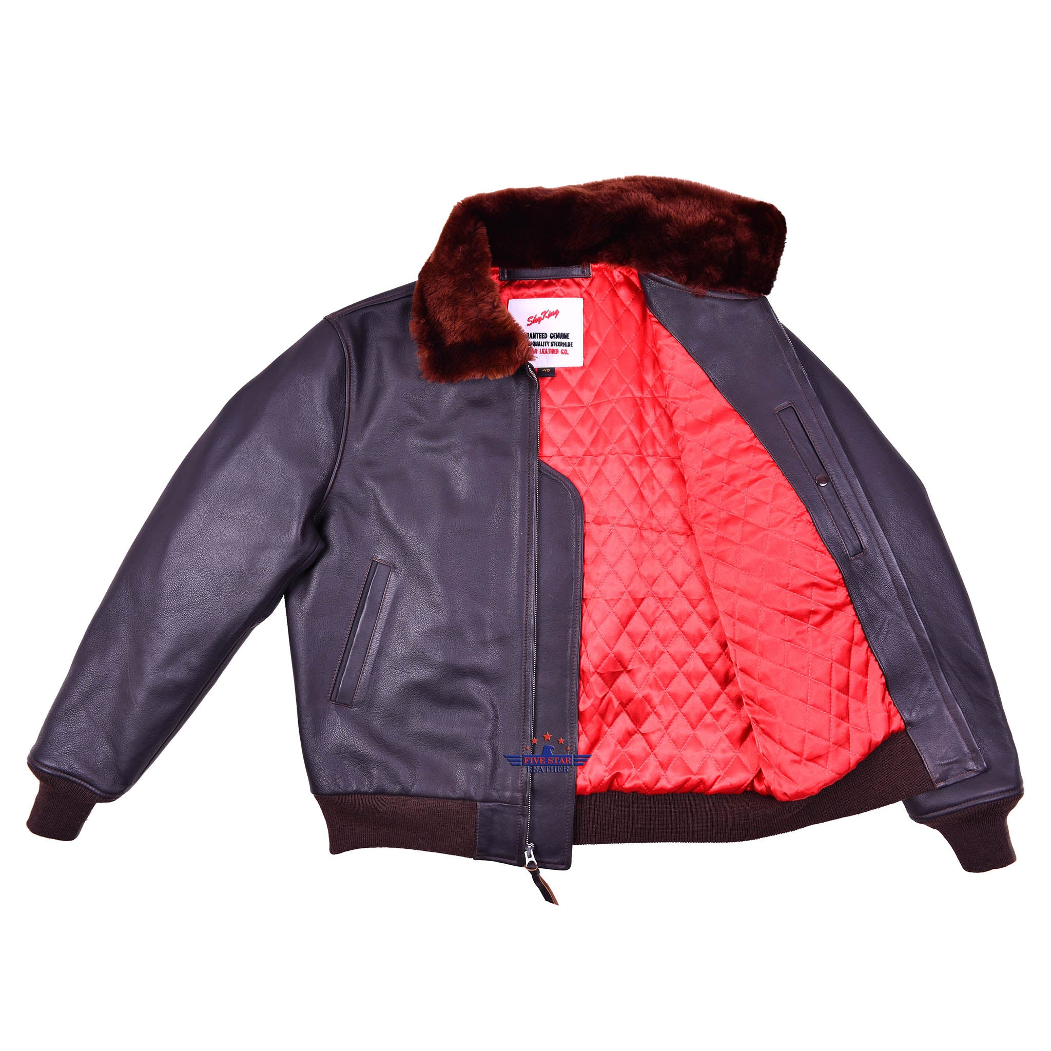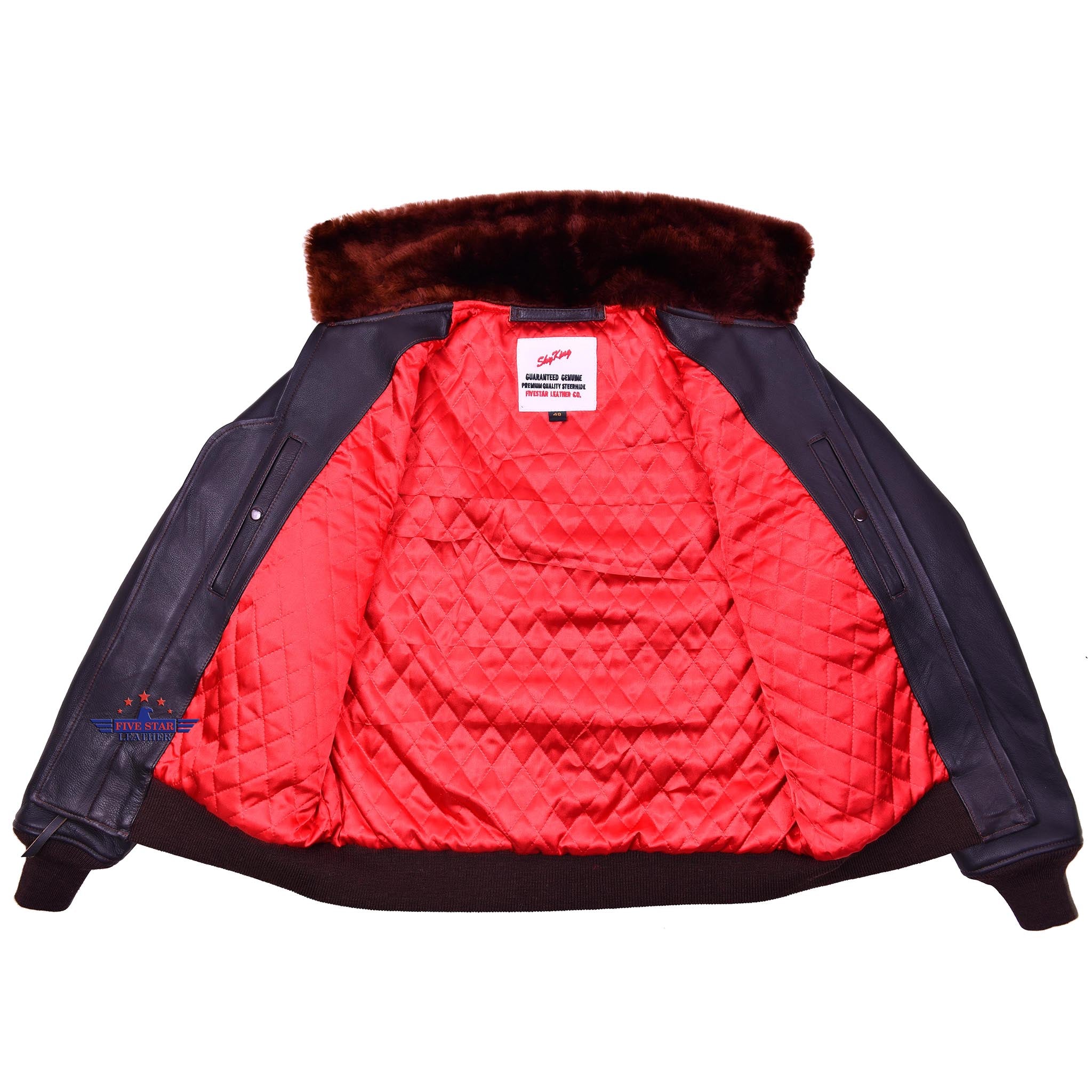 Men Sky King Wind Breaker Jacket Real Steerhide Seal Brown Leather with Mouton Fur Collar