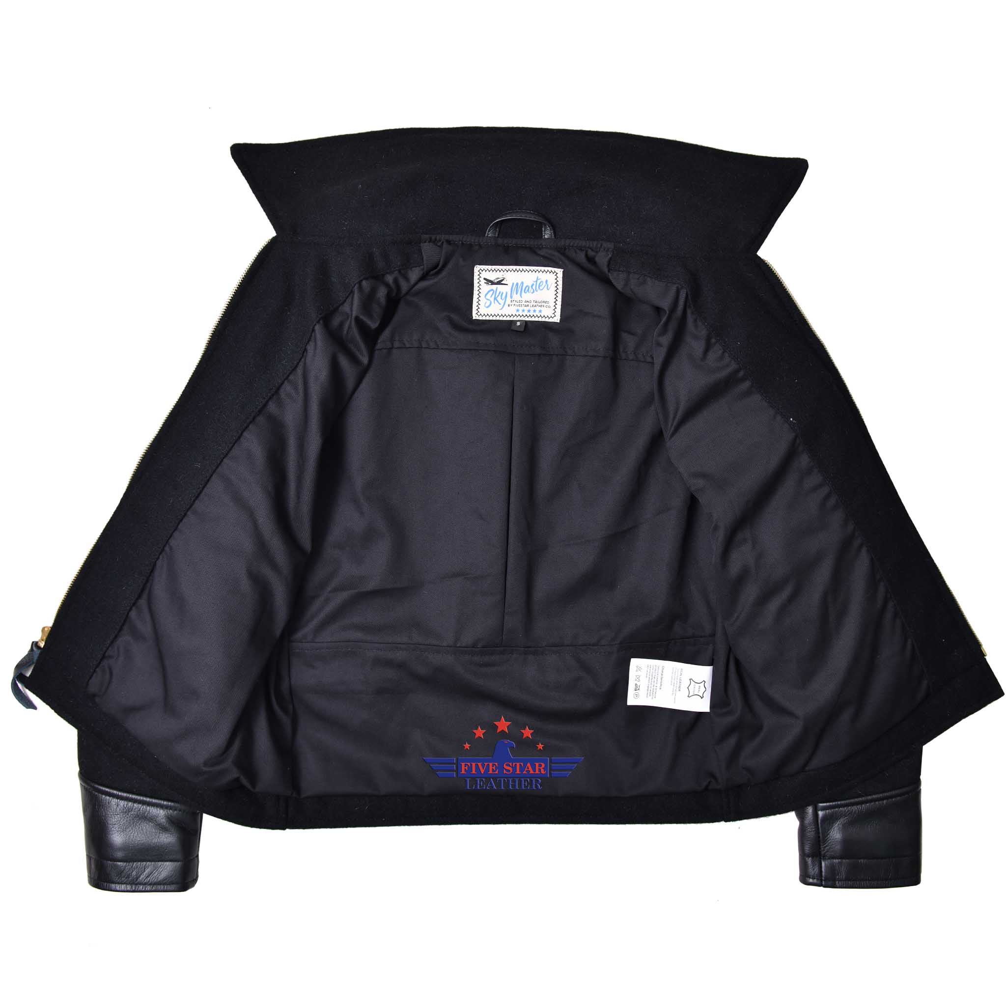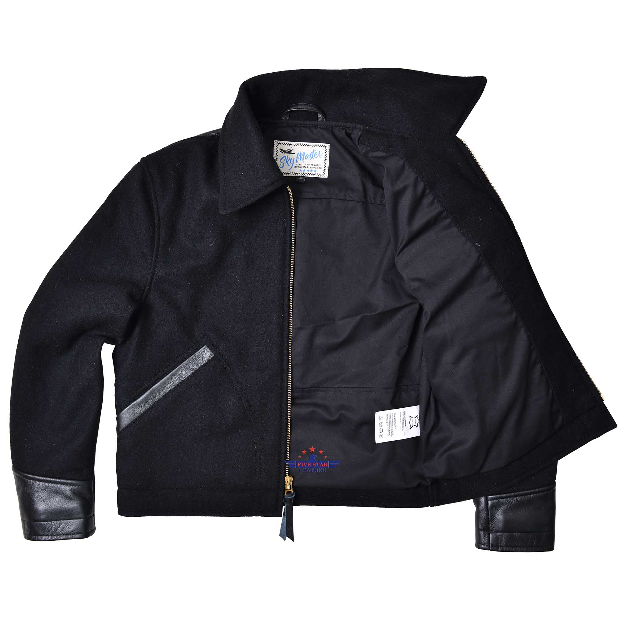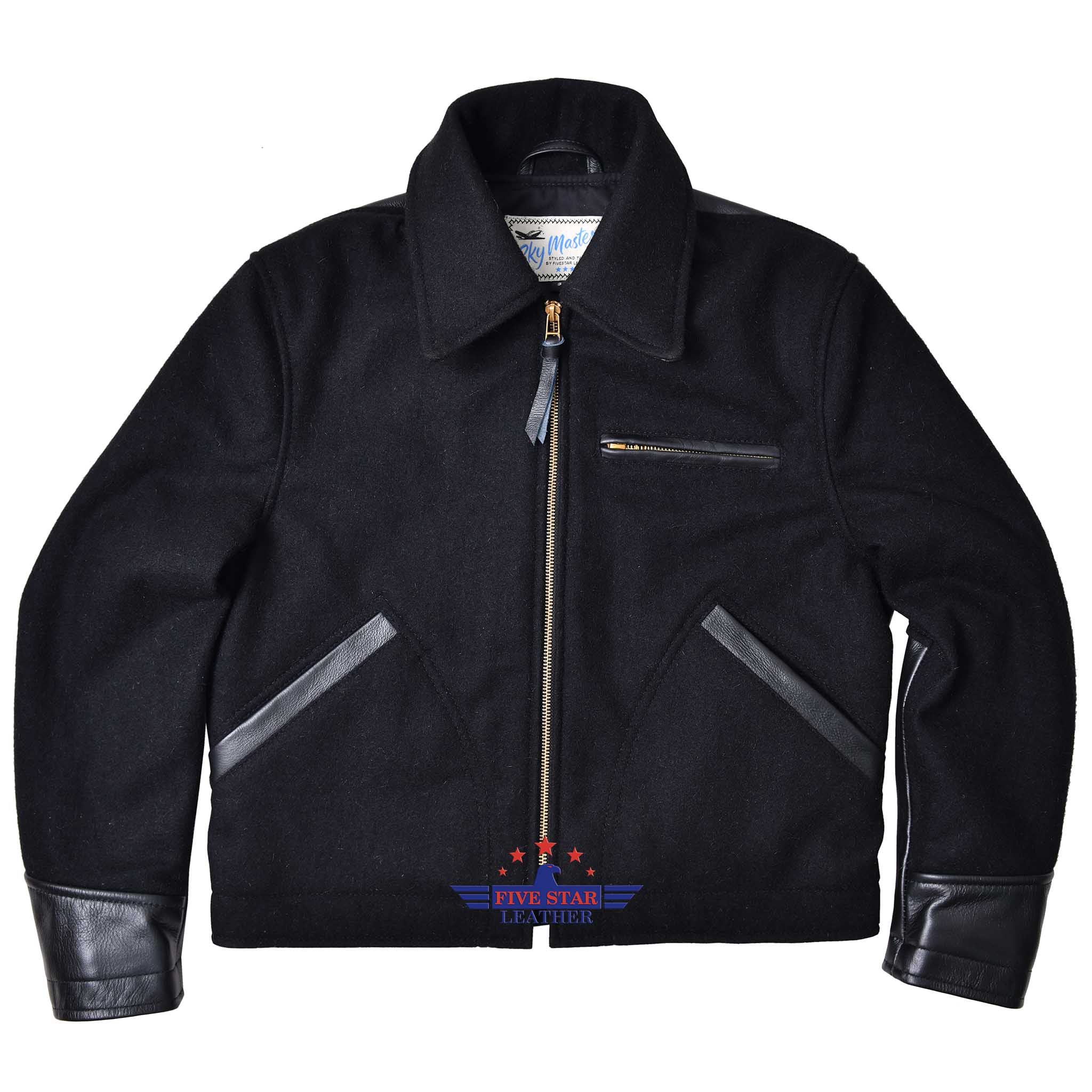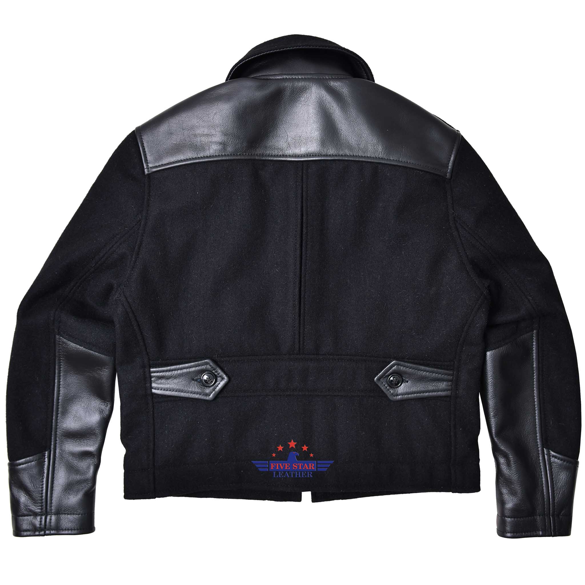 FiveStar leather 40s Style Men Sports Jacket Black Wool Fabric