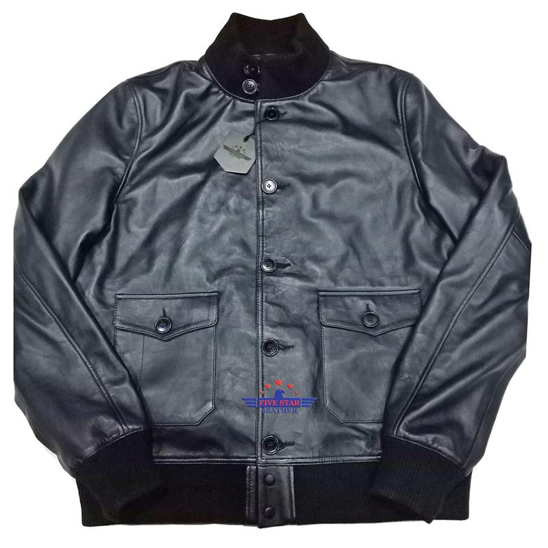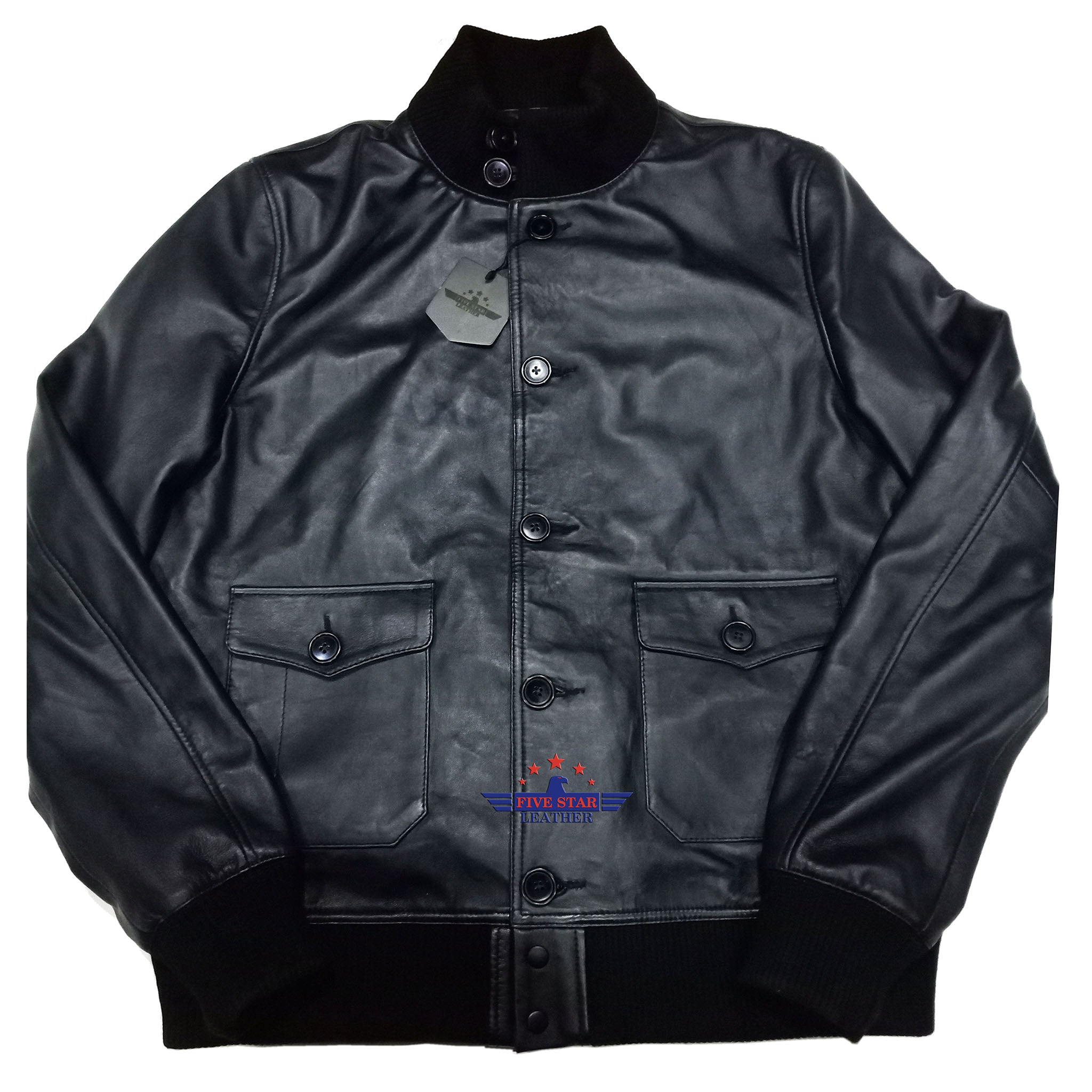 Men Capeskin Leather Air Force A-1 Jacket Pilot Flying Aviator Black
