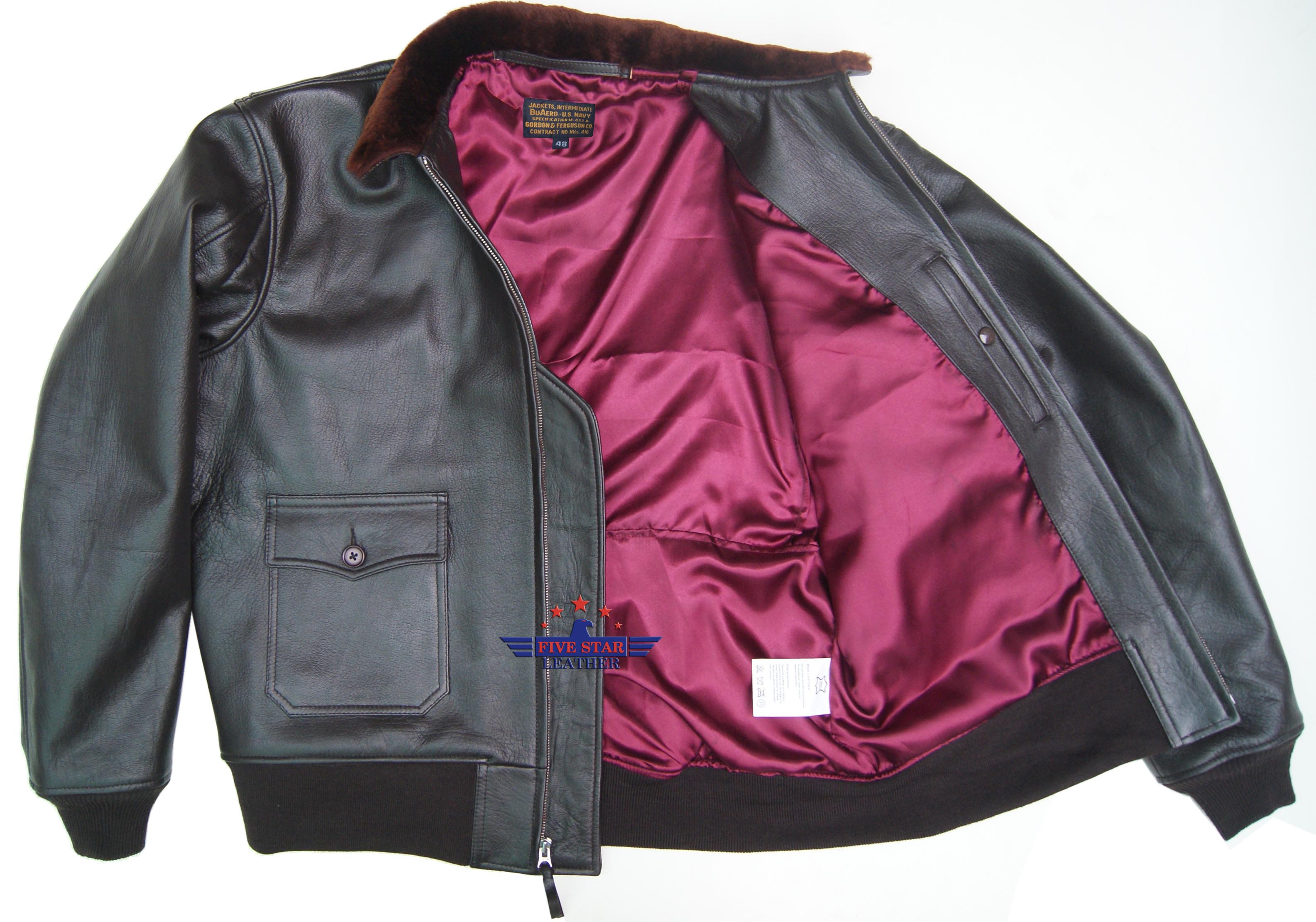 Men Flight G1 Bomber Naval Flying Jacket USN Goatskin Leather Seal Brown M422-A